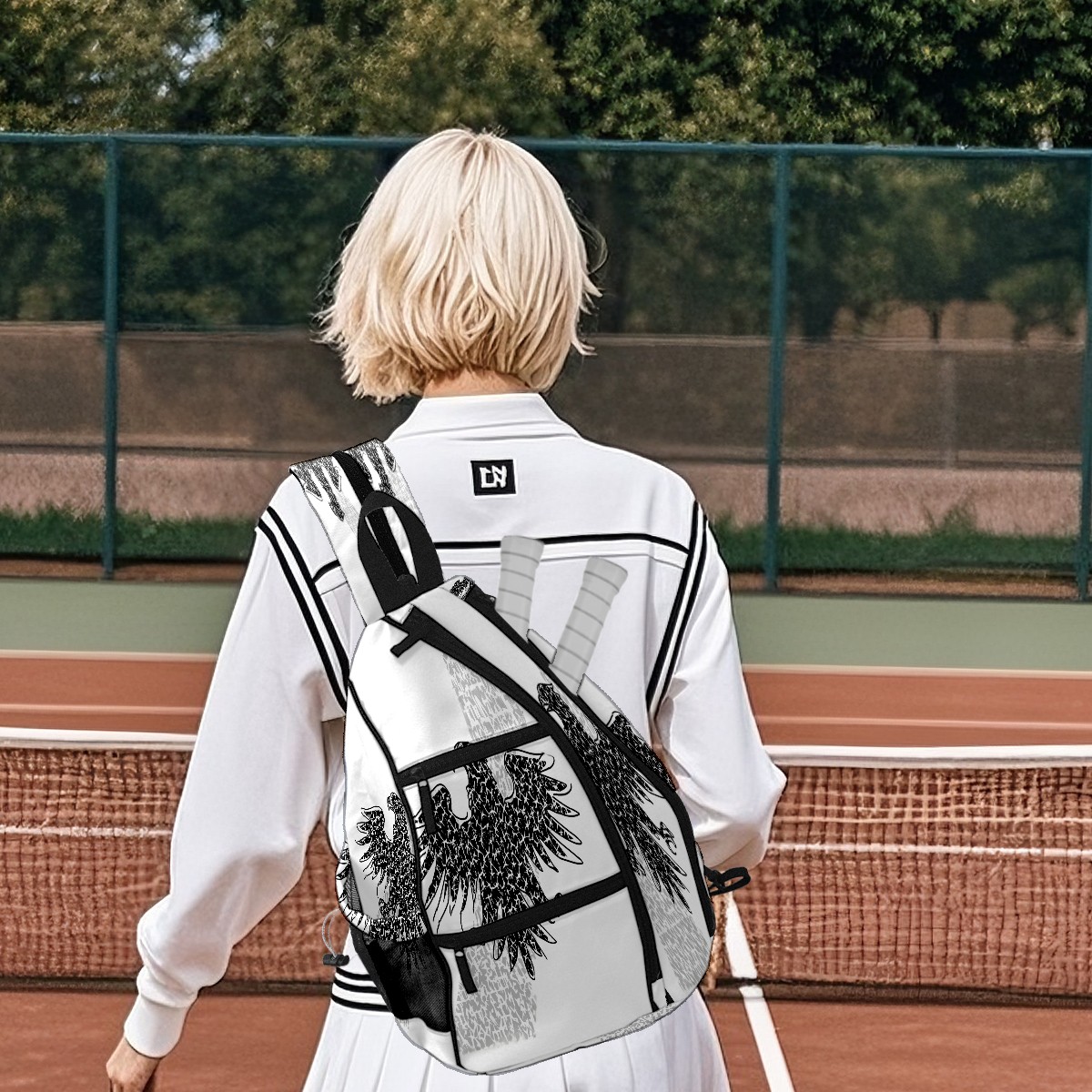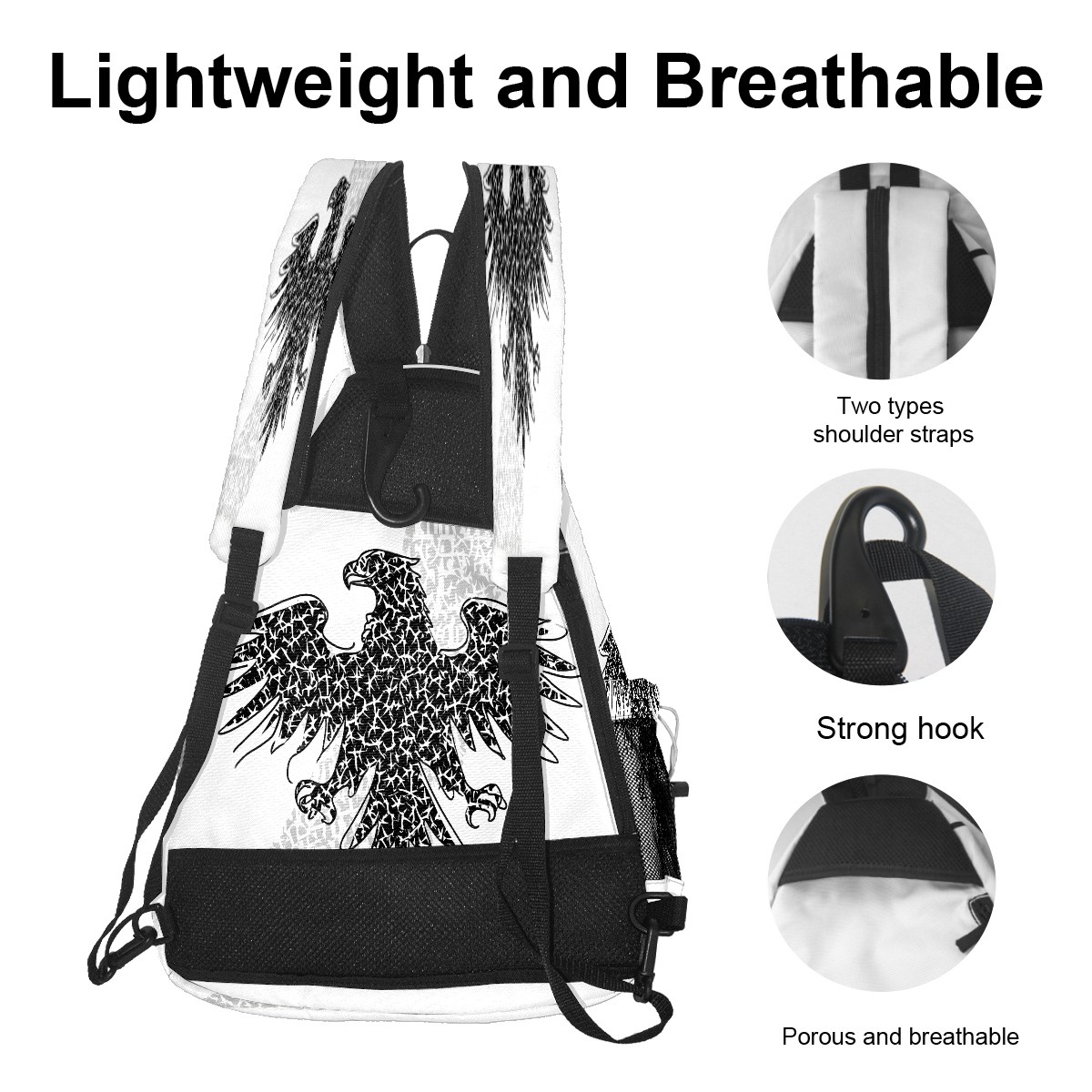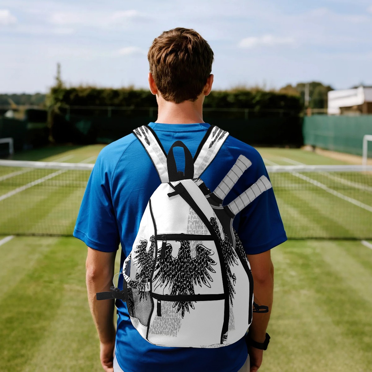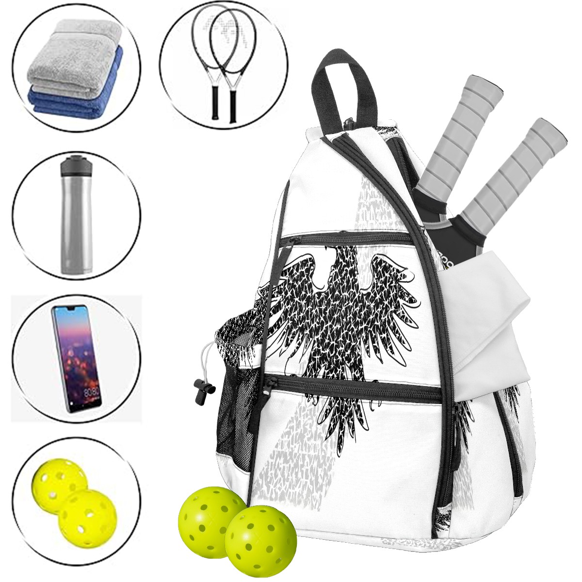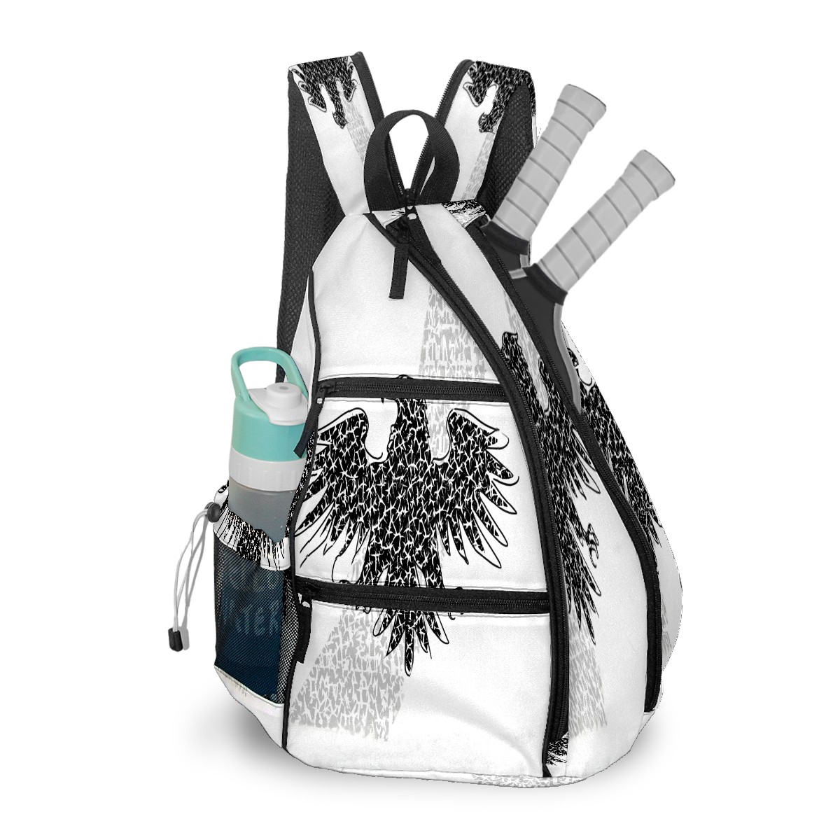 Print Pickleball Backpack Black Eagle | Padded 6-Paddle Compartment & Separate Shoe Bag | Multi-Pocket Sports & Gym Backpack for Tennis, Travel, Commute