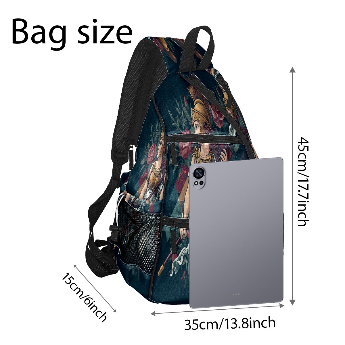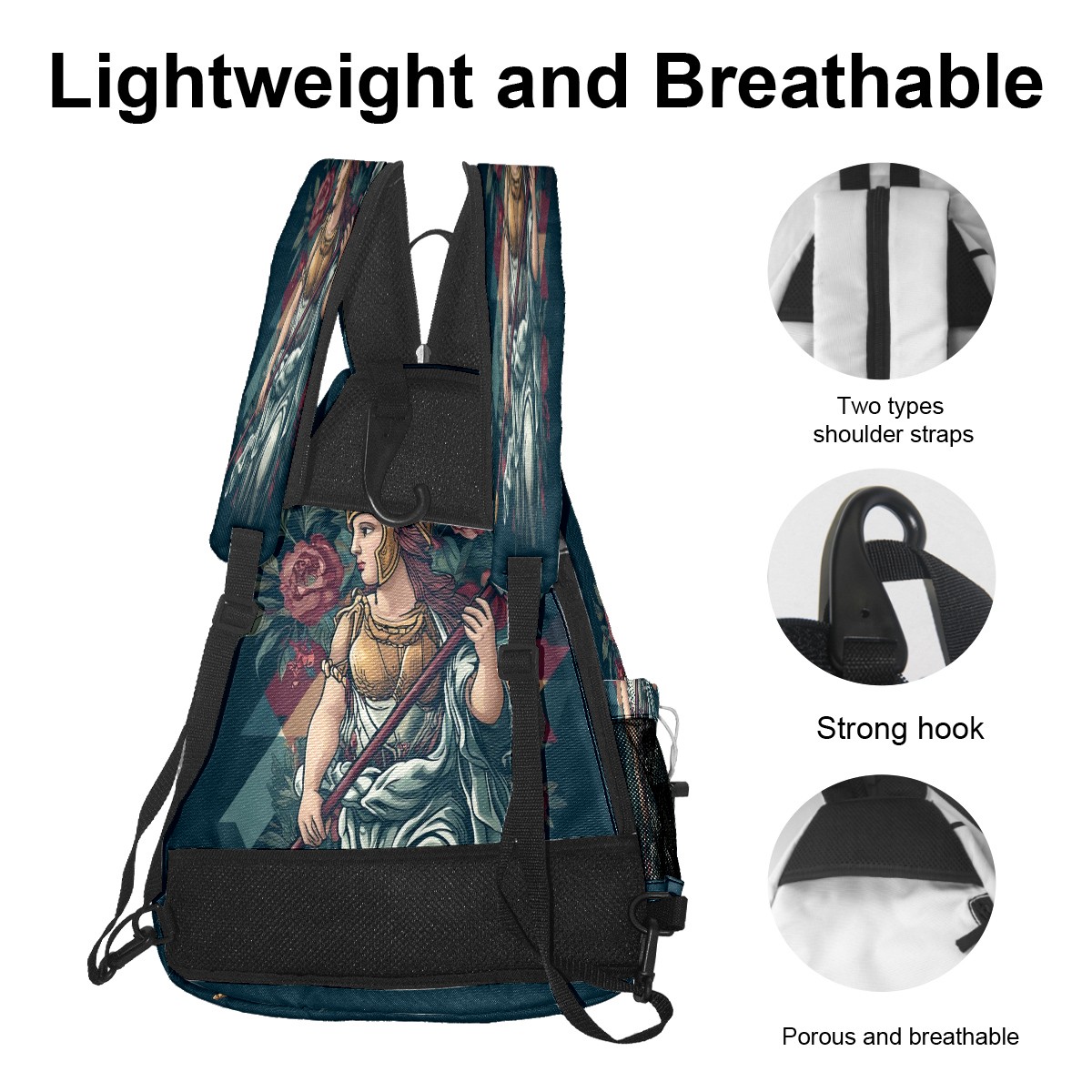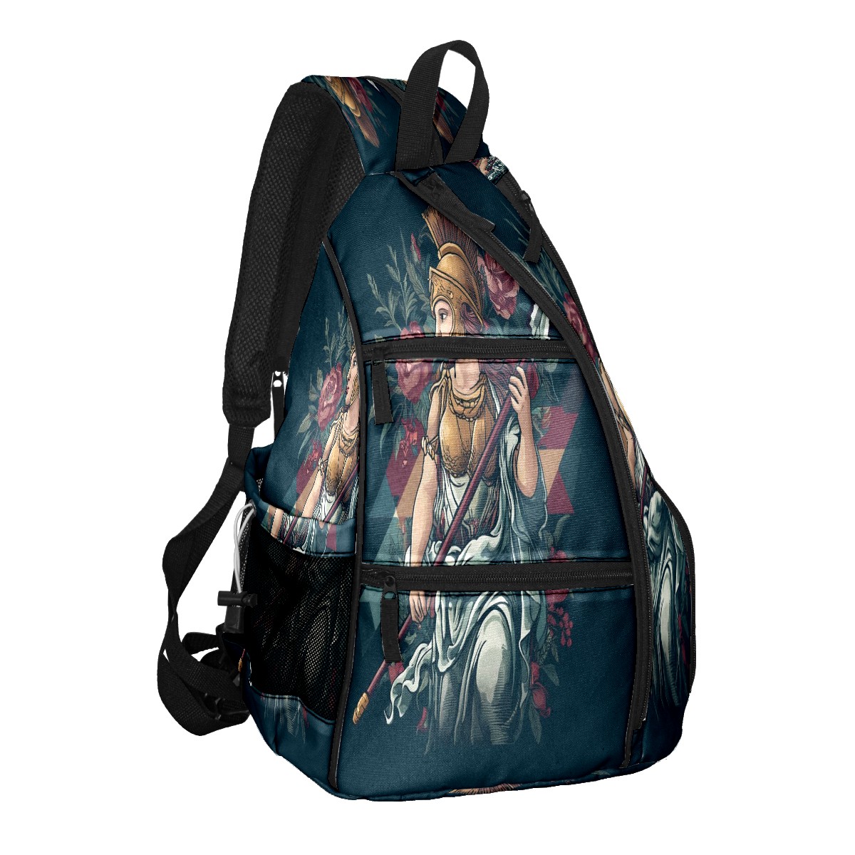 Print Pickleball Backpack Black Greek Goddess | Padded 6-Paddle Compartment & Separate Shoe Bag | Multi-Pocket Sports & Gym Backpack for Tennis, Travel, Commute