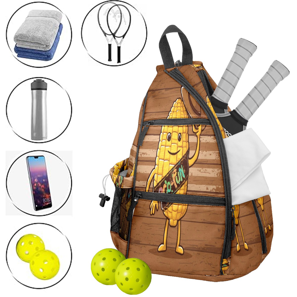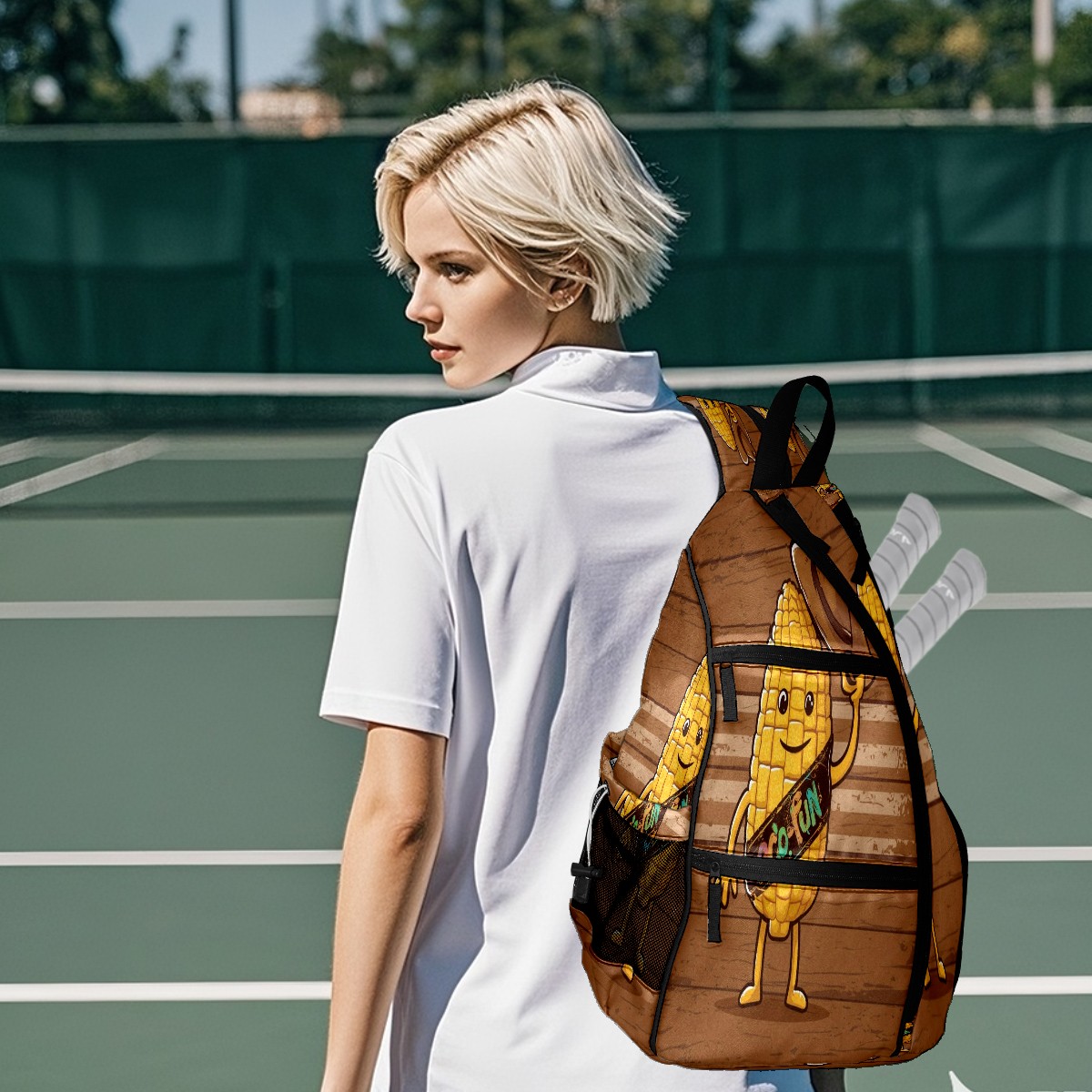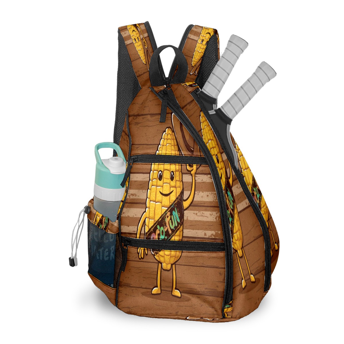 Print Pickleball Backpack Yellow Corn | Padded 6-Paddle Compartment & Separate Shoe Bag | Multi-Pocket Sports & Gym Backpack for Tennis, Travel, Commute