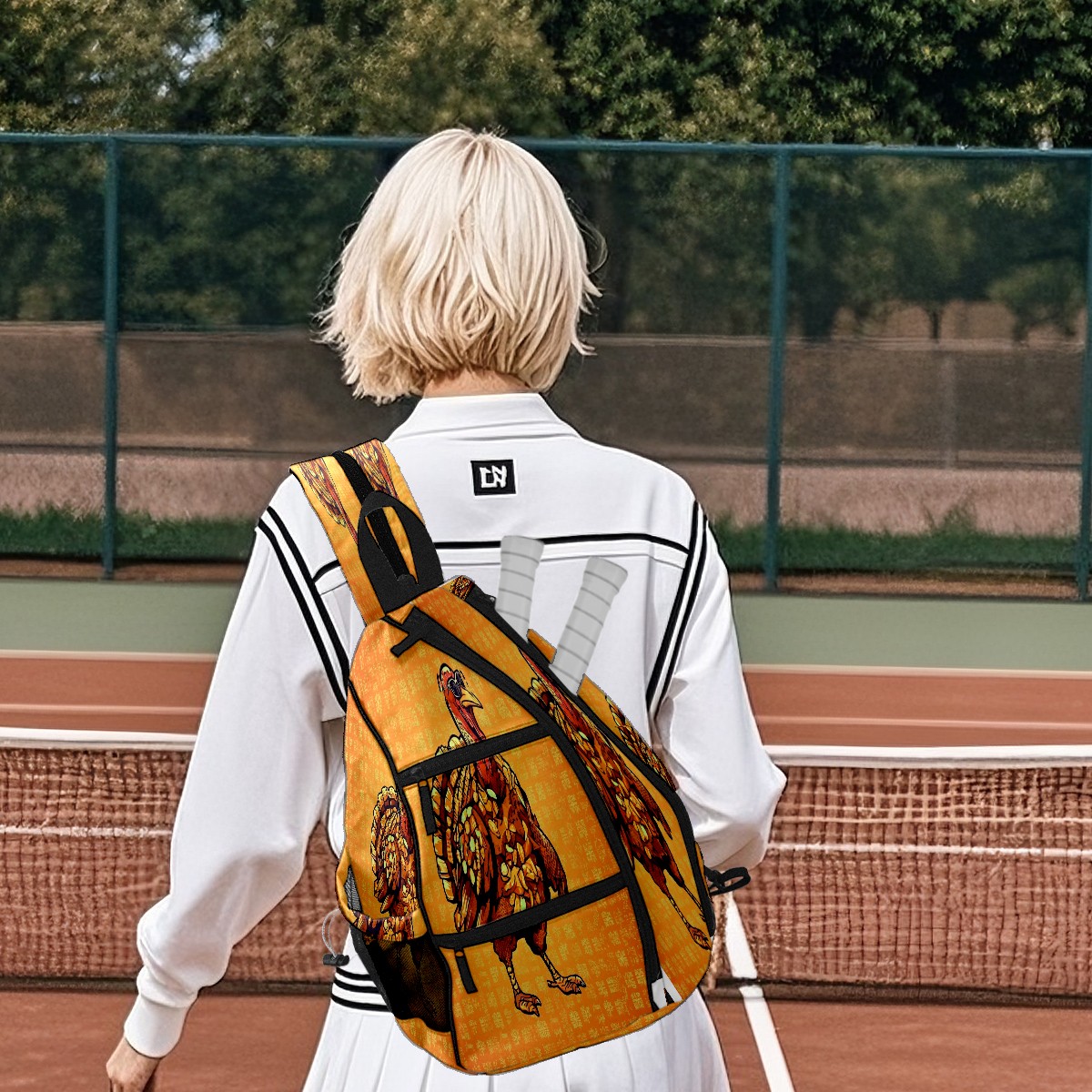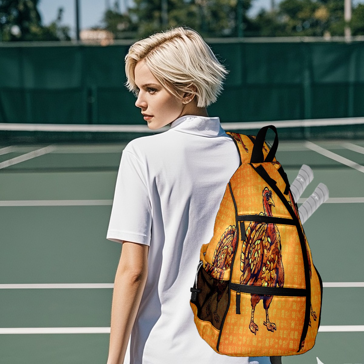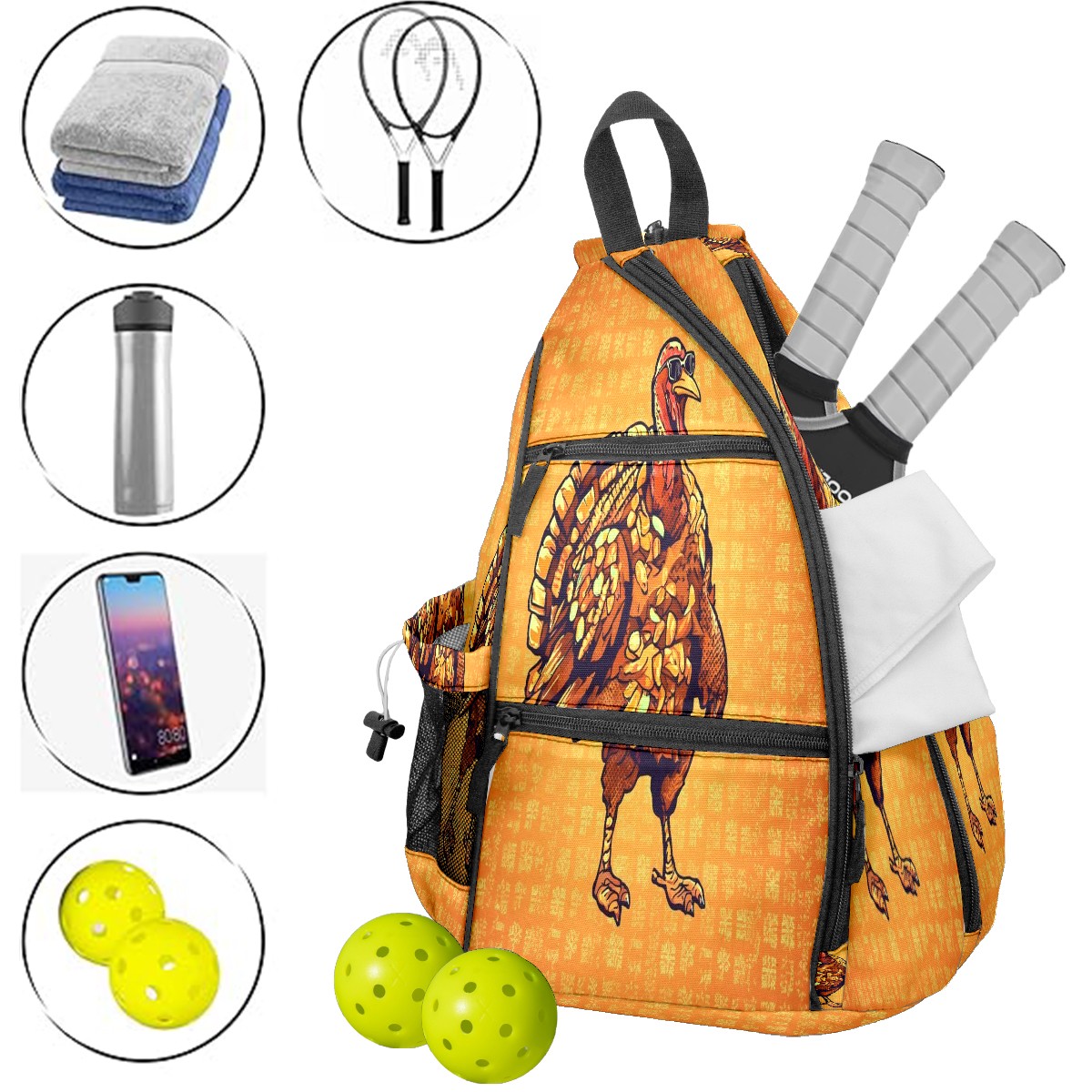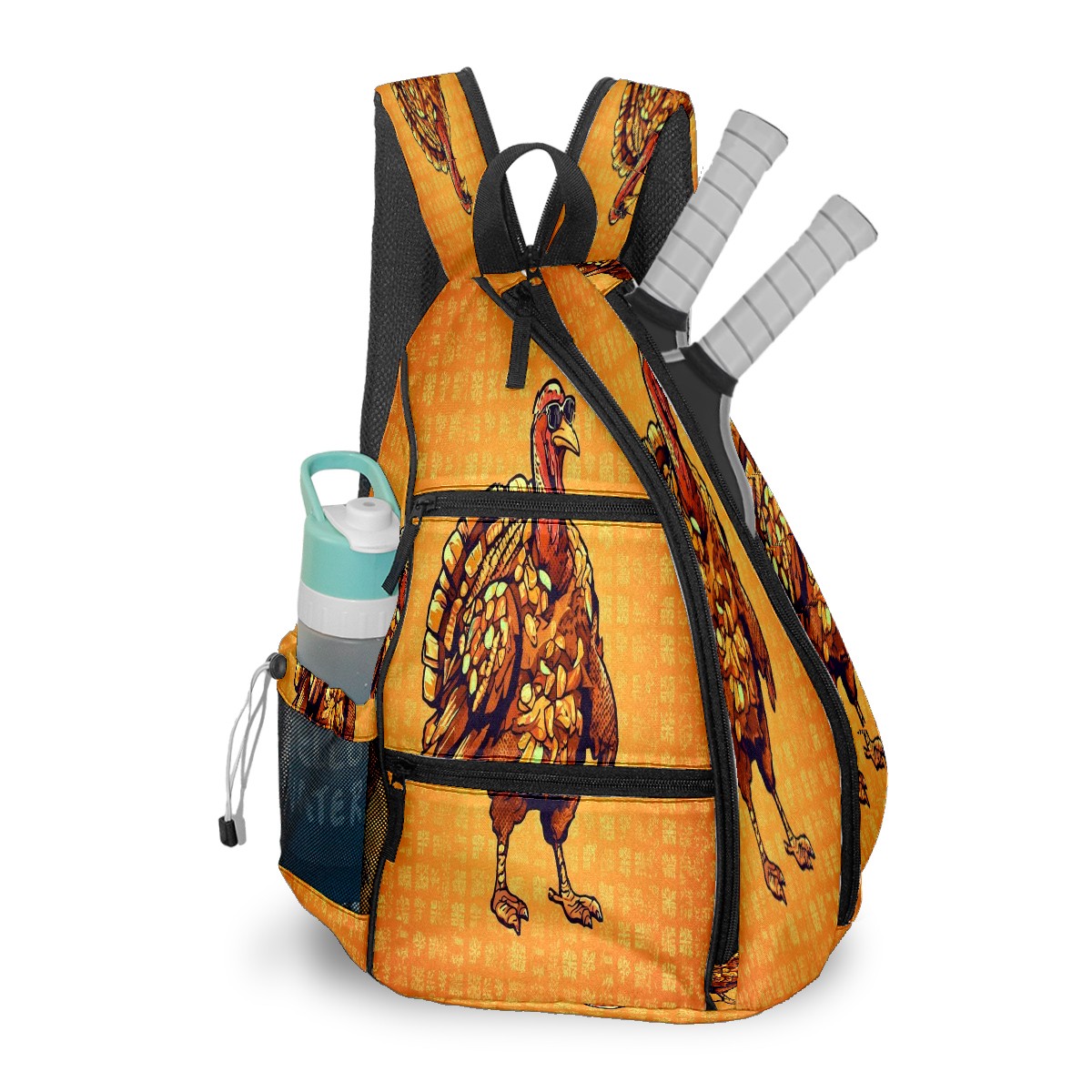 Print Pickleball Backpack Orange Turkey | Padded 6-Paddle Compartment & Separate Shoe Bag | Multi-Pocket Sports & Gym Backpack for Tennis, Travel, Commute