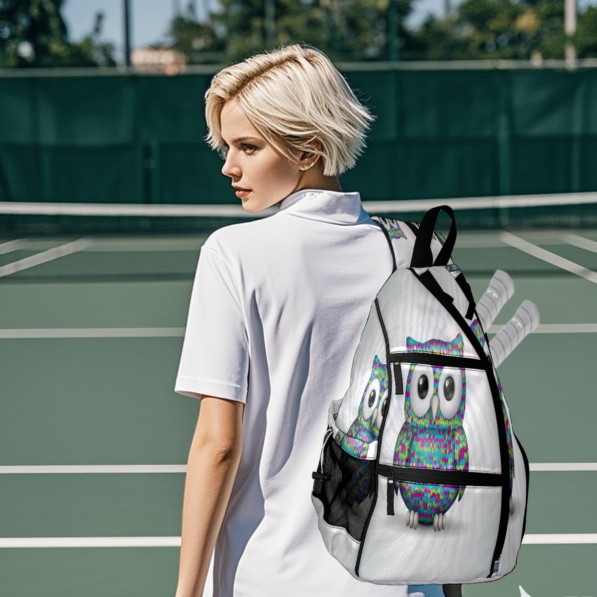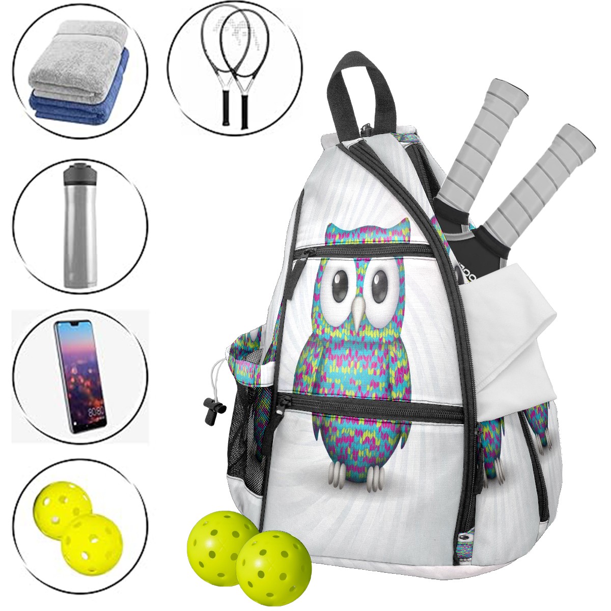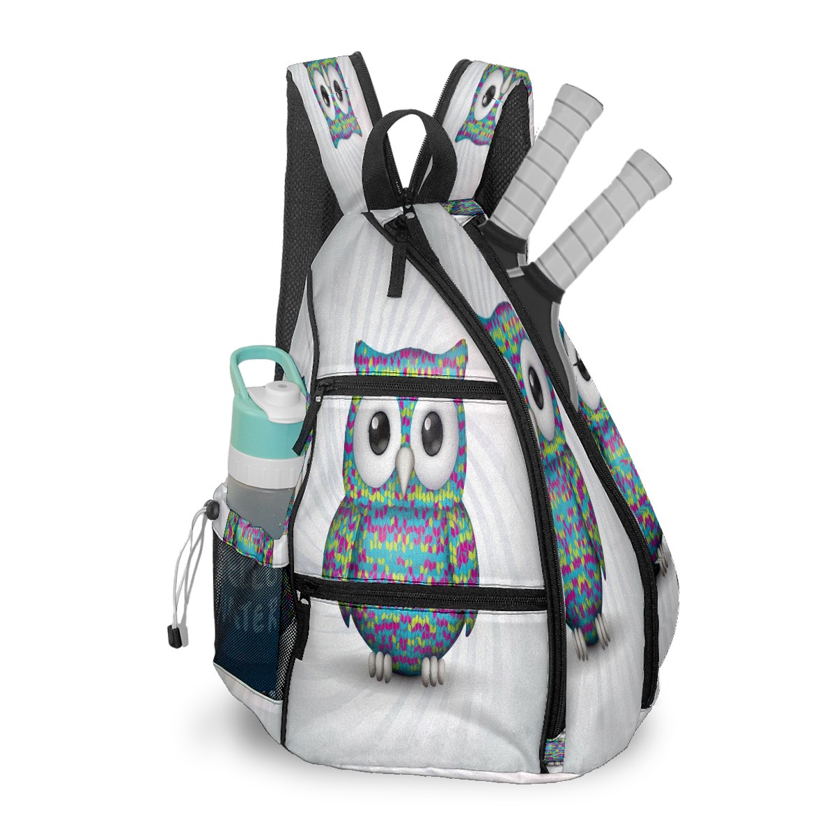 Print Pickleball Backpack Multicolor Owl | Padded 6-Paddle Compartment & Separate Shoe Bag | Multi-Pocket Sports & Gym Backpack for Tennis, Travel, Commute