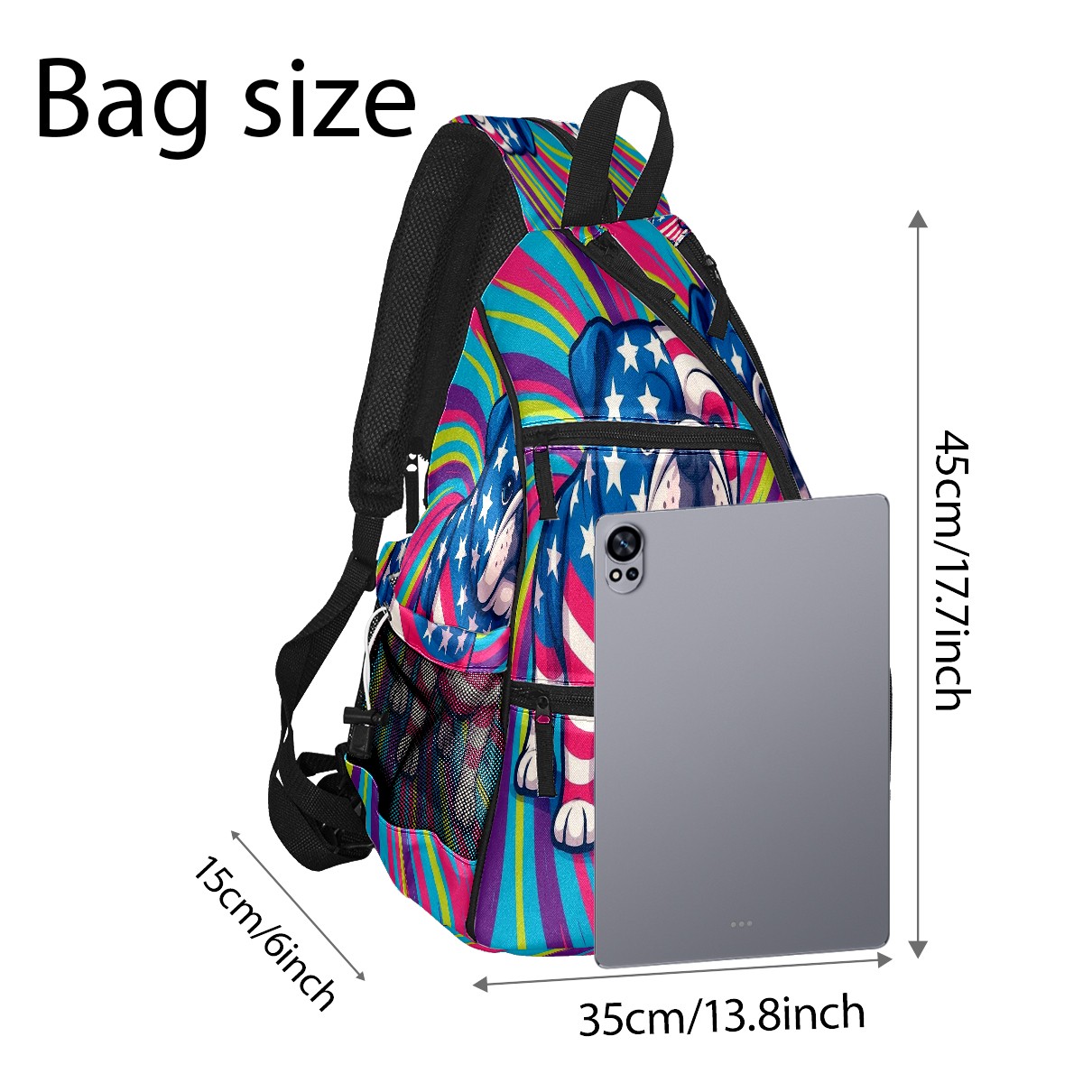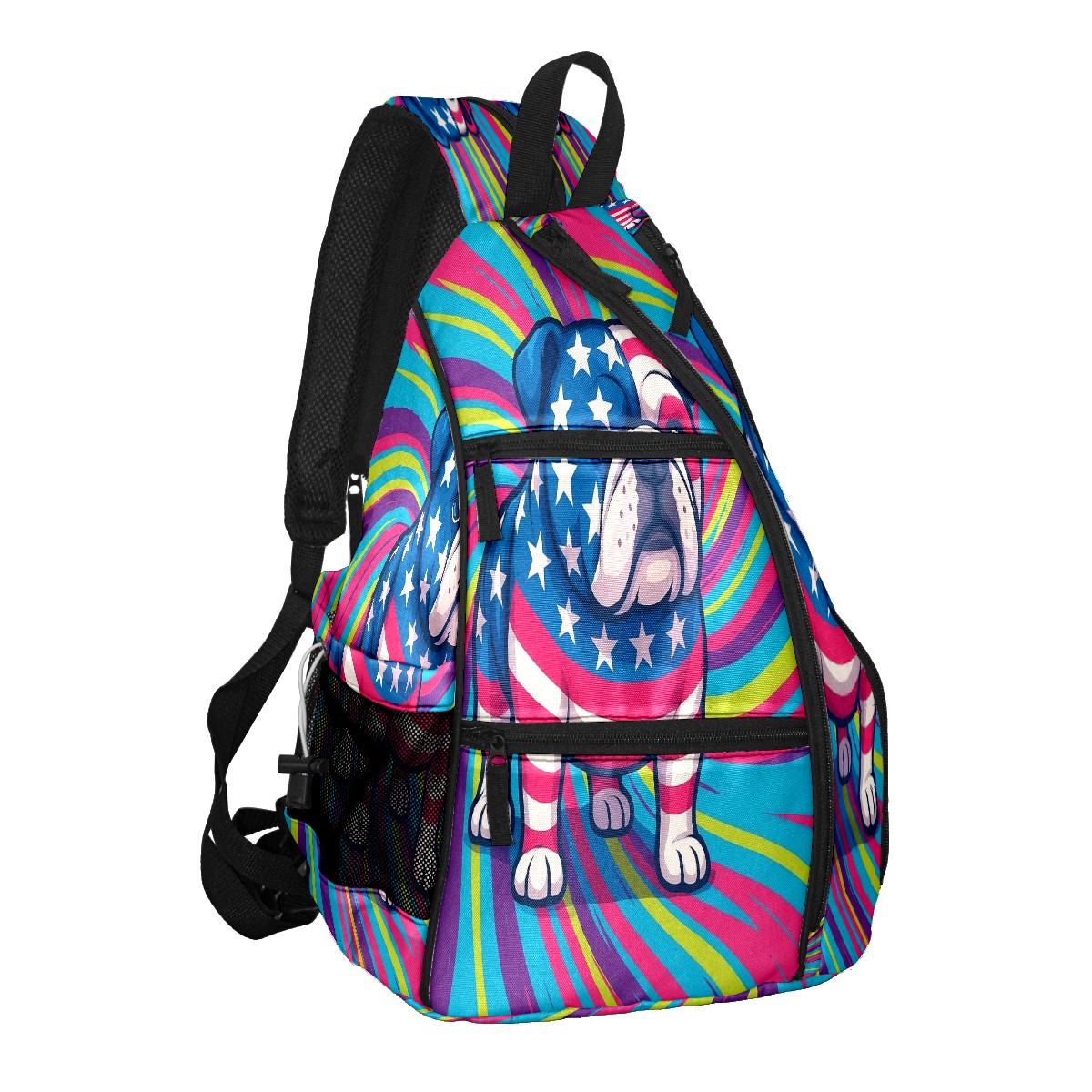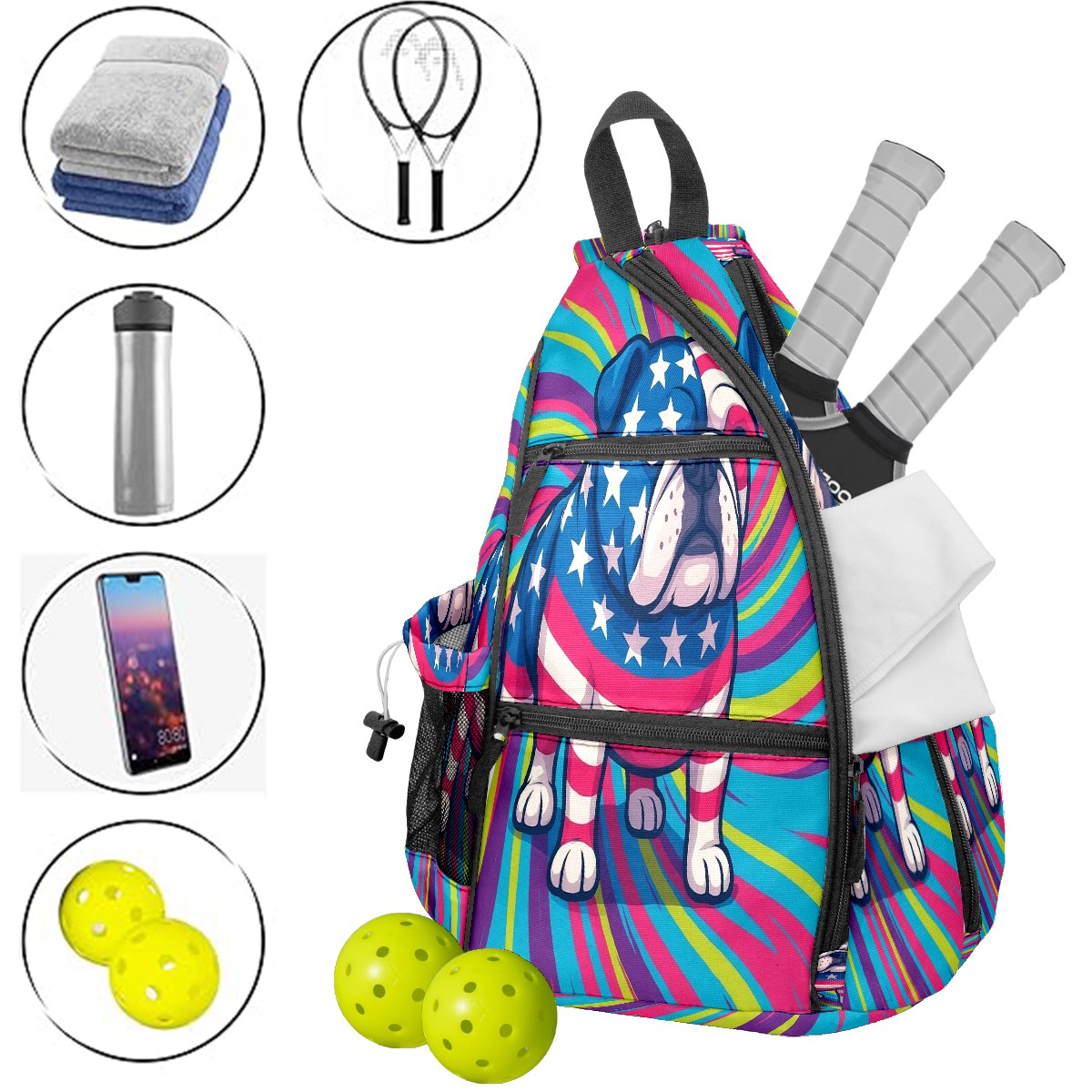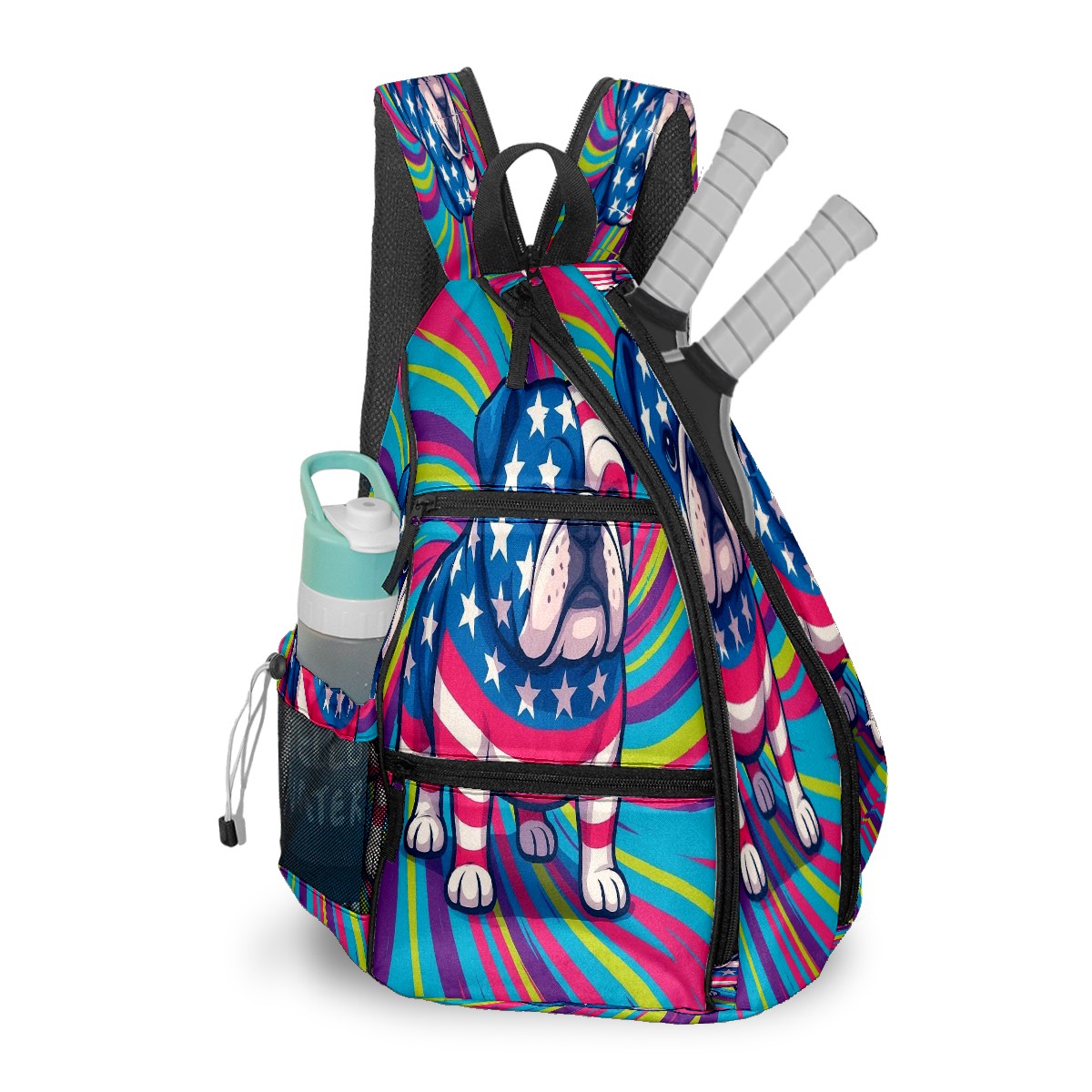 Print Pickleball Backpack Multicolor Bulldog | Padded 6-Paddle Compartment & Separate Shoe Bag | Multi-Pocket Sports & Gym Backpack for Tennis, Travel, Commute