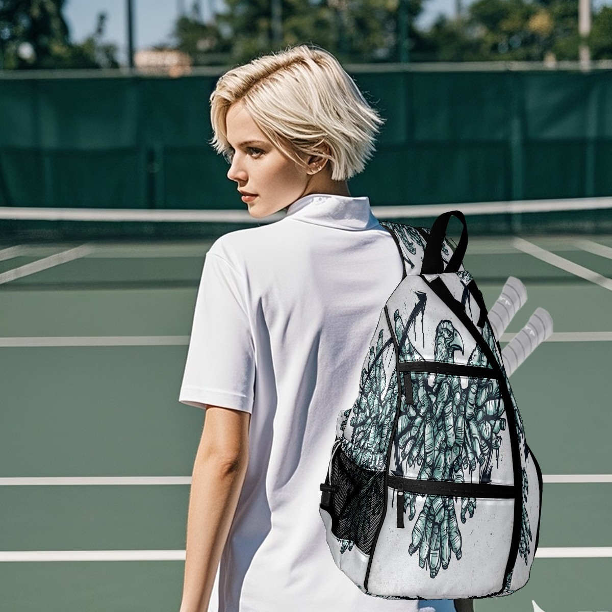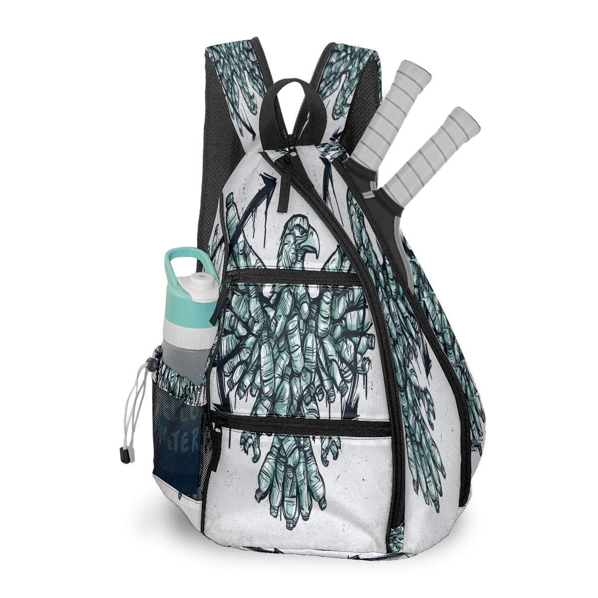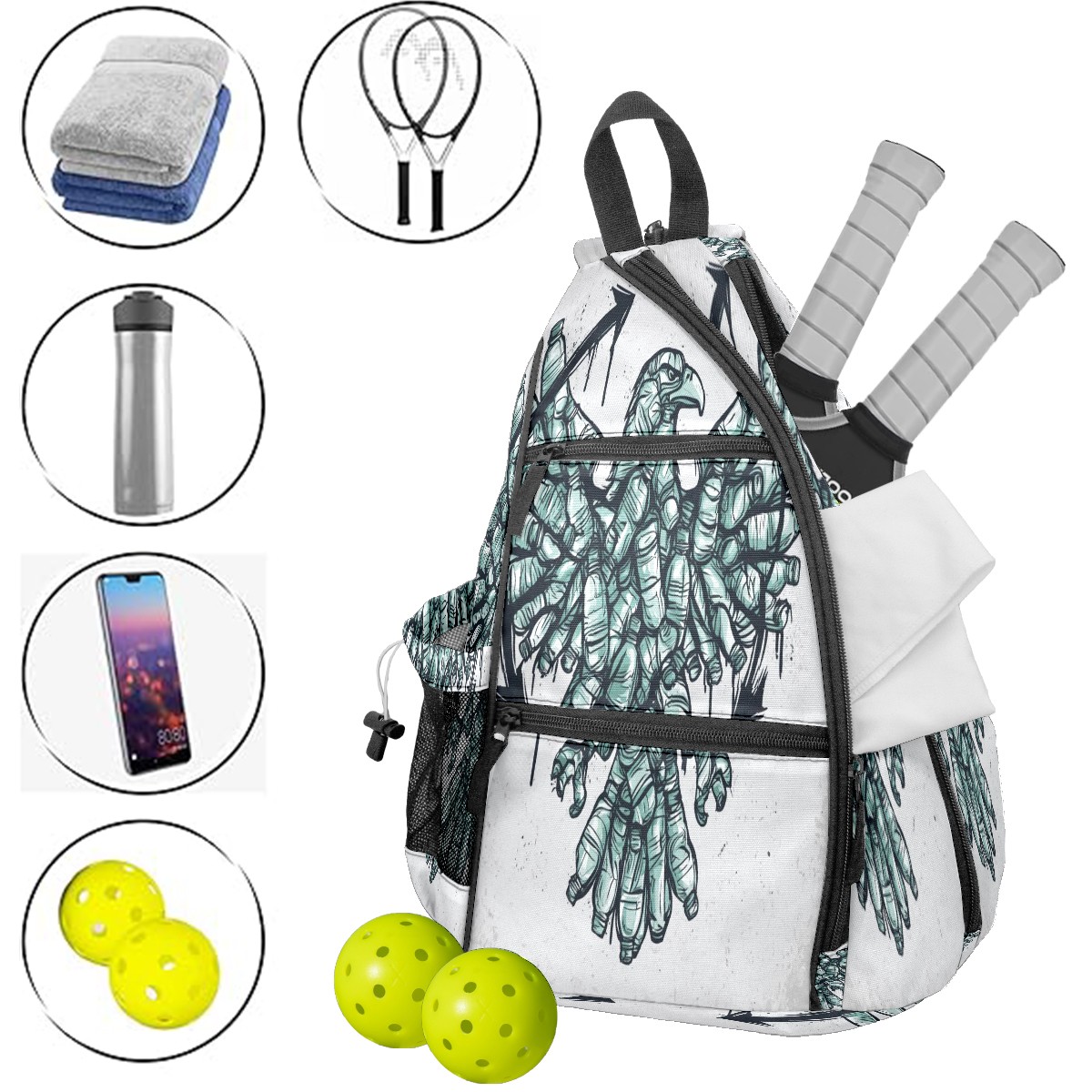 Print Pickleball Backpack Gray Eagle | Padded 6-Paddle Compartment & Separate Shoe Bag | Multi-Pocket Sports & Gym Backpack for Tennis, Travel, Commute