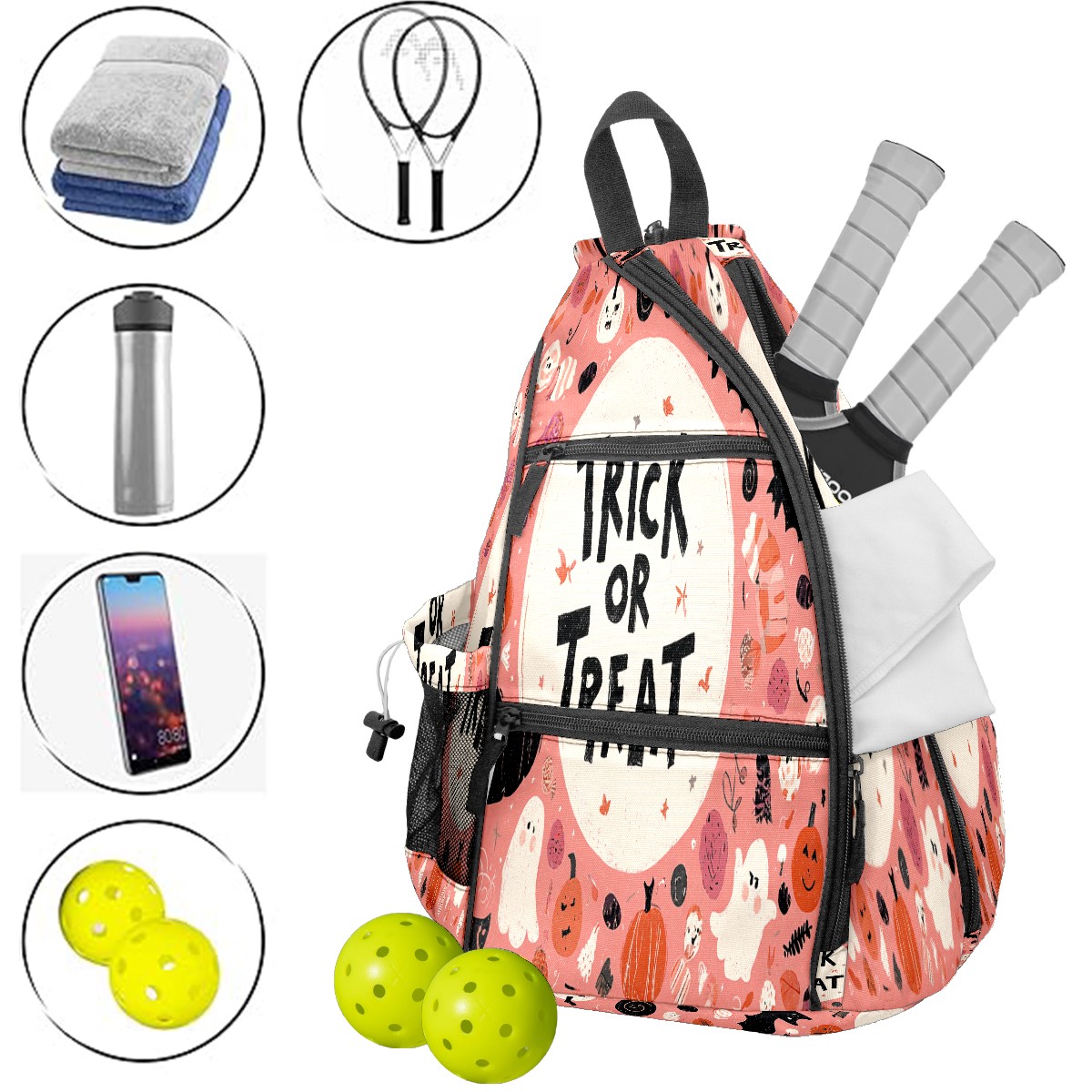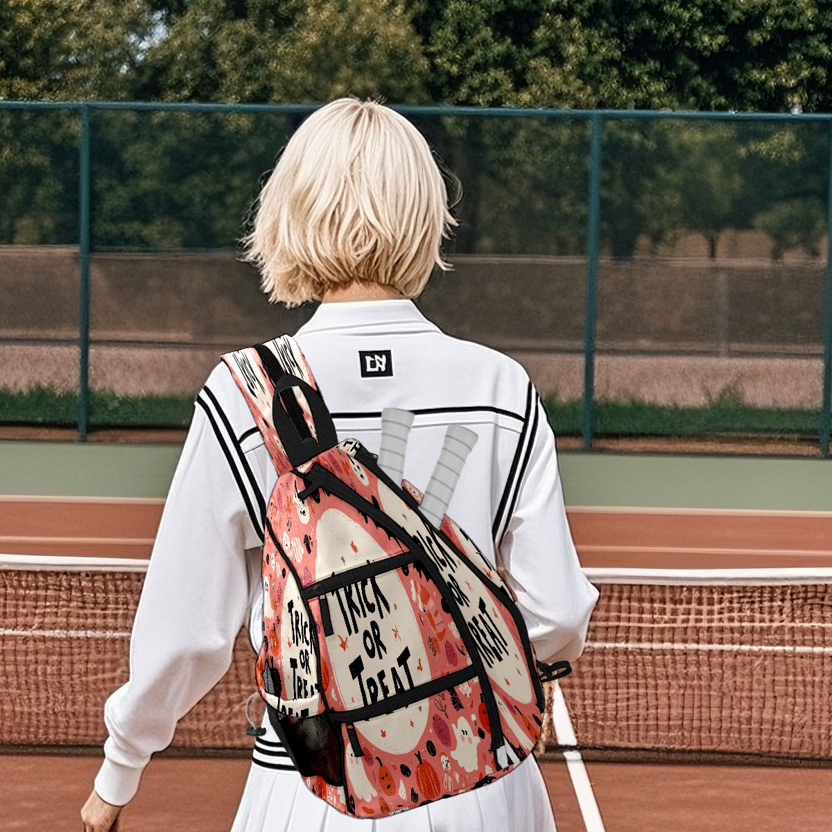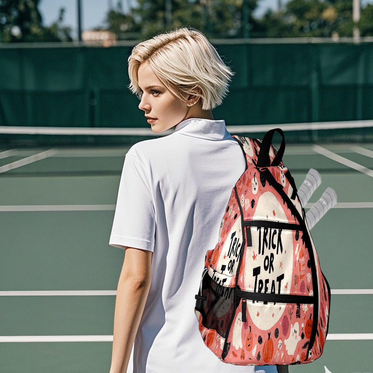 Print Pickleball Backpack Halloween Ghost Pink Floral | Padded 6-Paddle Compartment & Separate Shoe Bag | Multi-Pocket Sports & Gym Backpack for Tennis, Travel, Commute