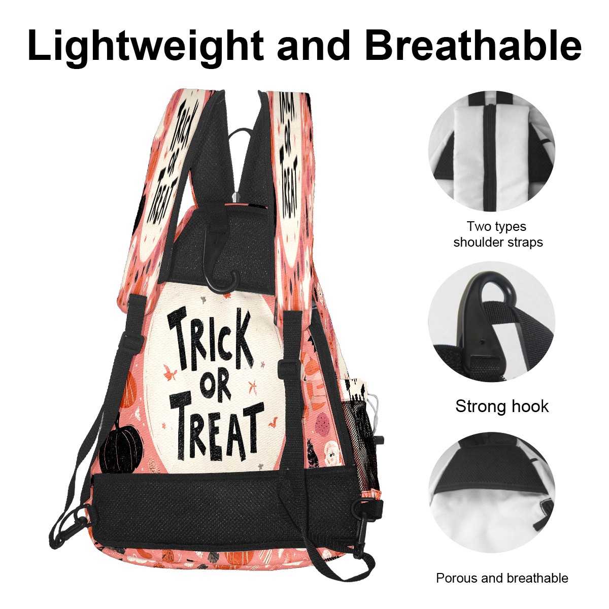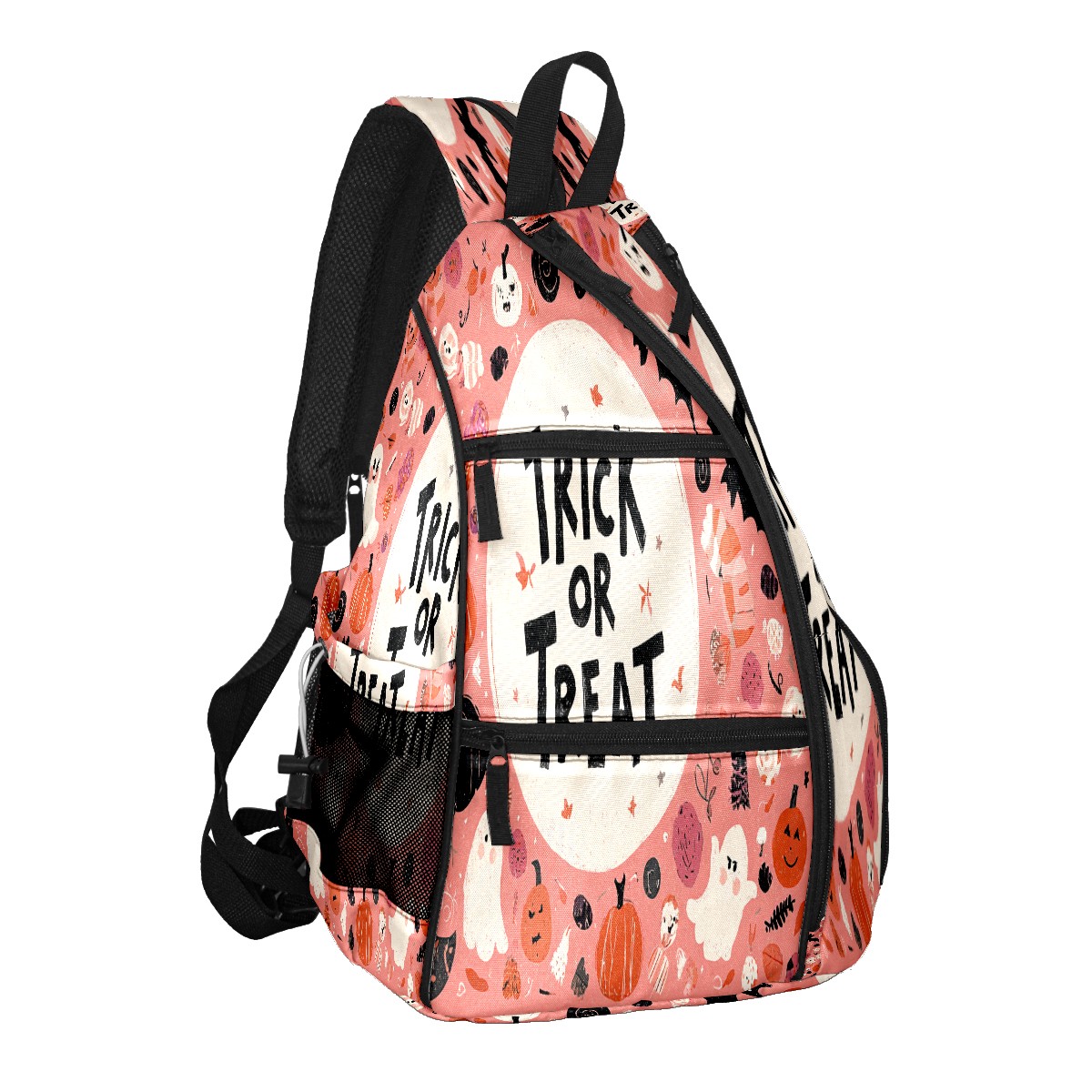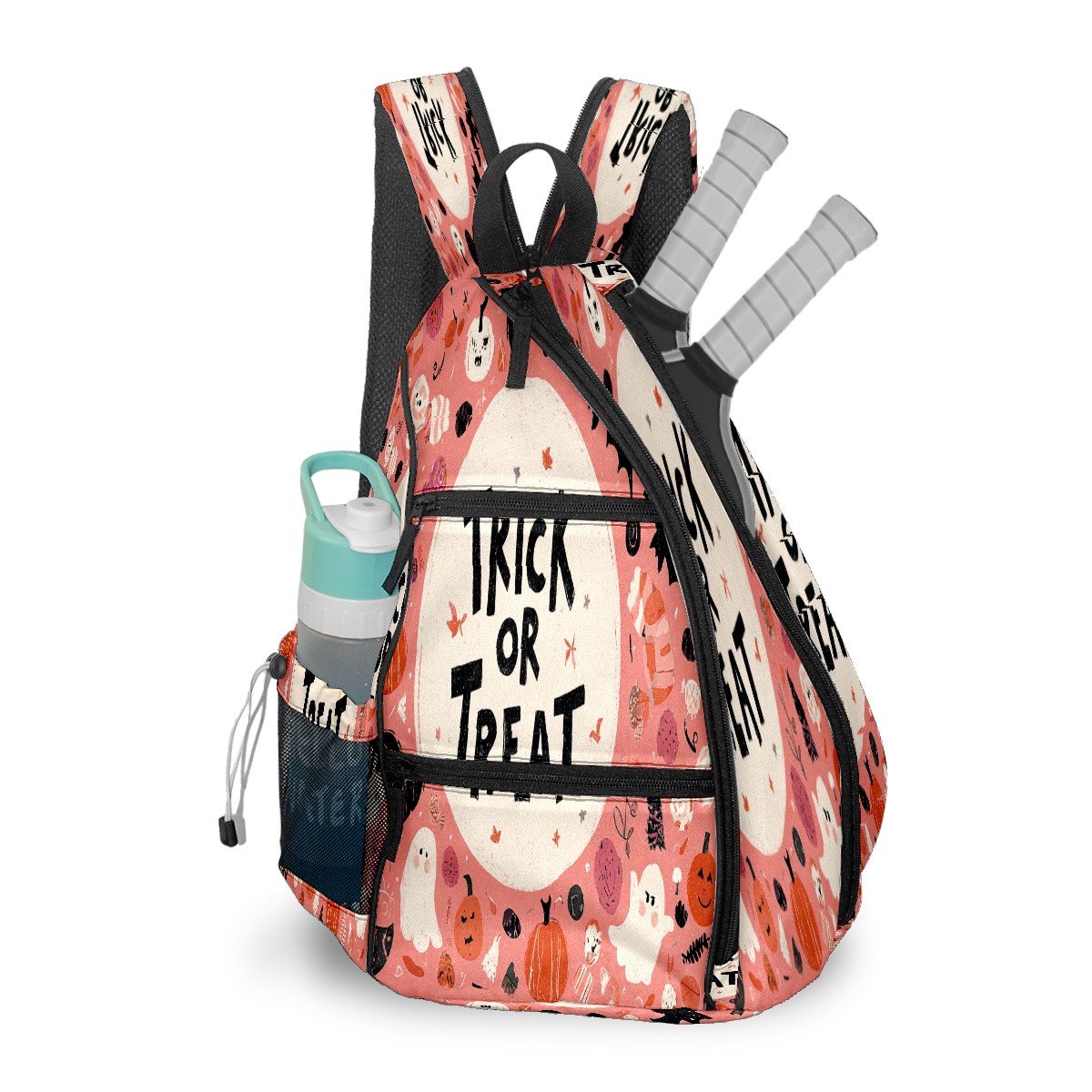 Print Pickleball Backpack Halloween Ghost Pink Floral | Padded 6-Paddle Compartment & Separate Shoe Bag | Multi-Pocket Sports & Gym Backpack for Tennis, Travel, Commute