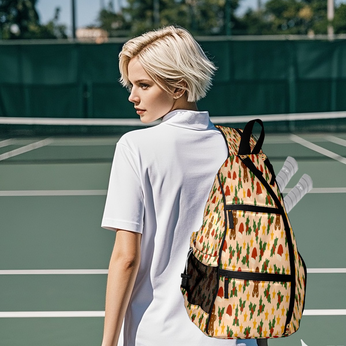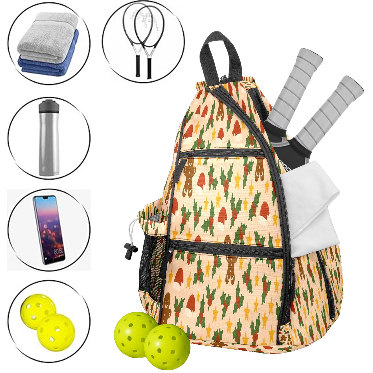 Print Pickleball Backpack Gingerbread BrownYellow Floral | Padded 6-Paddle Compartment & Separate Shoe Bag | Multi-Pocket Sports & Gym Backpack for Tennis, Travel, Commute
