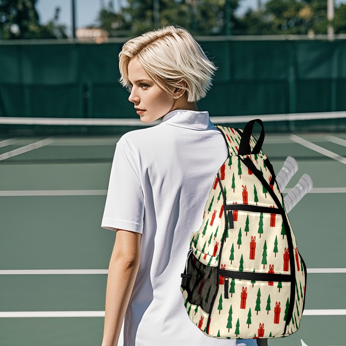 Print Pickleball Backpack Xmas Gift RedGreen Floral | Padded 6-Paddle Compartment & Separate Shoe Bag | Multi-Pocket Sports & Gym Backpack for Tennis, Travel, Commute