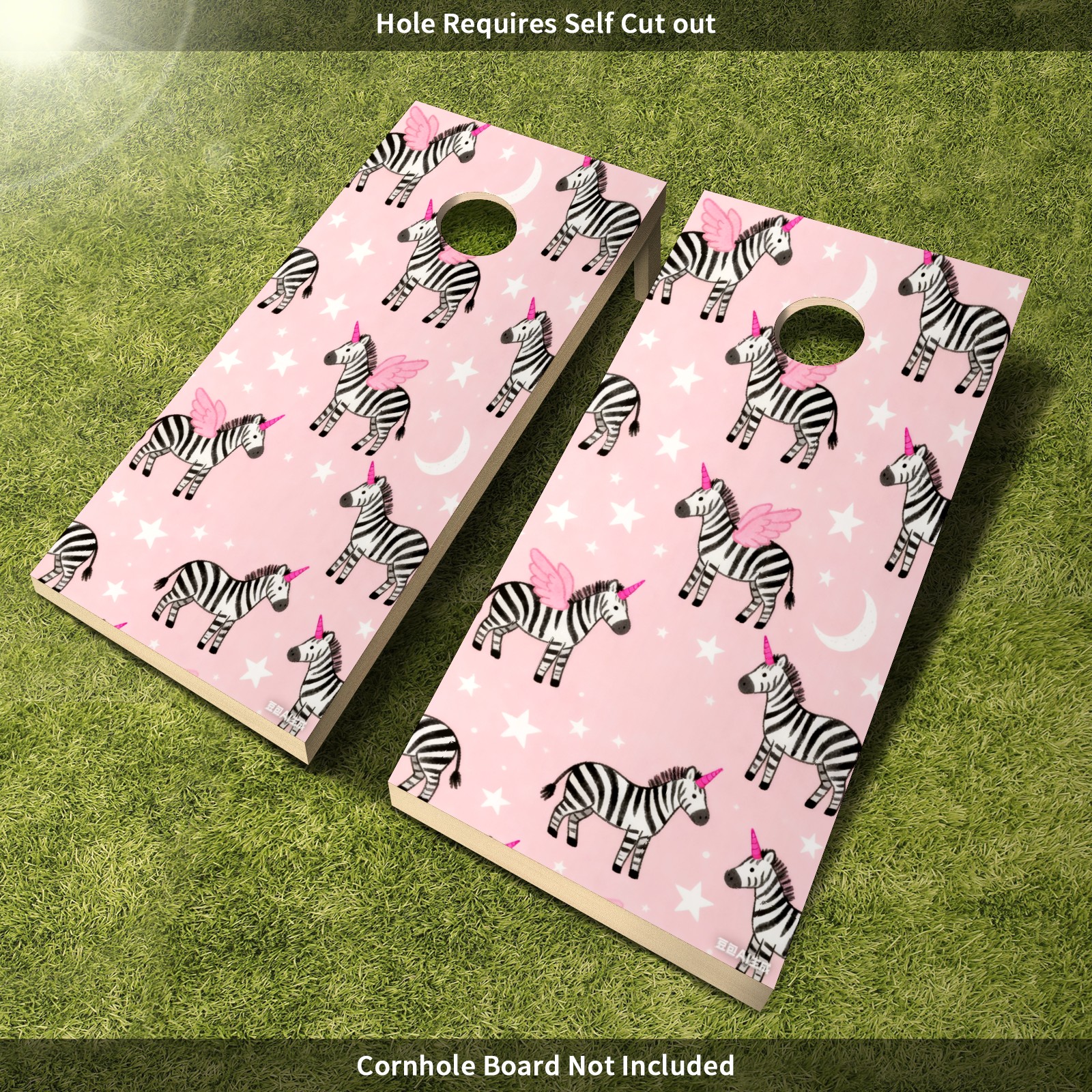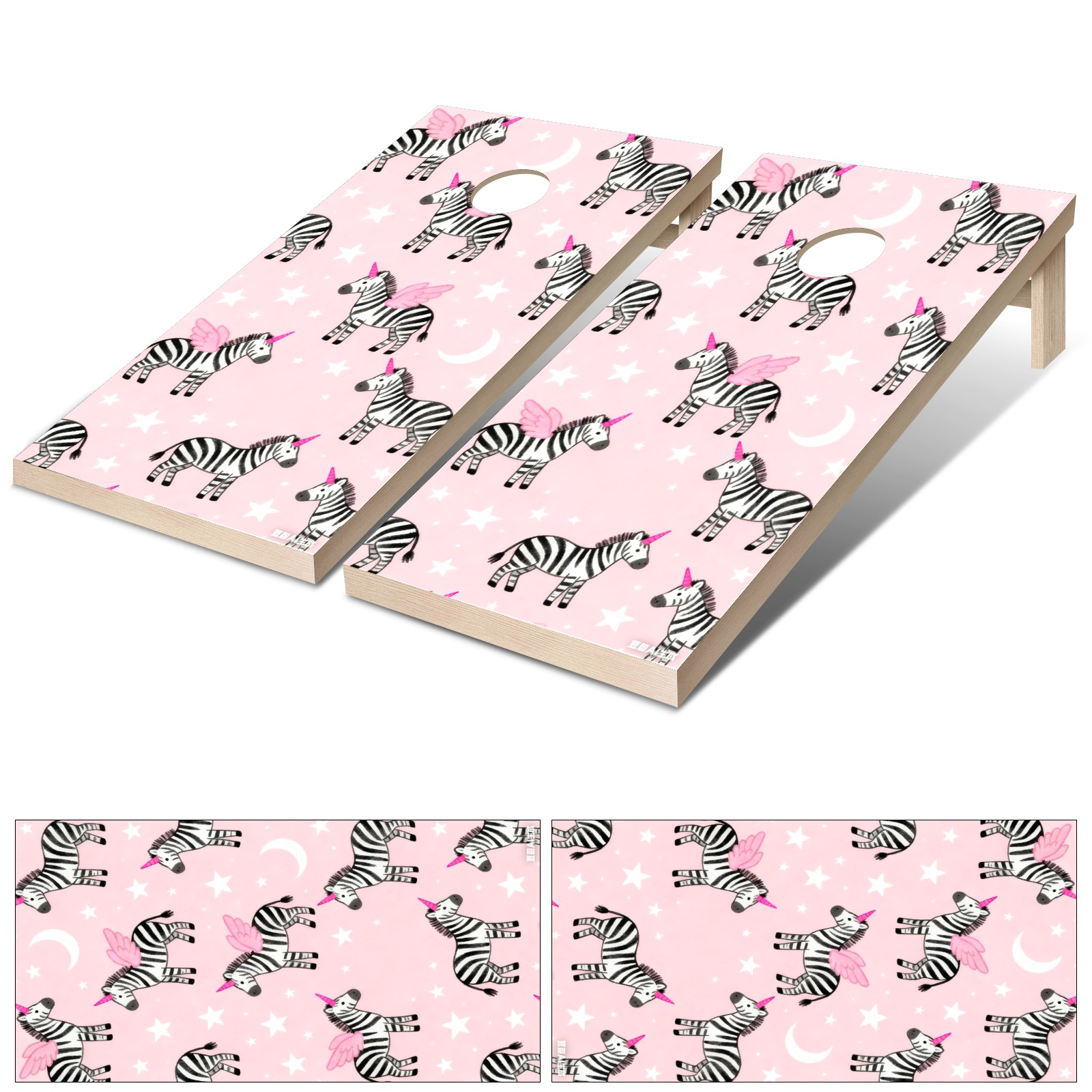 Portable 4x2 Cornhole Set with Two-piece Pack Boards - Cornhole Game Sticker Included - Yard Travel Outdoor Toss Board for Adults Outside Activities Pink Zebra Pattern