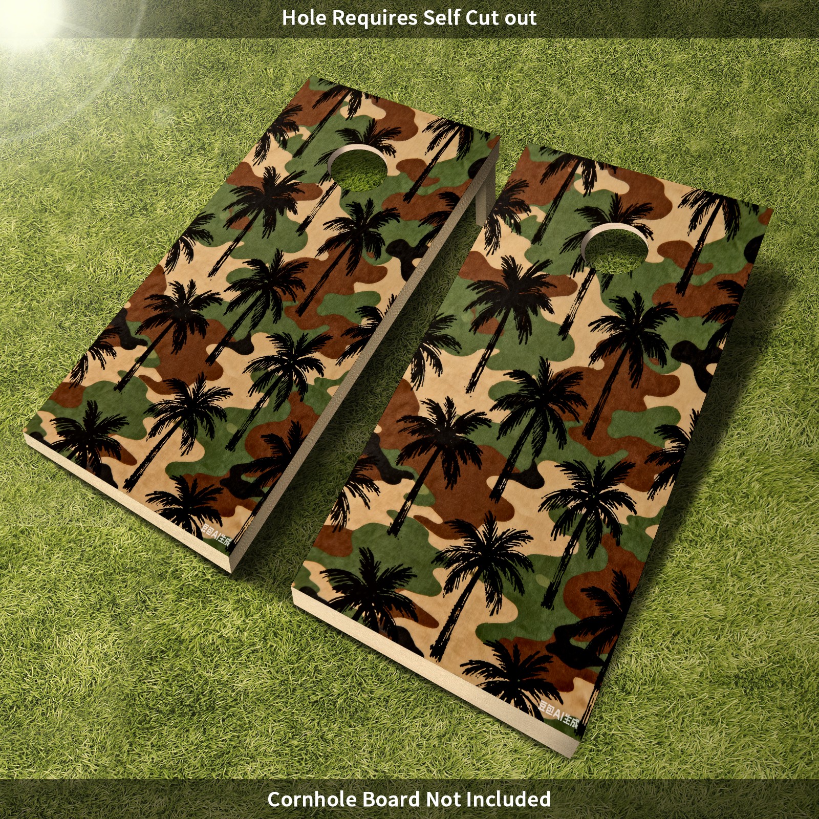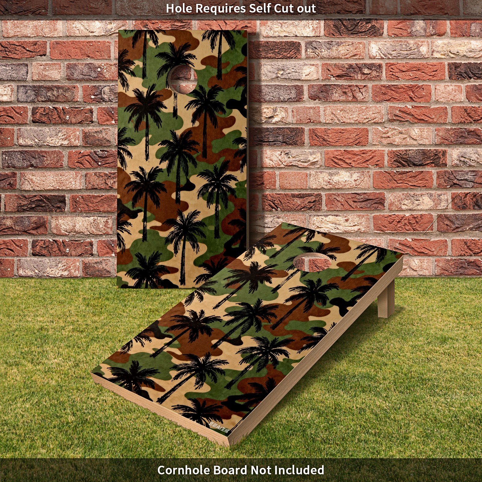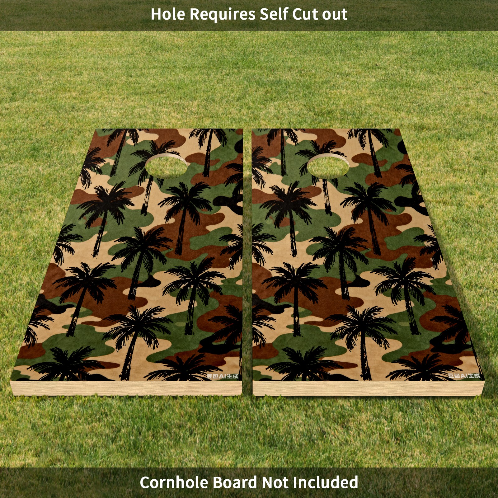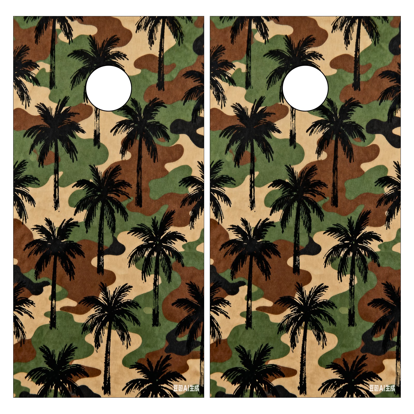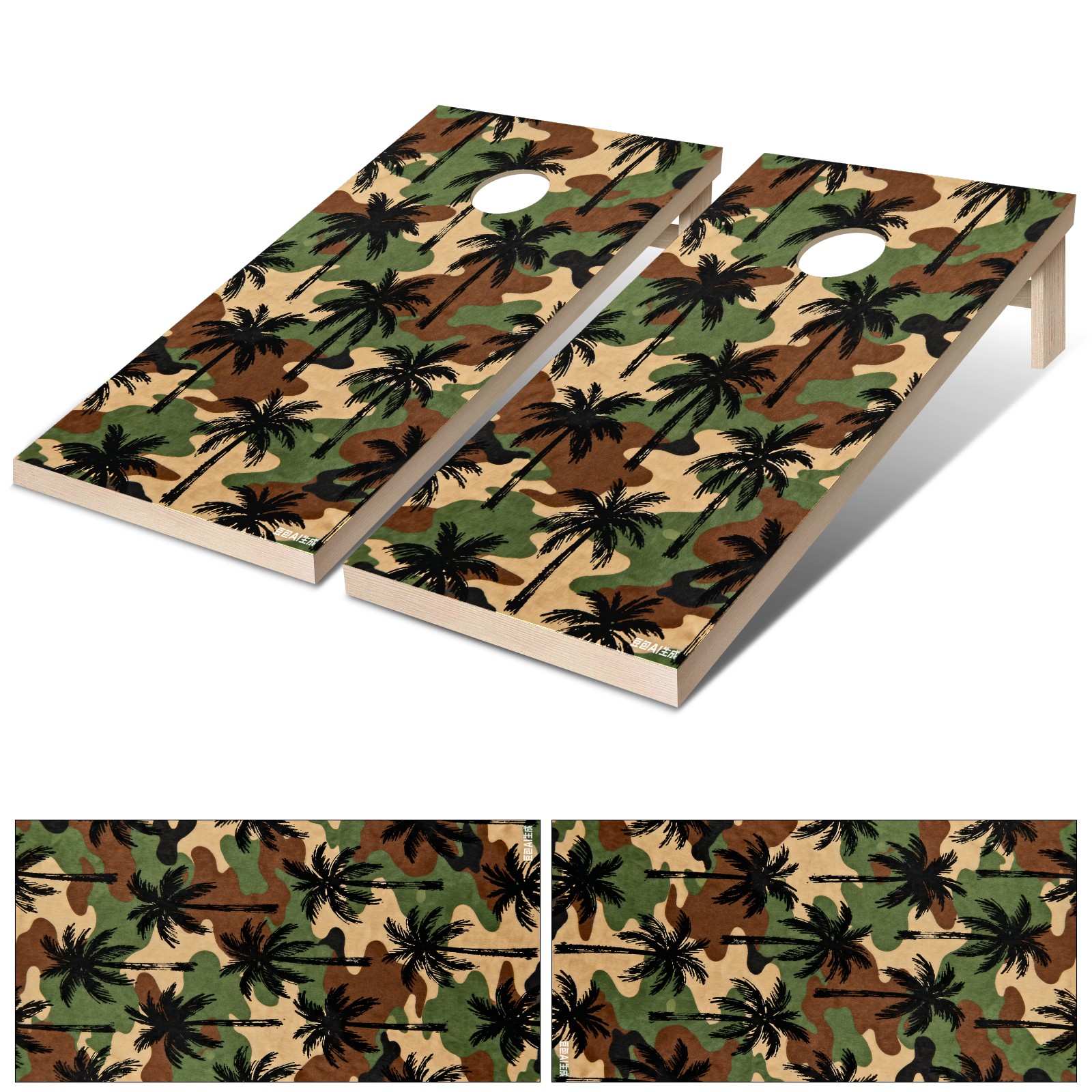 Portable 4x2 Cornhole Set with Two-piece Pack Boards - Cornhole Game Sticker Included - Yard Travel Outdoor Toss Board for Adults Outside Activities Camouflage Palm Tree