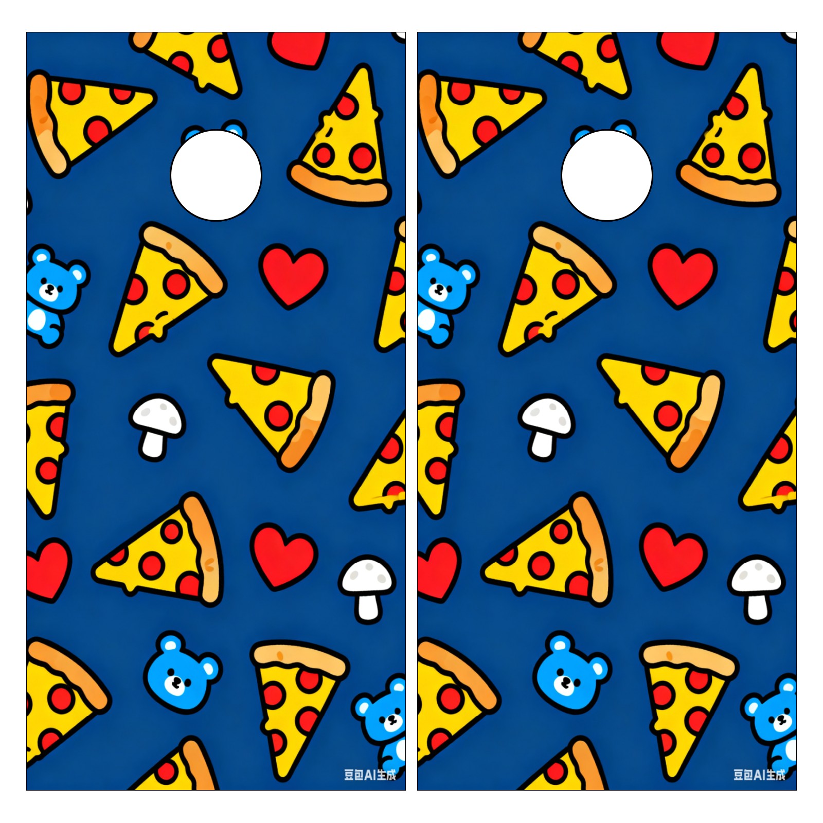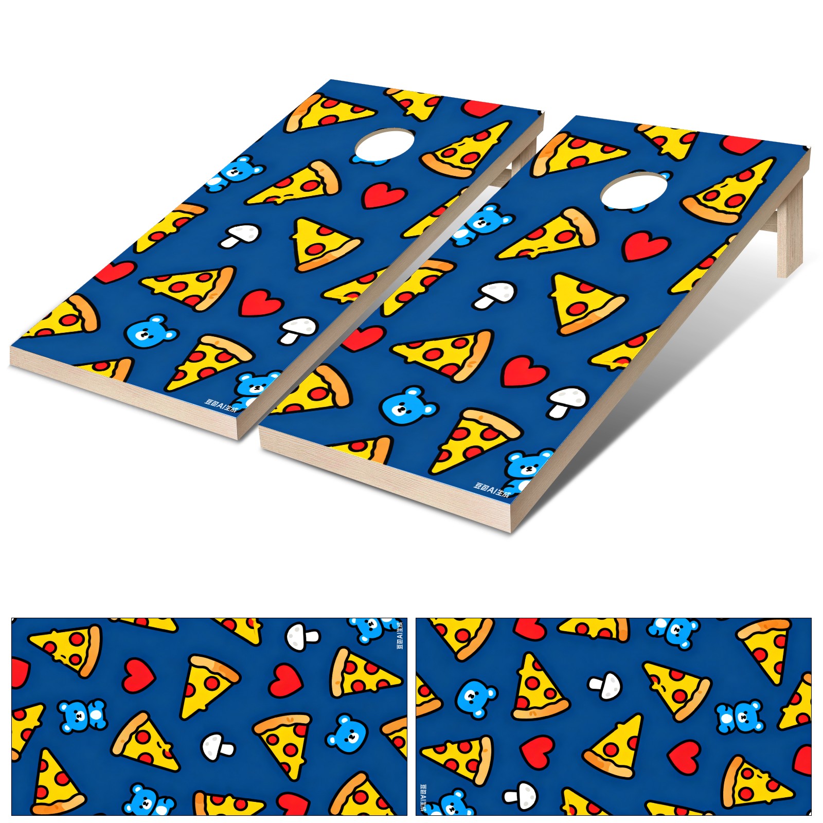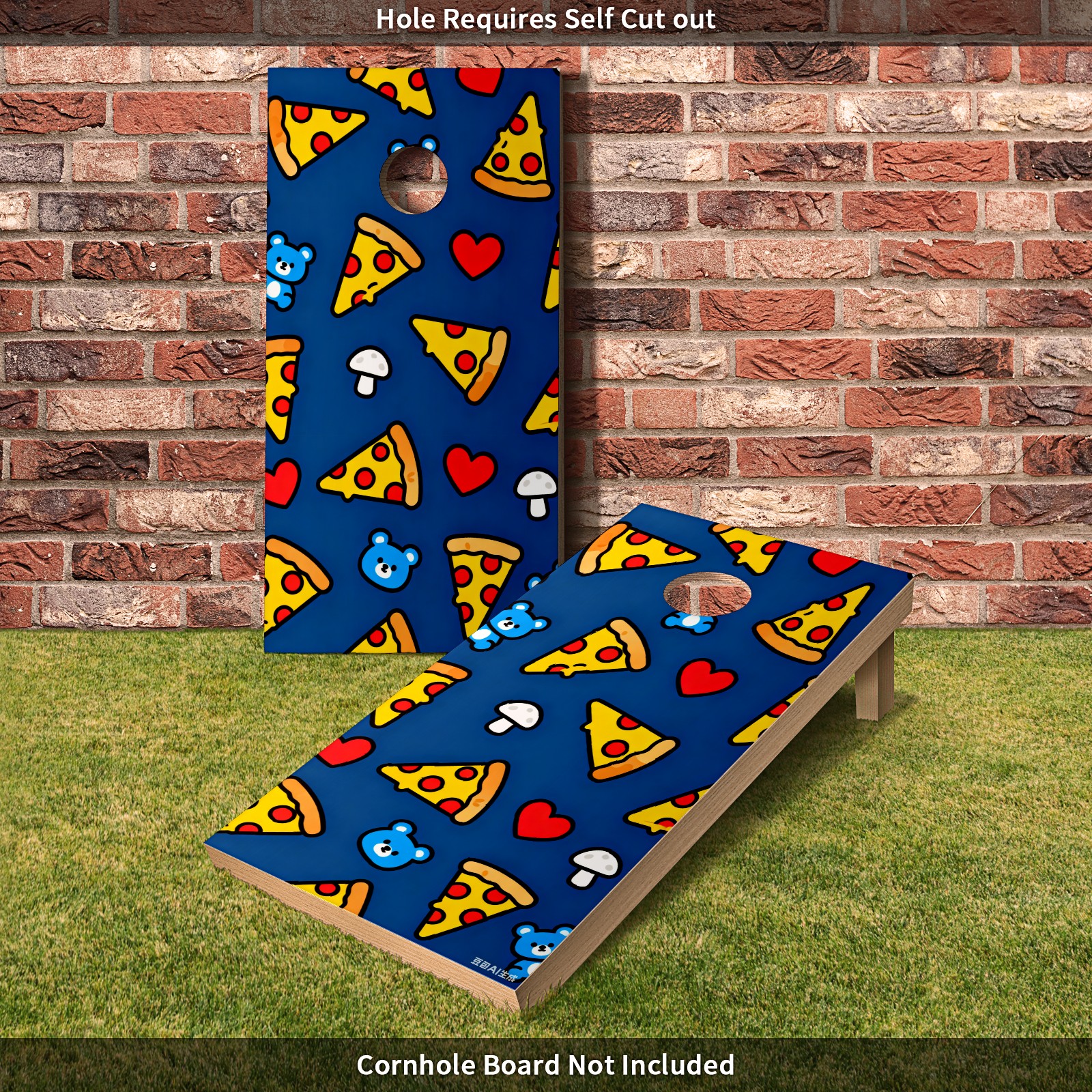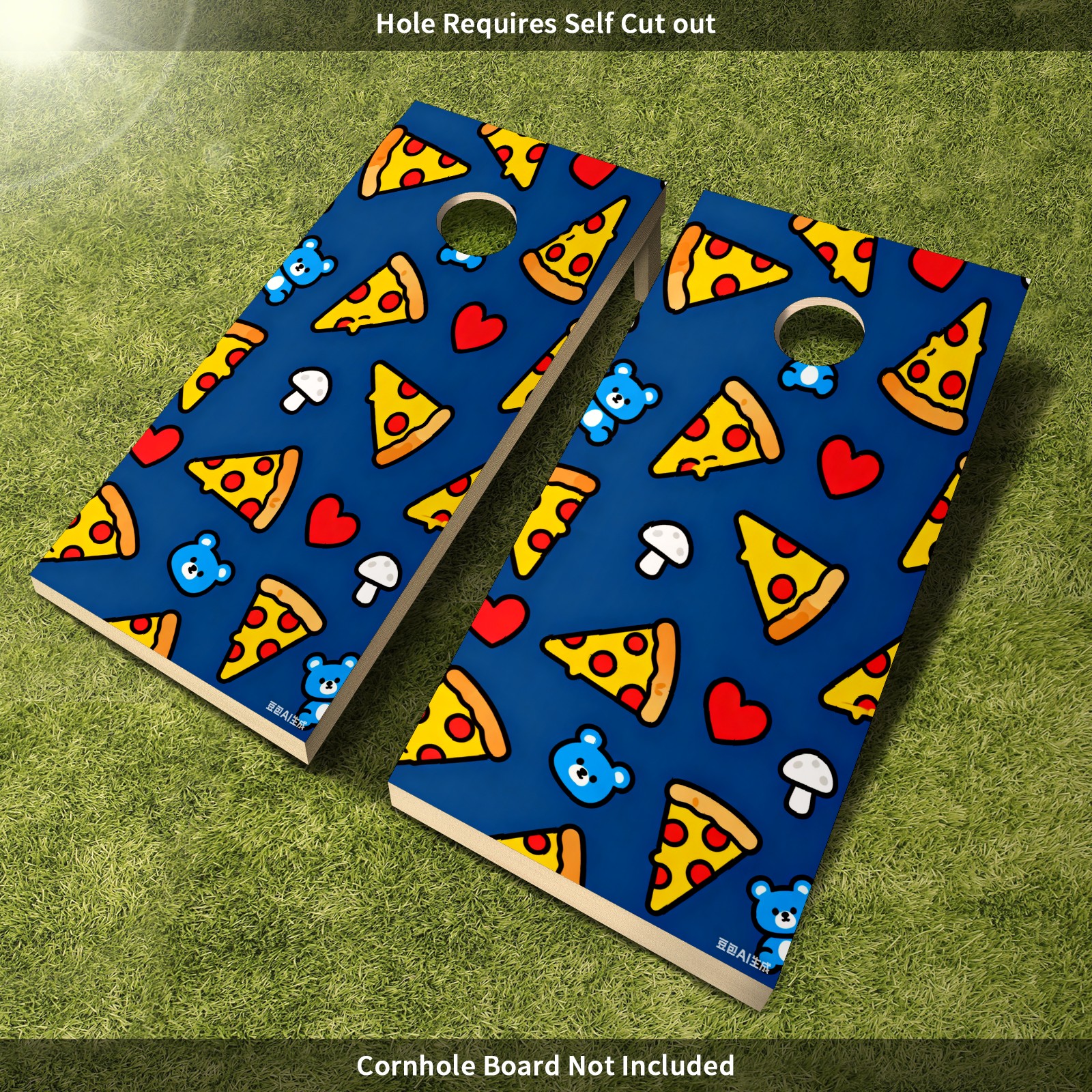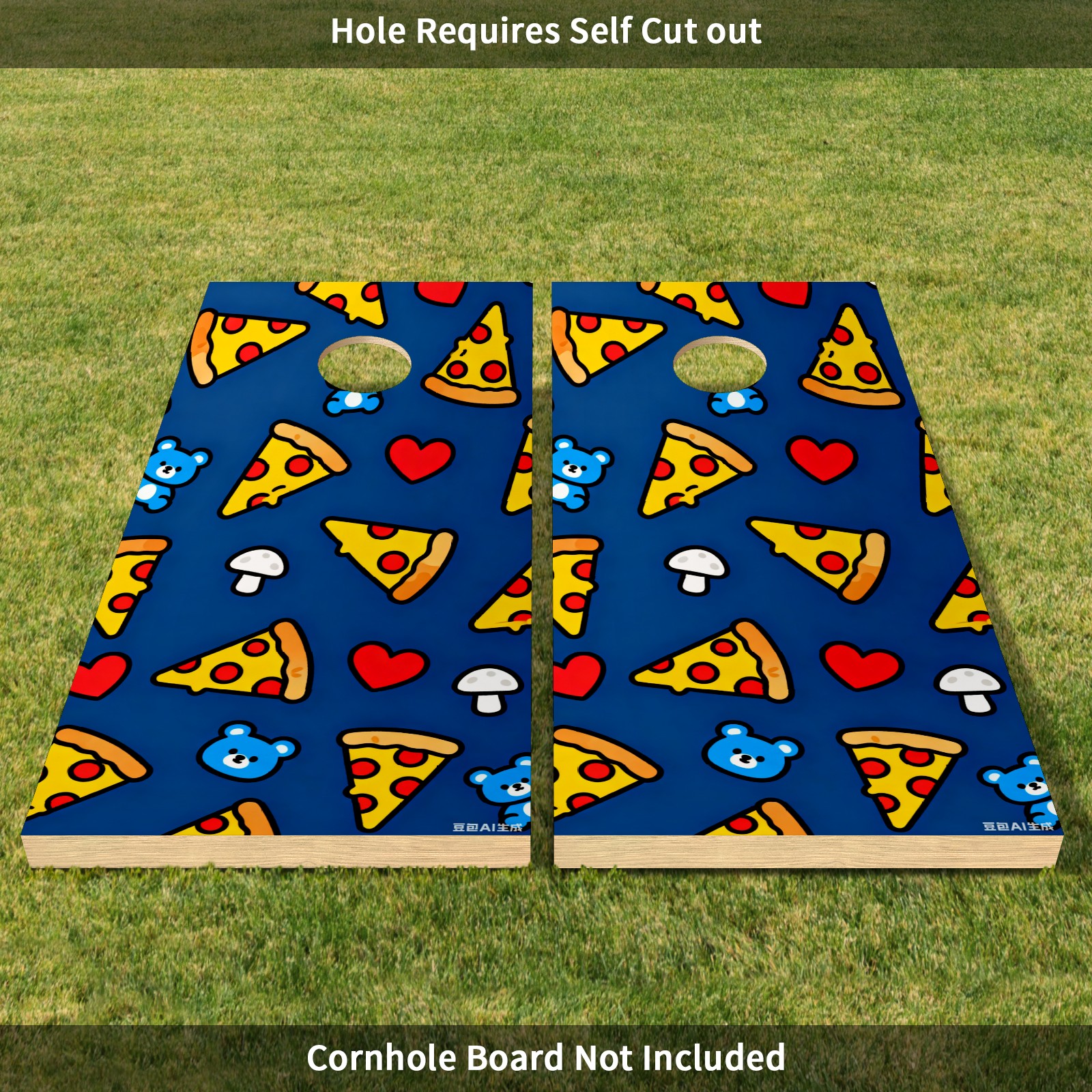 Portable 4x2 Cornhole Set with Two-piece Pack Boards - Cornhole Game Sticker Included - Yard Travel Outdoor Toss Board for Adults Outside Activities Cartoon Pizza Pattern