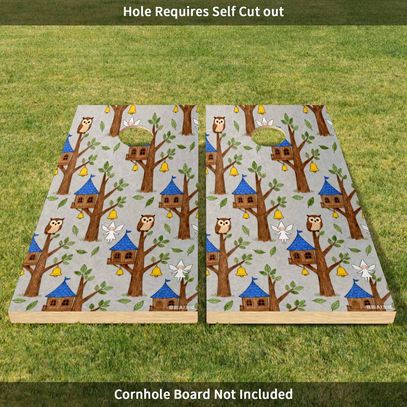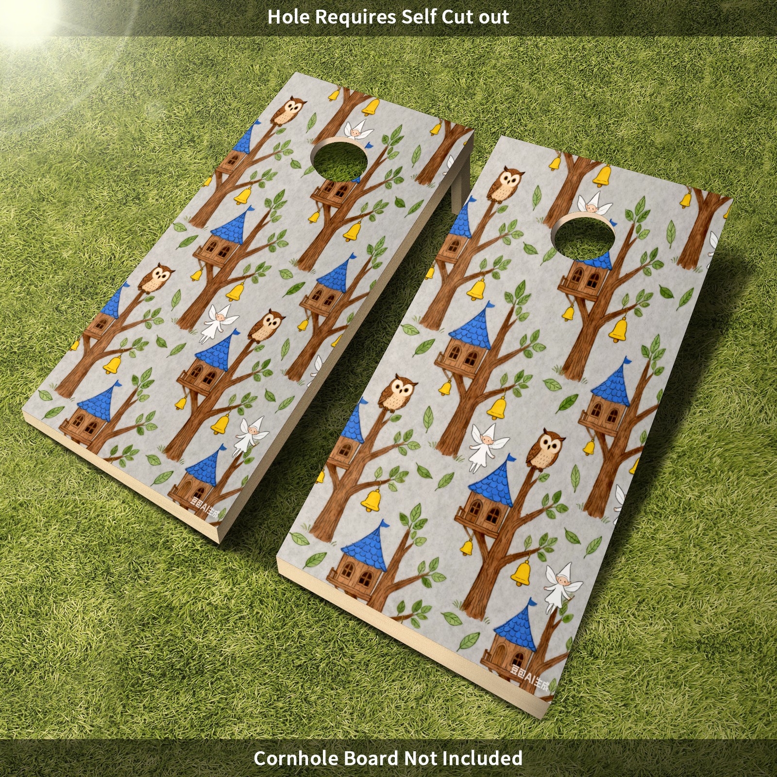 Portable 4x2 Cornhole Set with Two-piece Pack Boards - Cornhole Game Sticker Included - Yard Travel Outdoor Toss Board for Adults Outside Activities Light Gray Fairy Tale Treehouse