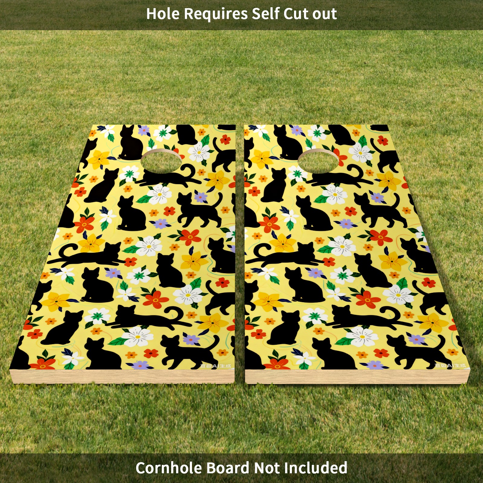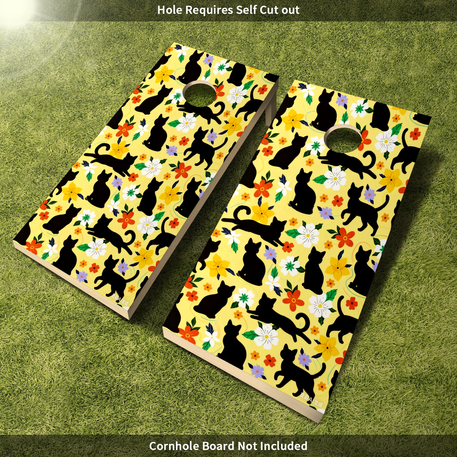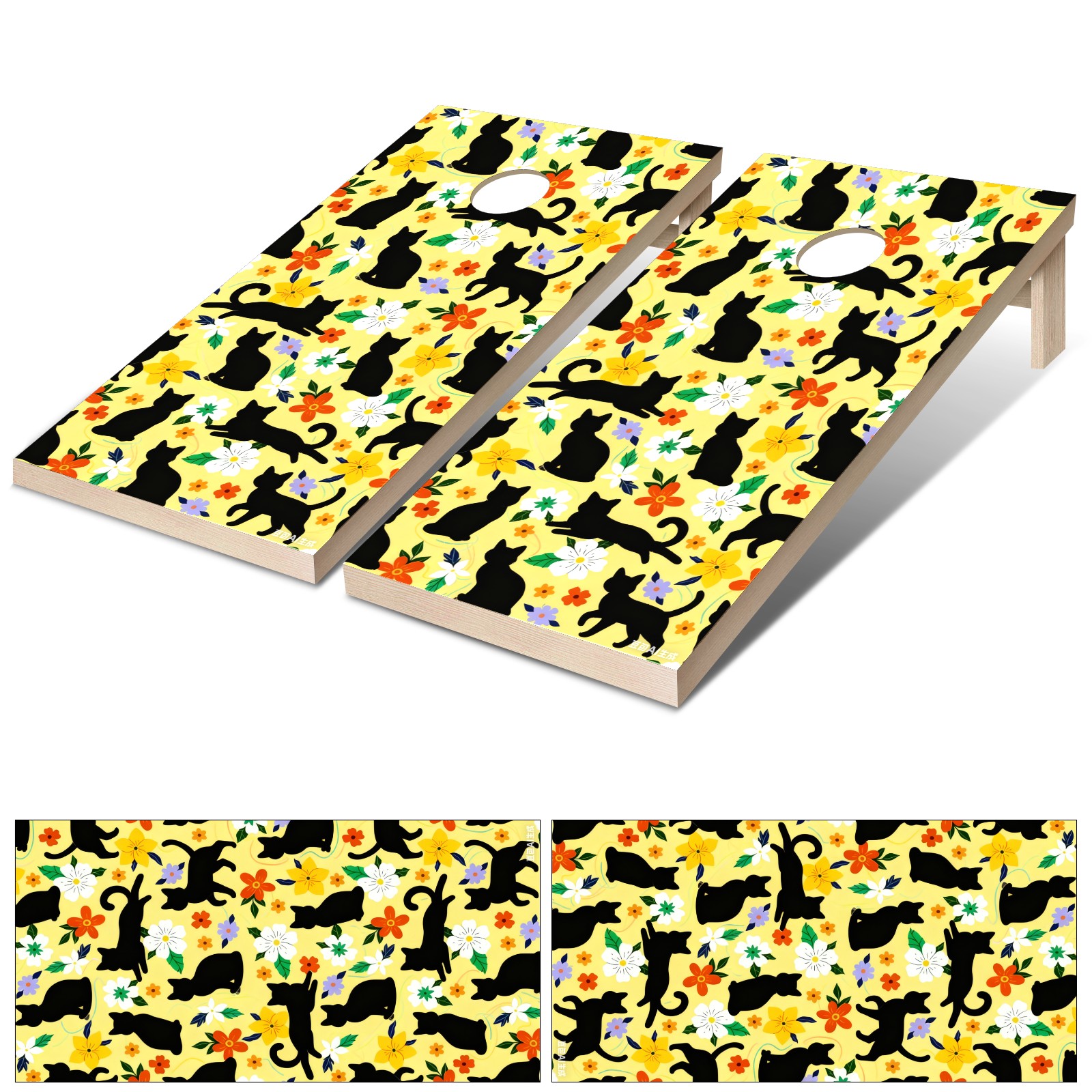 Portable 4x2 Cornhole Set with Two-piece Pack Boards - Cornhole Game Sticker Included - Yard Travel Outdoor Toss Board for Adults Outside Activities Black Cat Flowers