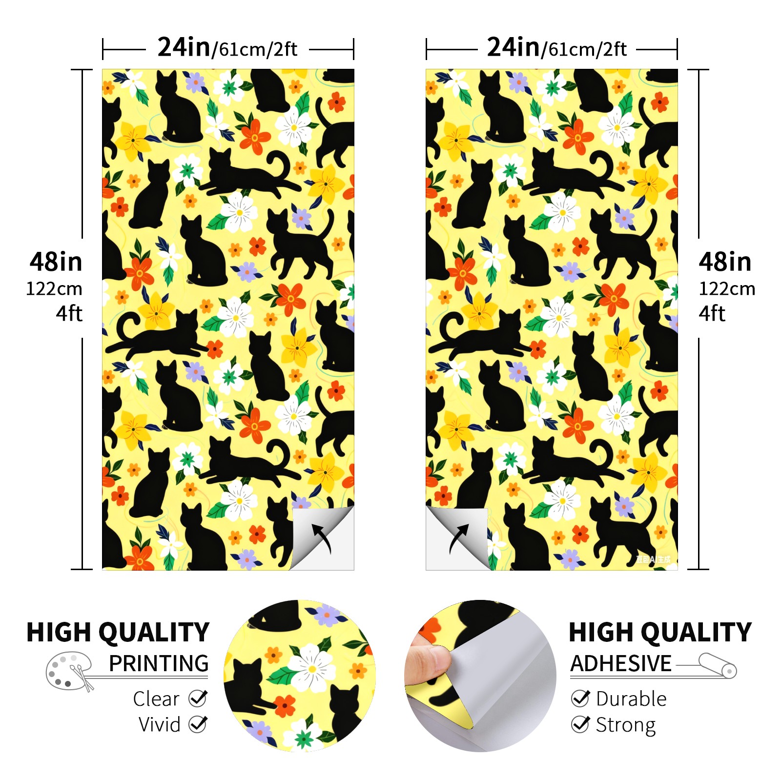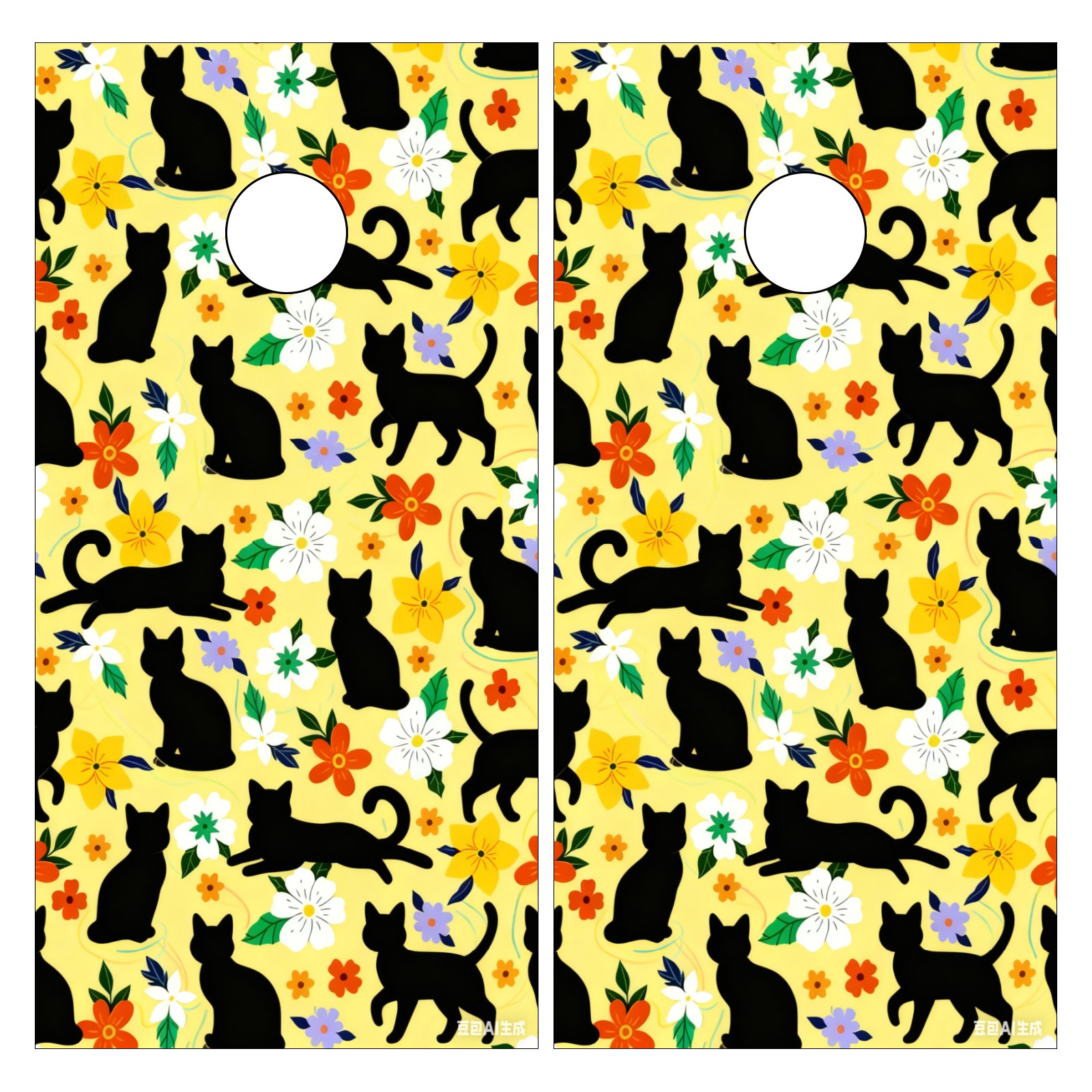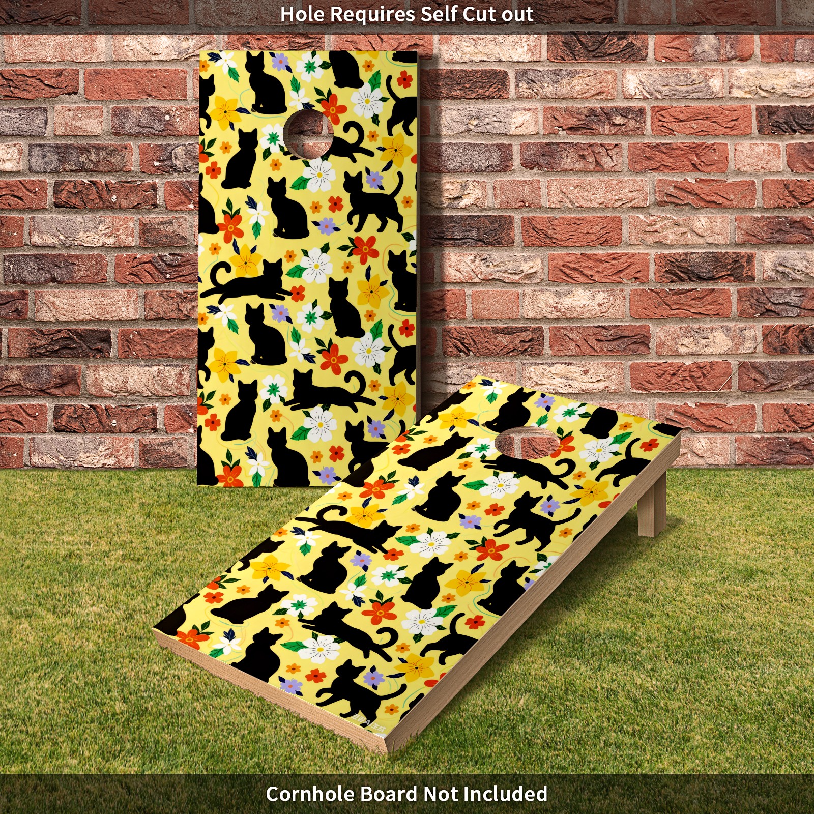 Portable 4x2 Cornhole Set with Two-piece Pack Boards - Cornhole Game Sticker Included - Yard Travel Outdoor Toss Board for Adults Outside Activities Black Cat Flowers