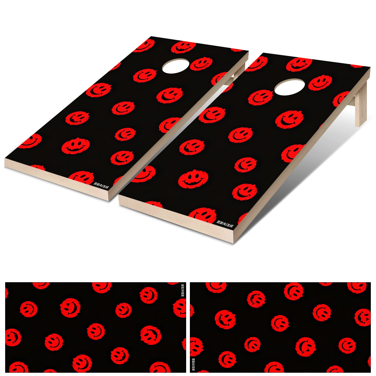 Portable 4x2 Cornhole Set with Two-piece Pack Boards - Cornhole Game Sticker Included - Yard Travel Outdoor Toss Board for Adults Outside Activities Red Evil Ghost