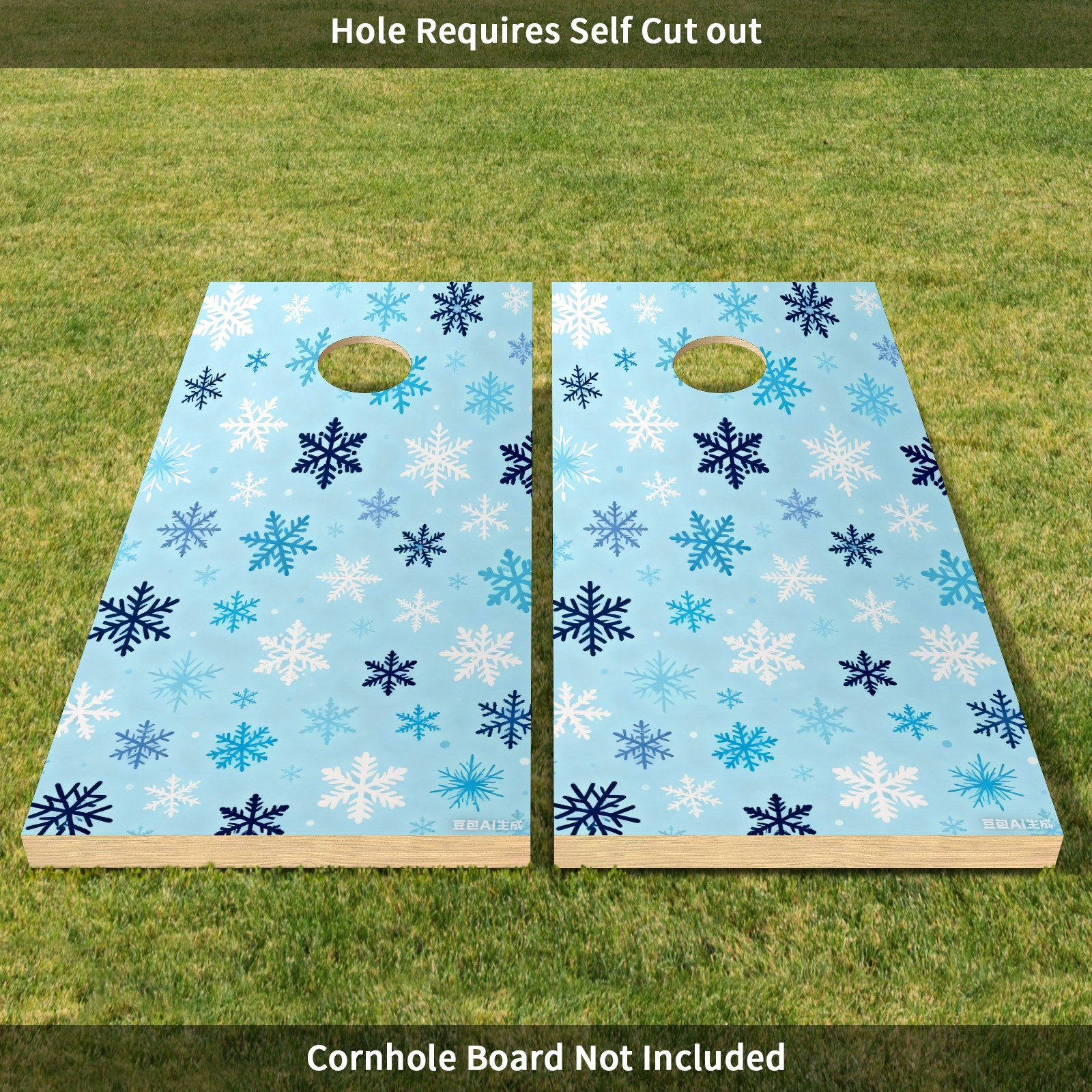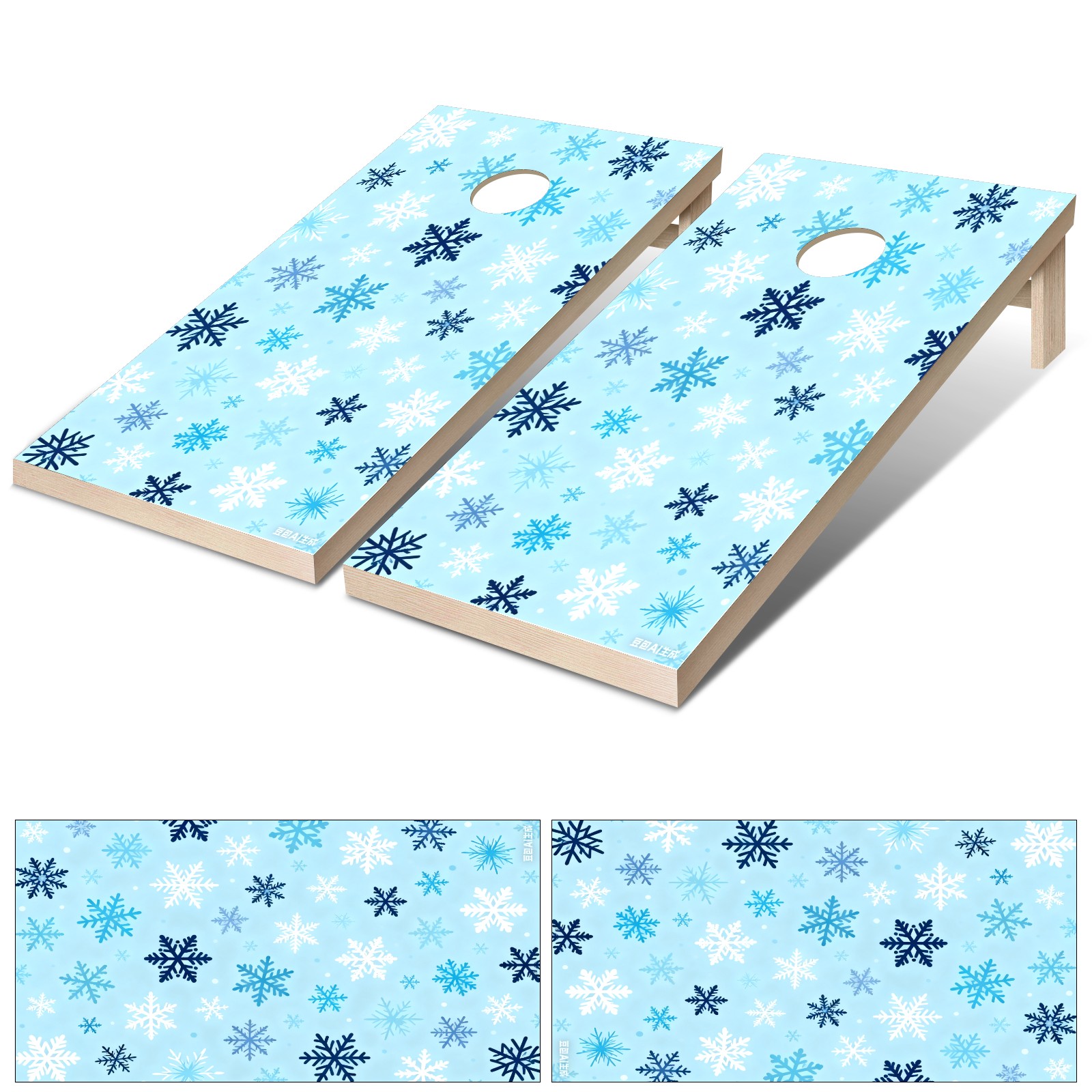 Portable 4x2 Cornhole Set with Two-piece Pack Boards - Cornhole Game Sticker Included - Yard Travel Outdoor Toss Board for Adults Outside Activities Blue Snowflake