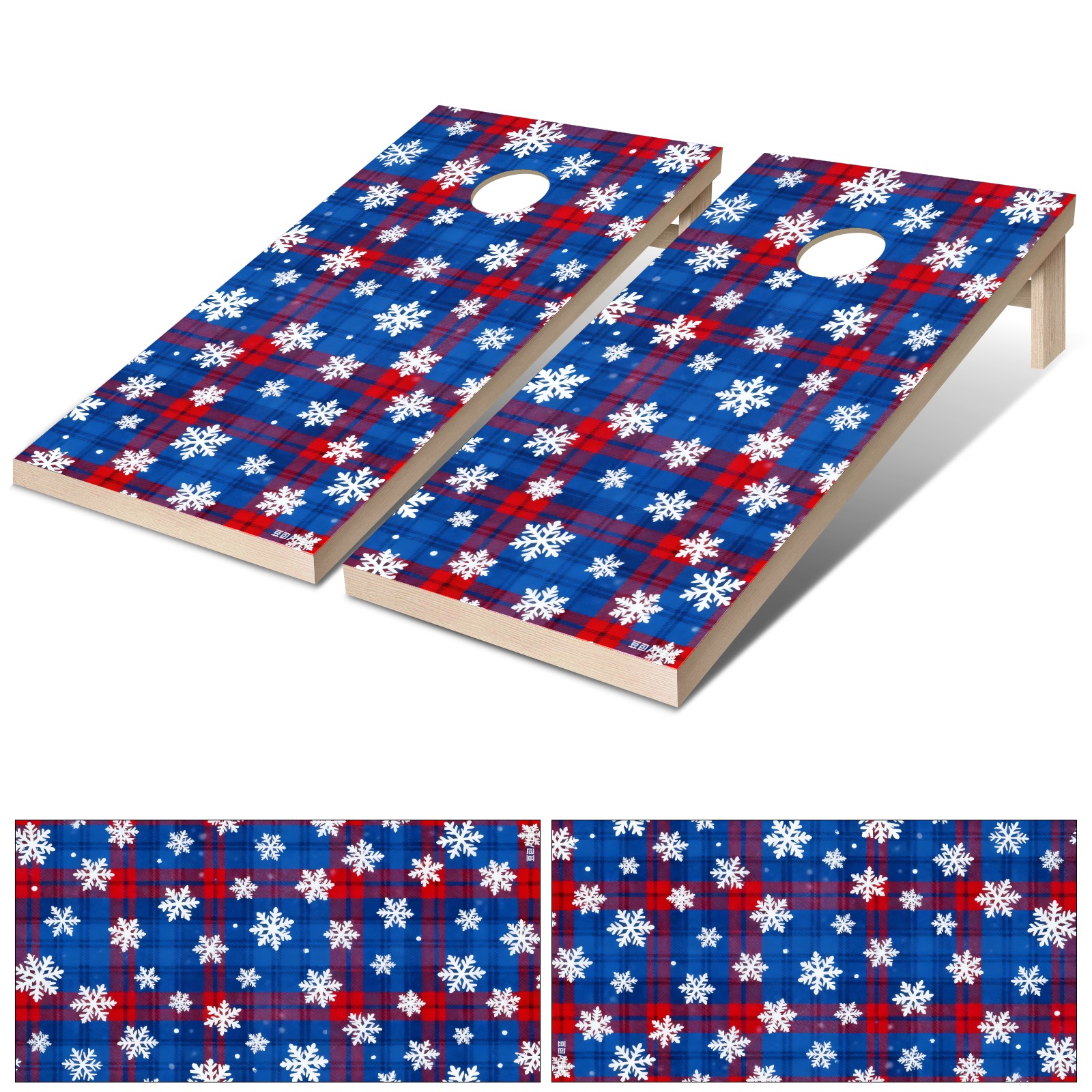 Portable 4x2 Cornhole Set with Two-piece Pack Boards - Cornhole Game Sticker Included - Yard Travel Outdoor Toss Board for Adults Outside Activities Dark Blue Snowflake