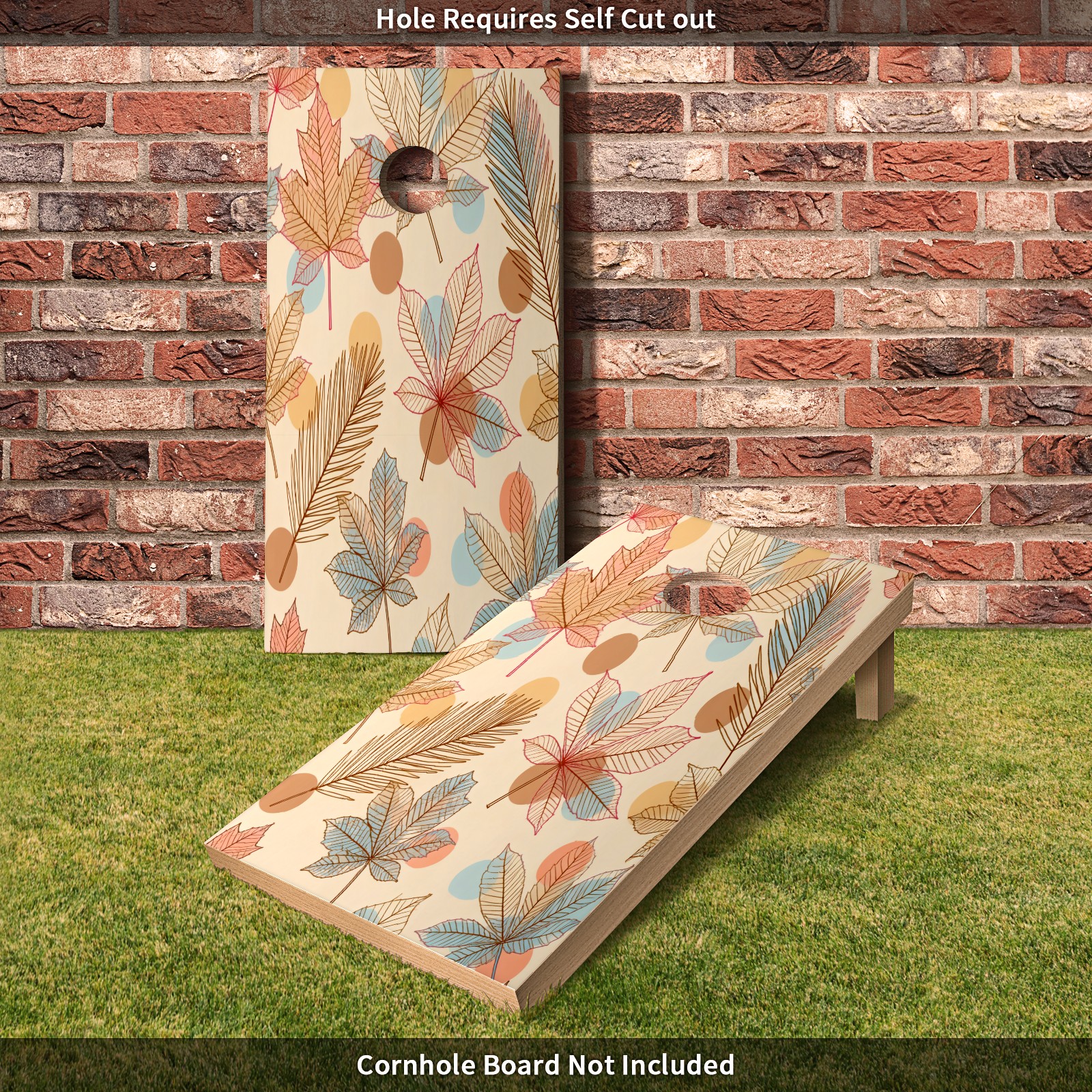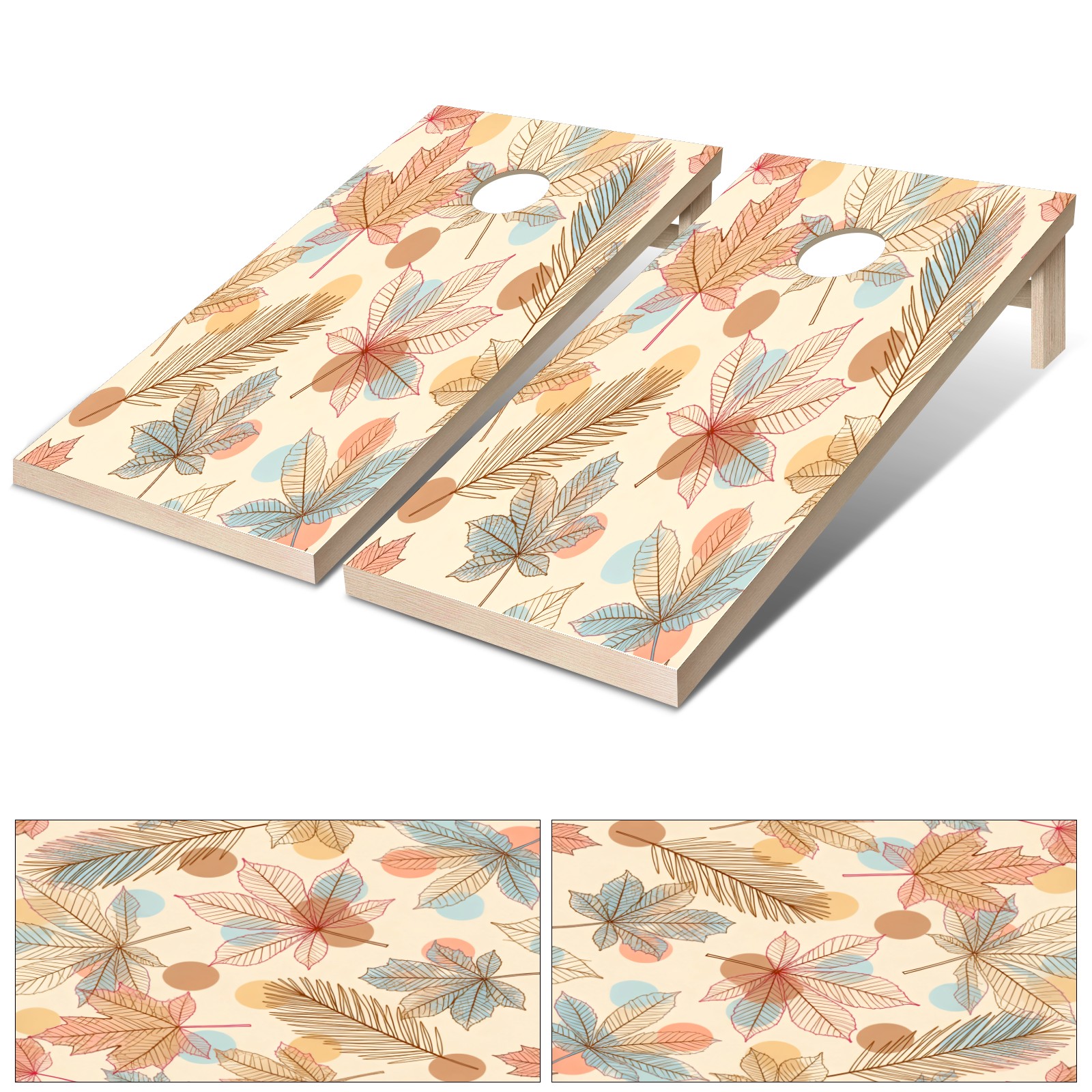 Portable 4x2 Cornhole Set with Two-piece Pack Boards - Cornhole Game Sticker Included - Yard Travel Outdoor Toss Board for Adults Outside Activities Brown Leaves