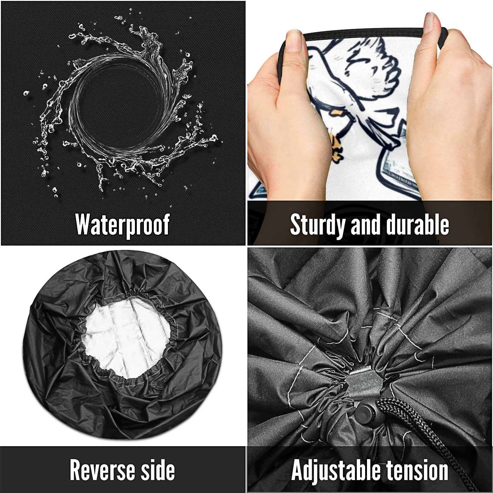 <p>Keep your spare tire protected and your vehicle looking sharp with our universal Tire Cover. Designed with a sleek single-sided print and classic black sides, this durable cover is made from high-quality polyester fabric that is fully waterproof. The adjustable nylon rope ensures a secure, custom fit for any tire, helping to maintain a clean and professional appearance for your vehicle.</p>