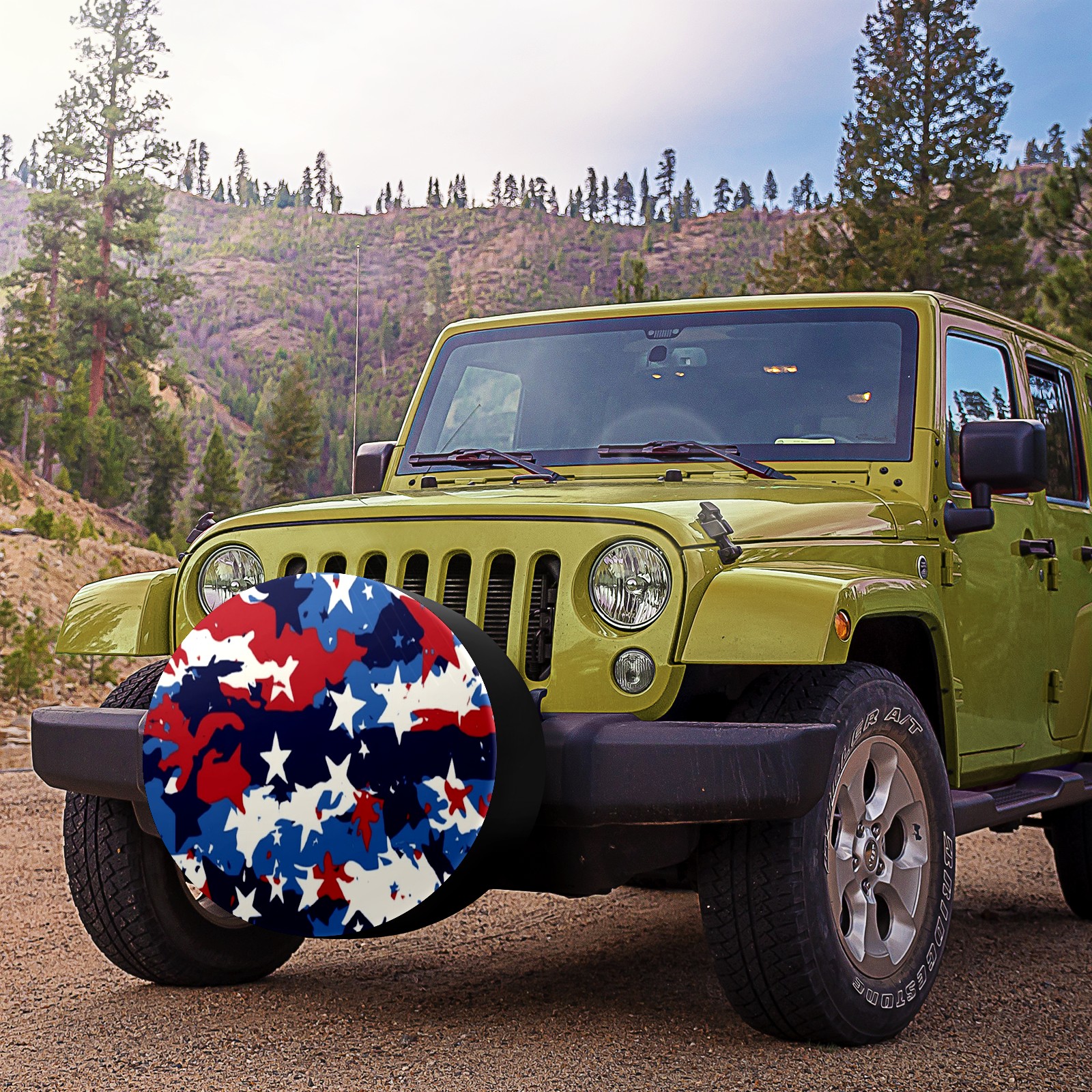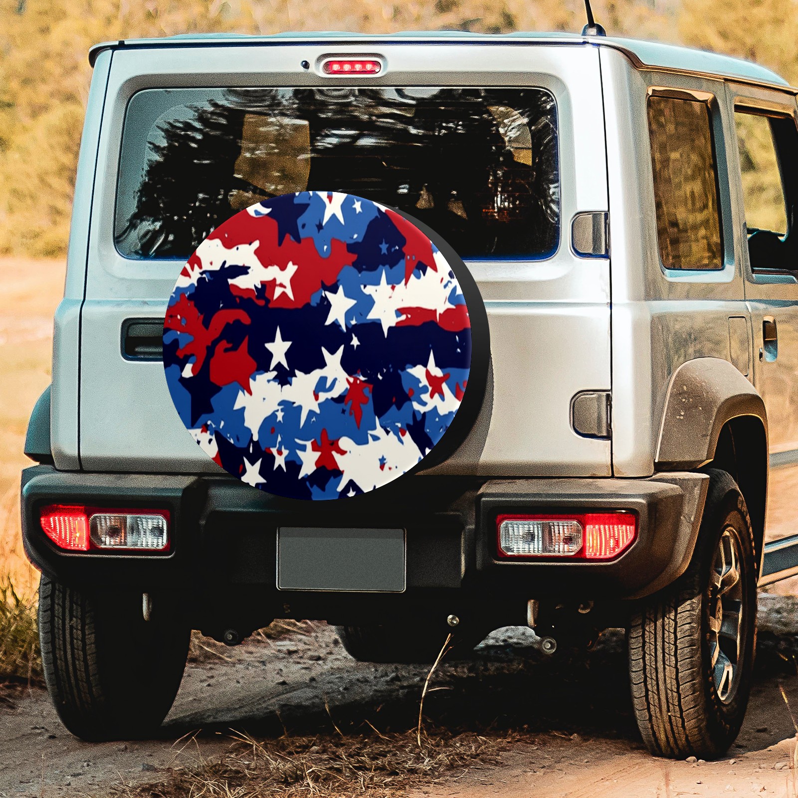 Red White And Blue Camouflage Spare Tire Cover, Waterproof Wheel Protector Universal Fits for Truck SUV RV Trailer Camper (14 Inch)