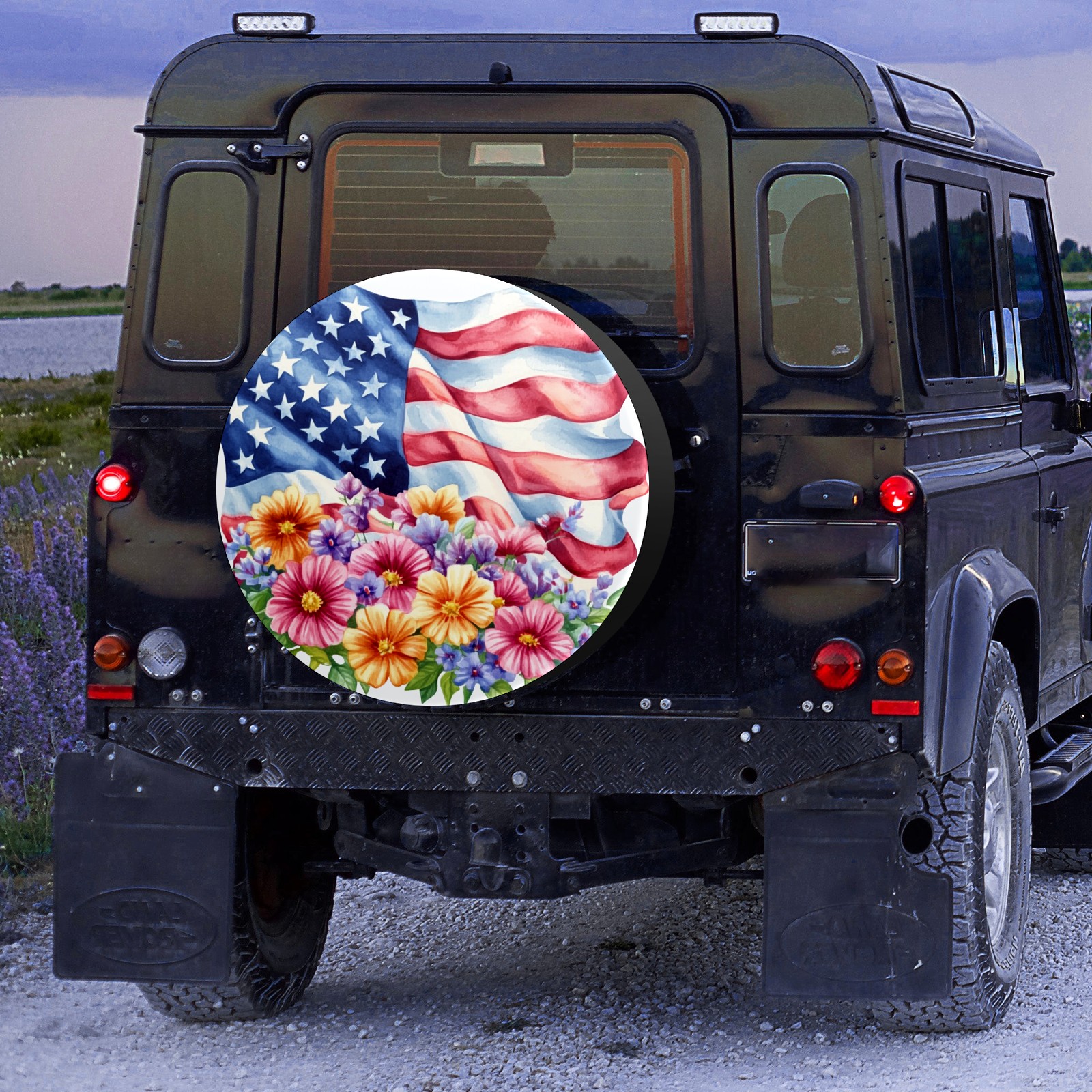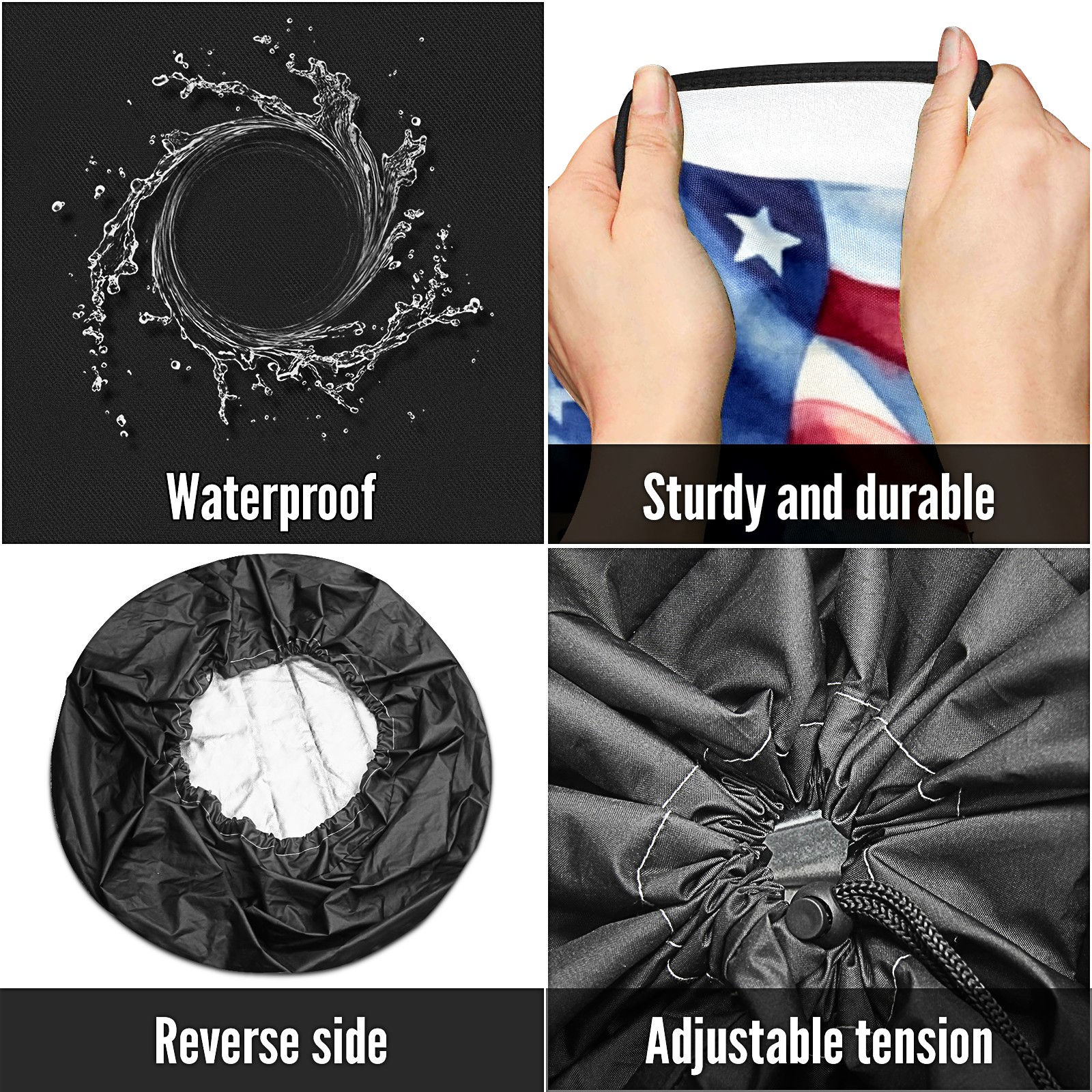 • <p>Keep your spare tire protected and your vehicle looking sharp with our universal Tire Cover. Designed with a sleek single-sided print and classic black sides, this durable cover is made from high-quality polyester fabric that is fully waterproof. The adjustable nylon rope ensures a secure, custom fit for any tire, helping to maintain a clean and professional appearance for your vehicle.</p>