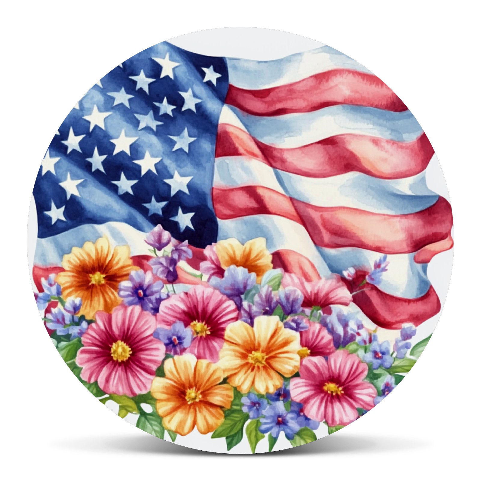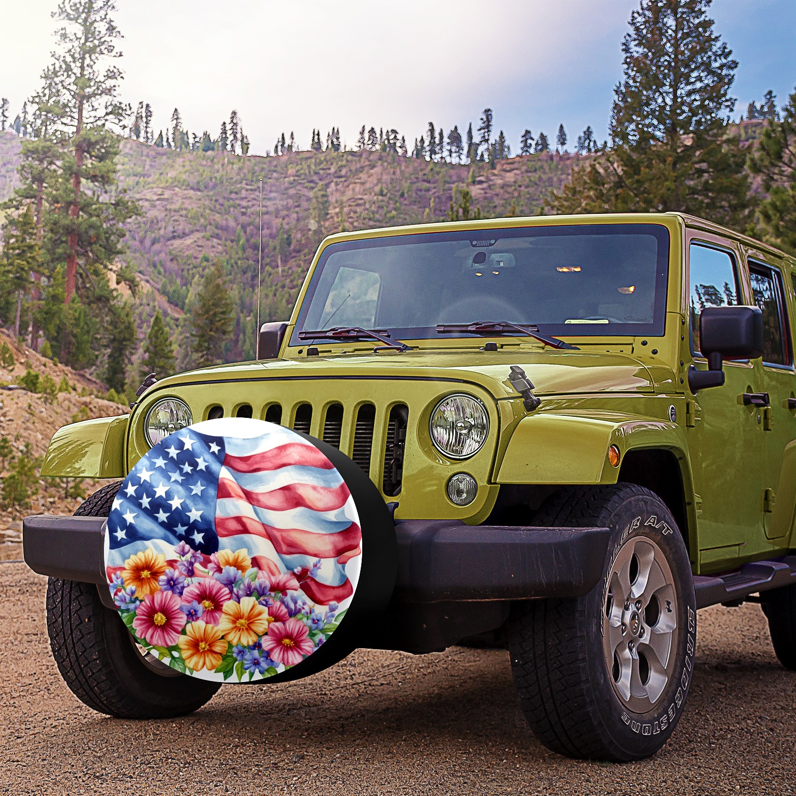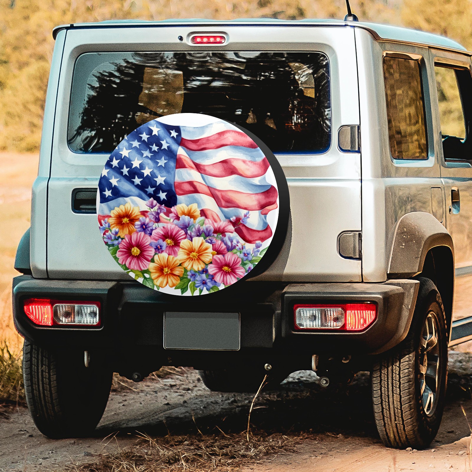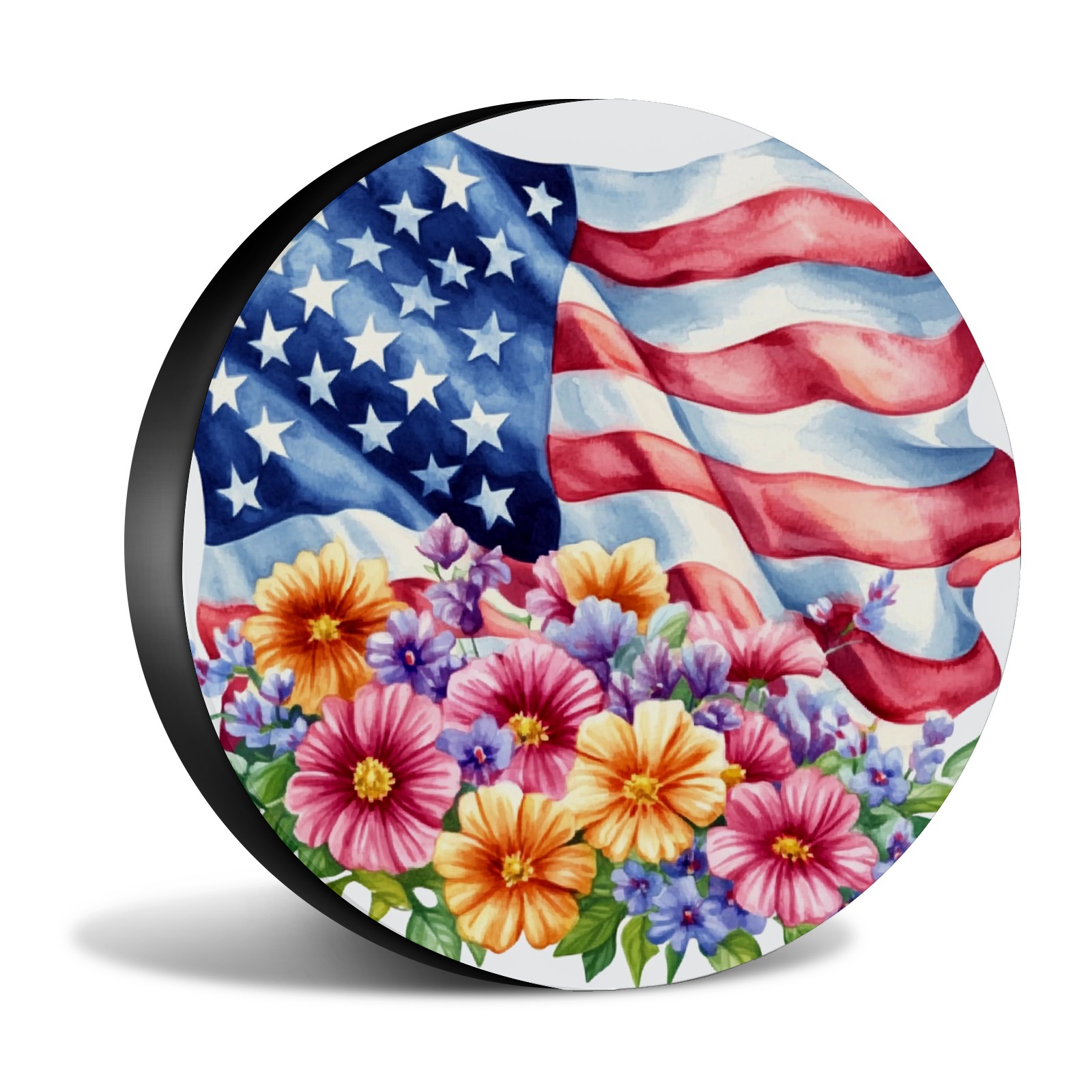 American Flag With Colorful Flowers Spare Tire Cover, Waterproof Wheel Protector Universal Fits for Truck SUV RV Trailer Camper (14 Inch)