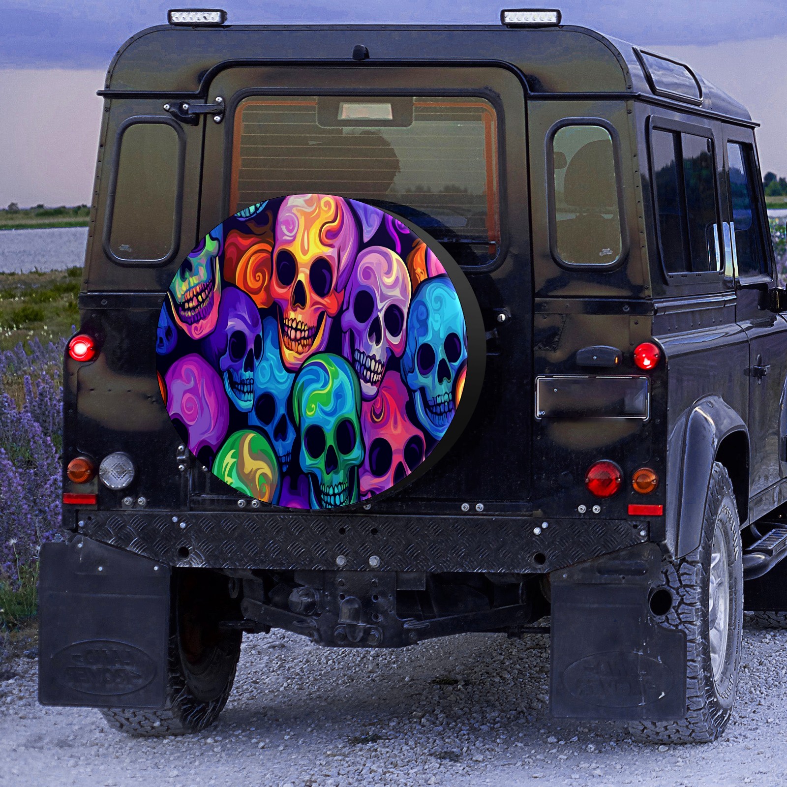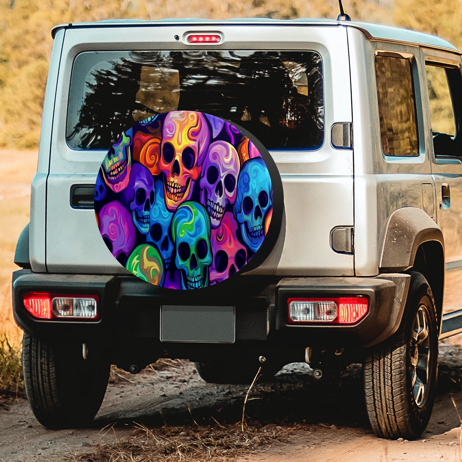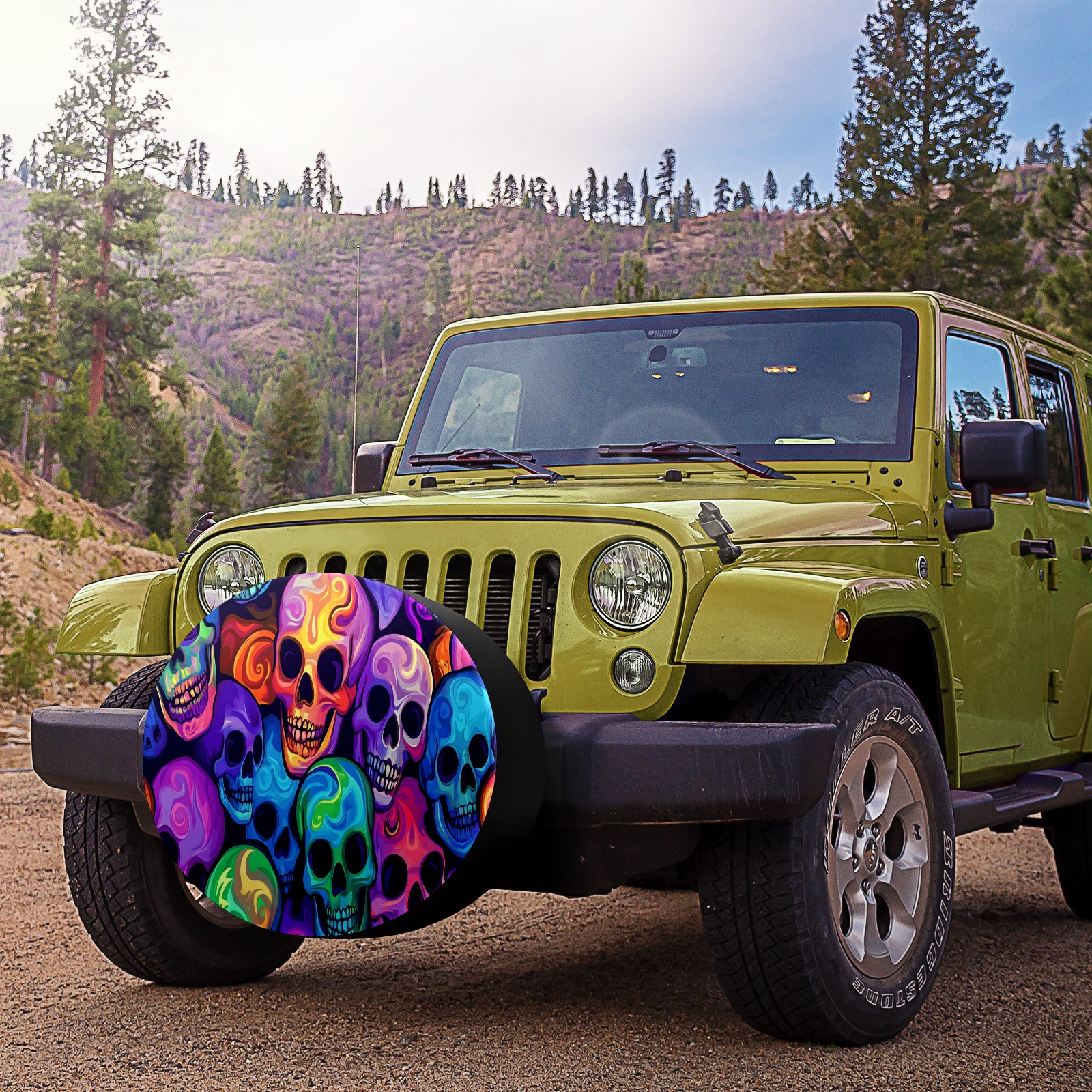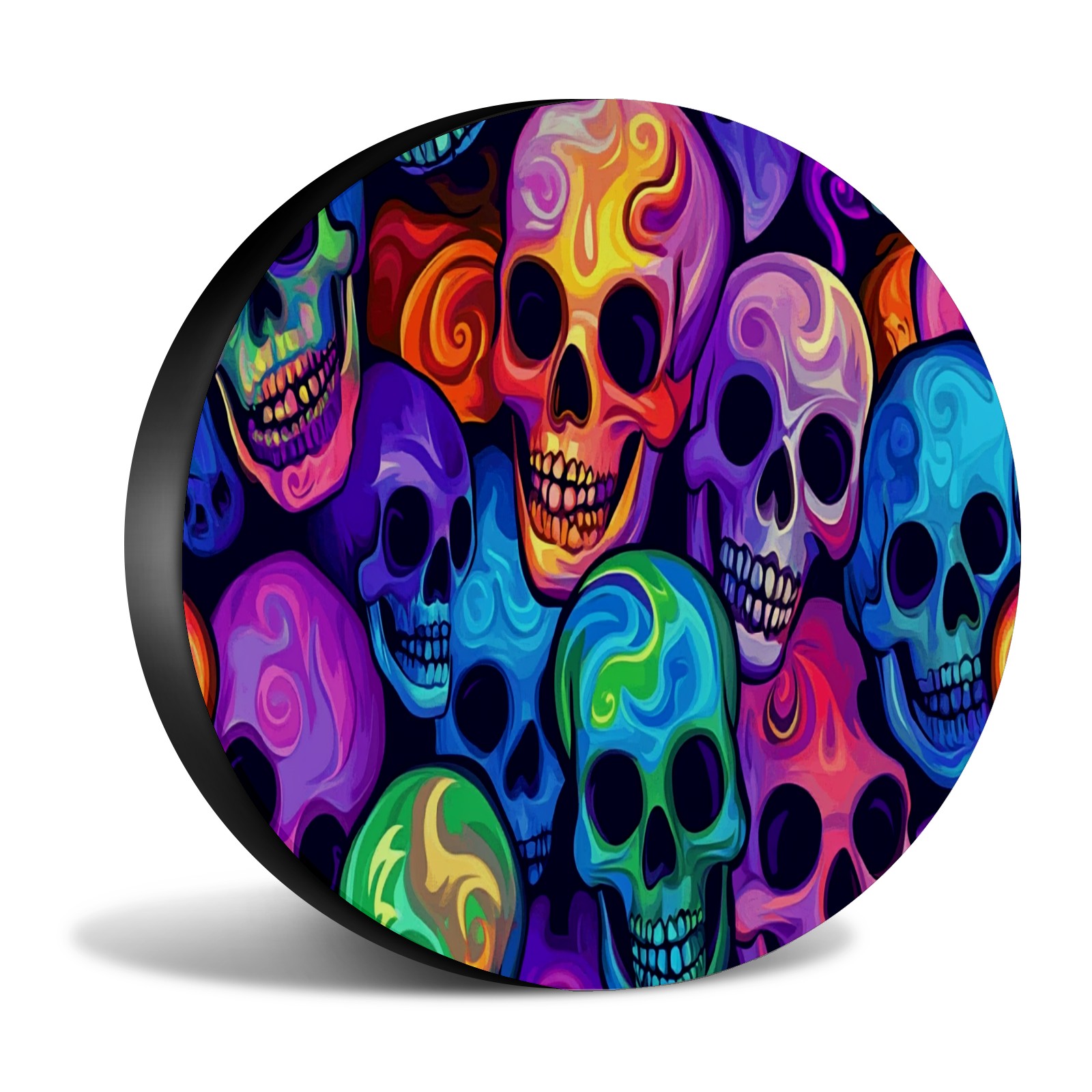 Colorful Skulls Spare Tire Cover, Waterproof Wheel Protector Universal Fits for Truck SUV RV Trailer Camper (14 Inch)