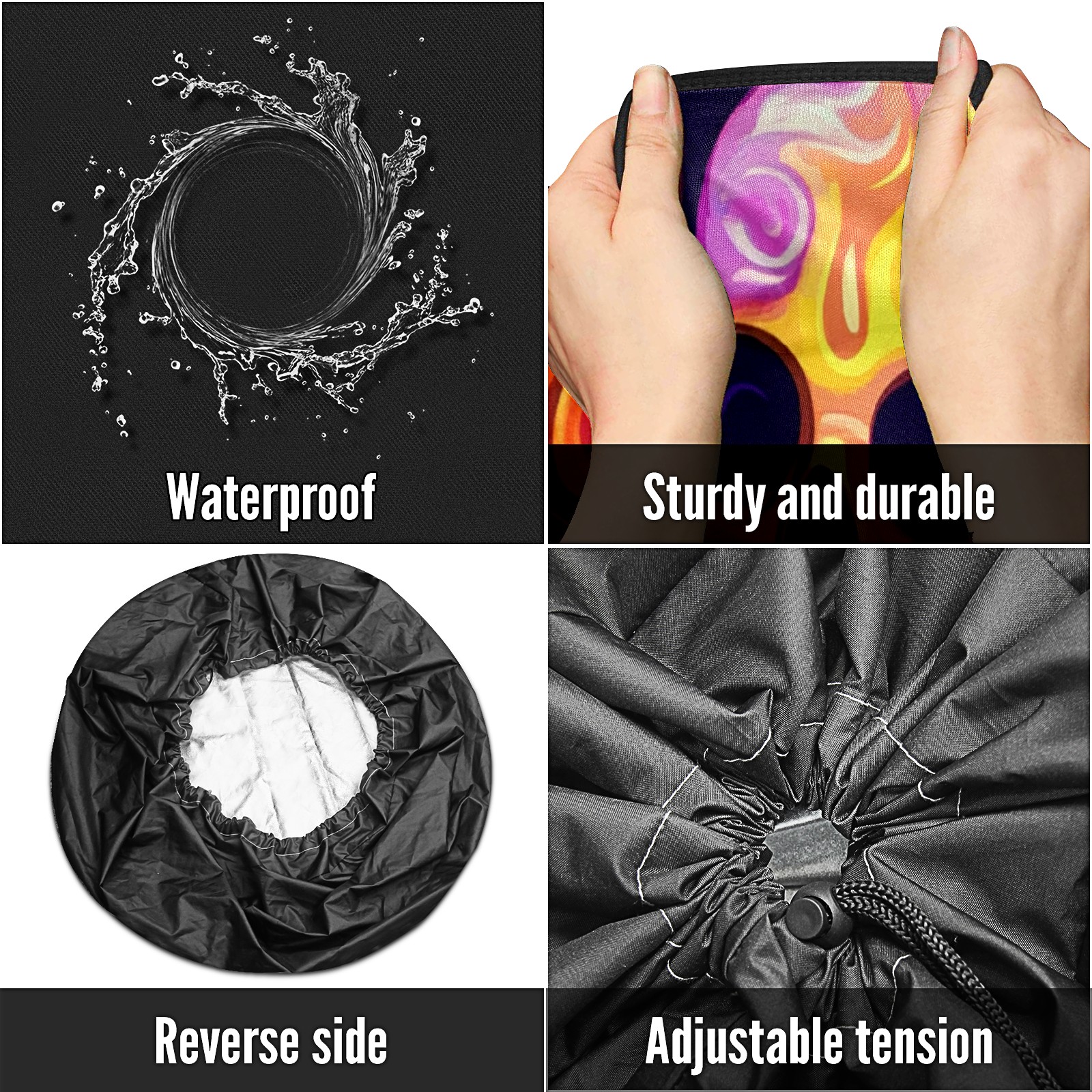• <p>Keep your spare tire protected and your vehicle looking sharp with our universal Tire Cover. Designed with a sleek single-sided print and classic black sides, this durable cover is made from high-quality polyester fabric that is fully waterproof. The adjustable nylon rope ensures a secure, custom fit for any tire, helping to maintain a clean and professional appearance for your vehicle.</p>
