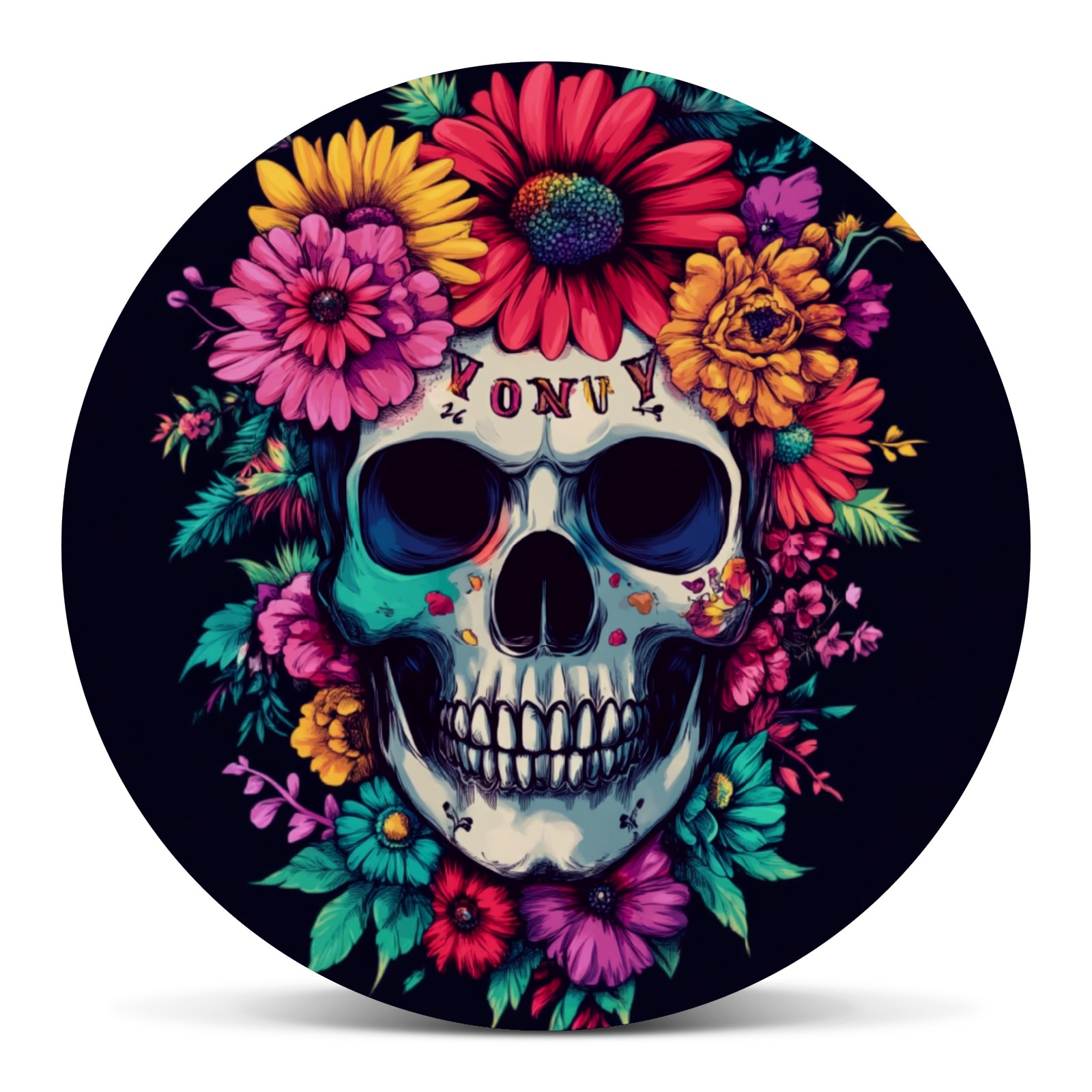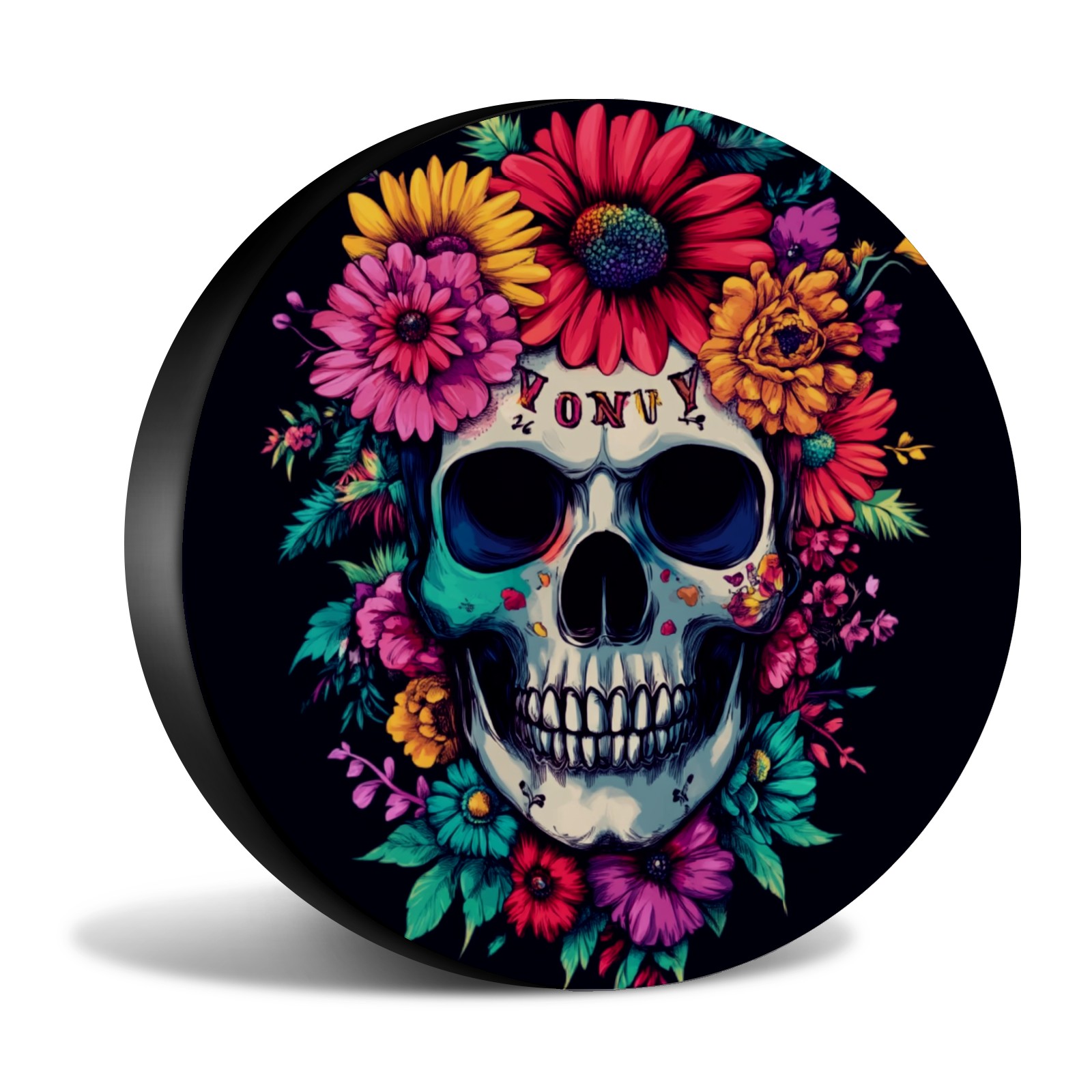 Colorful Skull With Flowers Spare Tire Cover, Waterproof Wheel Protector Universal Fits for Truck SUV RV Trailer Camper (14 Inch)