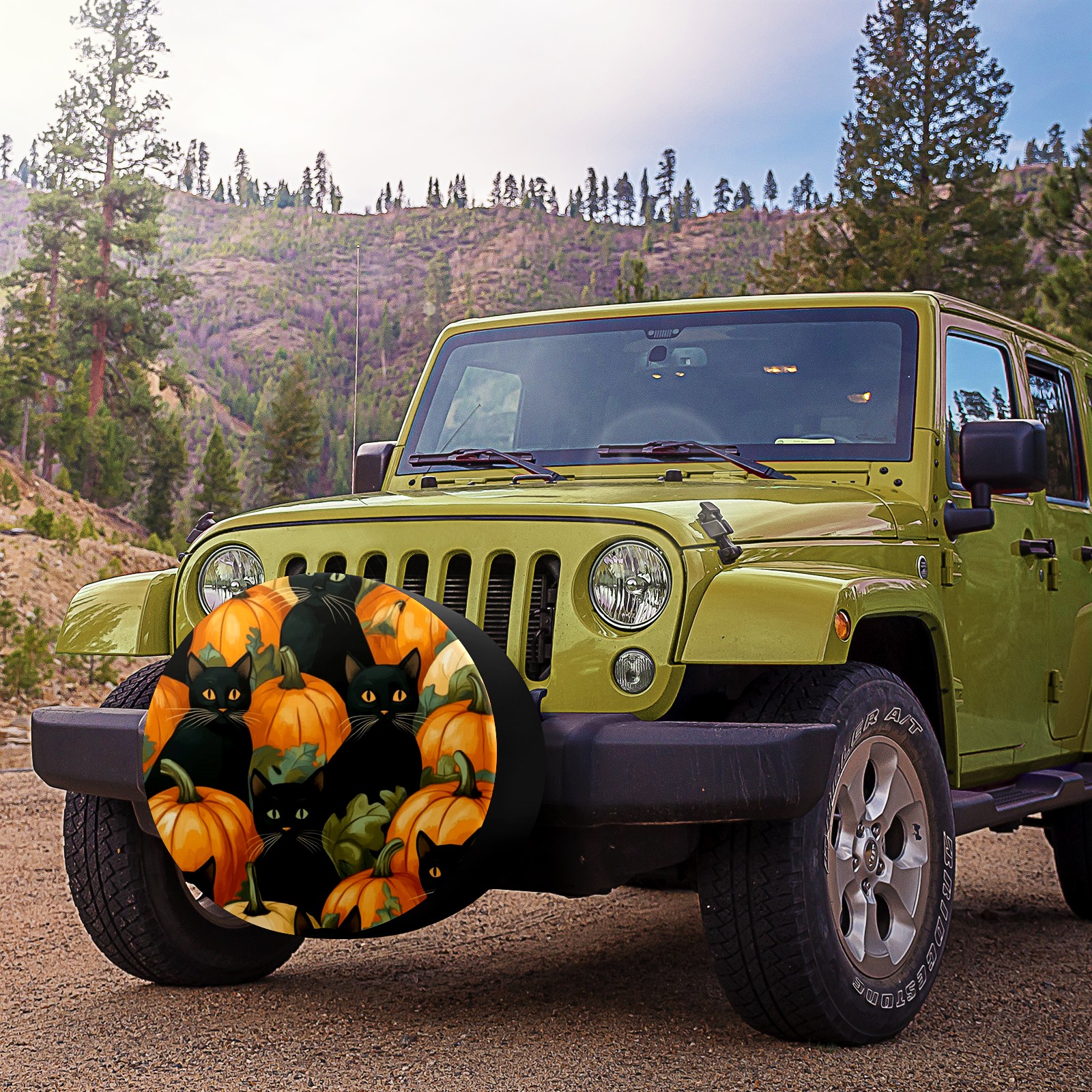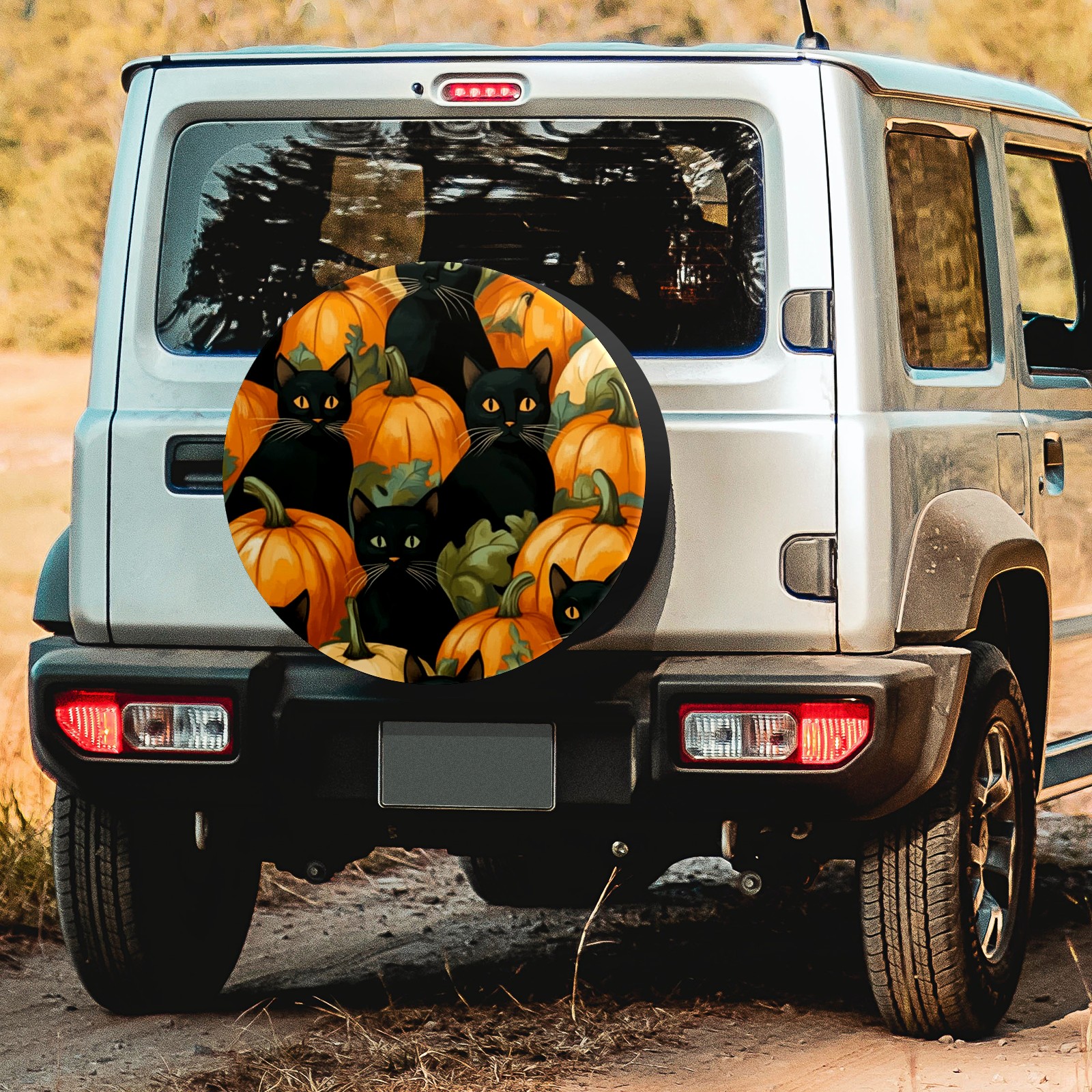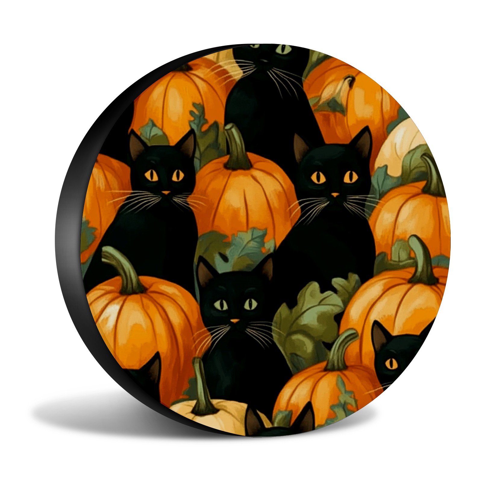 Black Cats And Pumpkins Spare Tire Cover, Waterproof Wheel Protector Universal Fits for Truck SUV RV Trailer Camper (14 Inch)