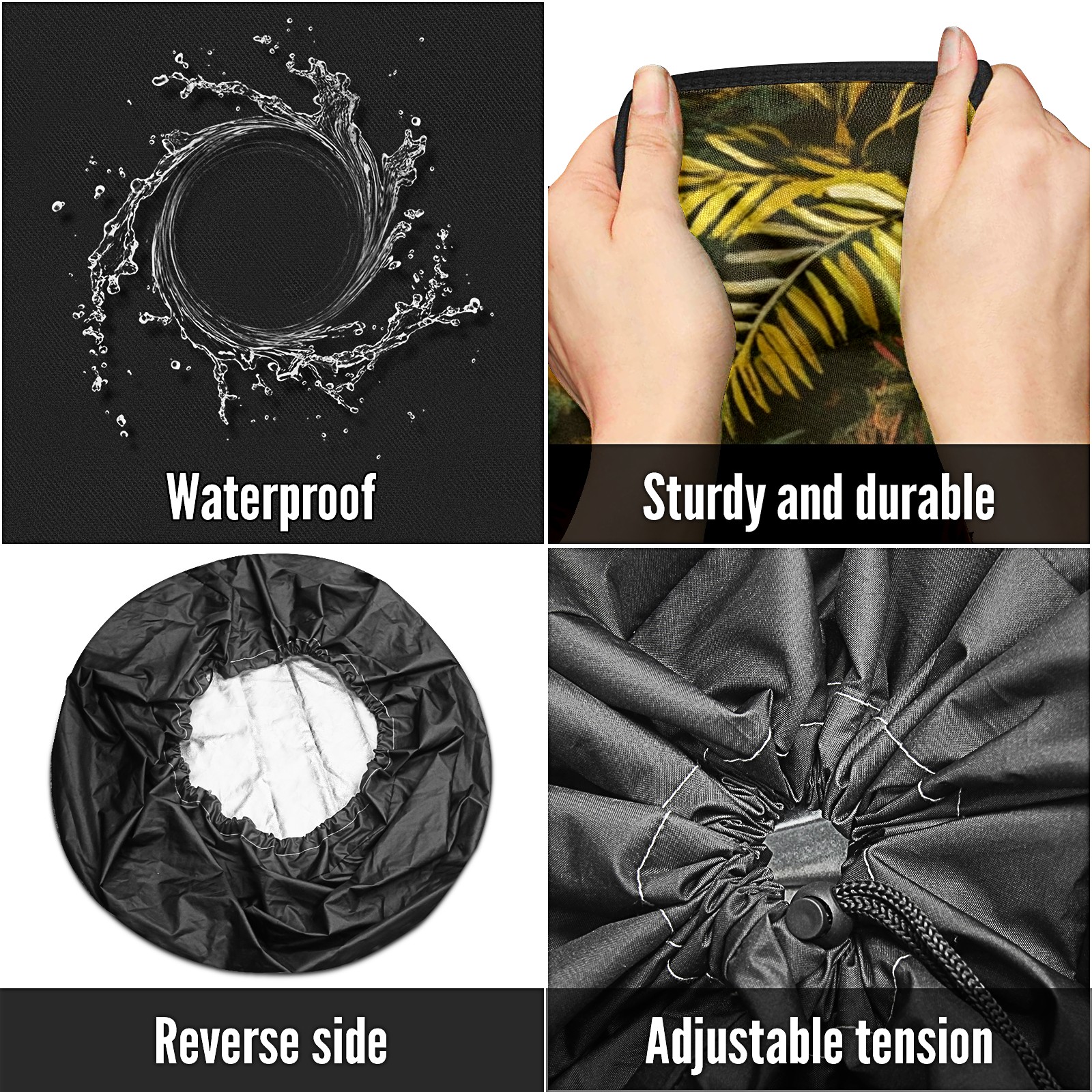 <p>Keep your spare tire protected and your vehicle looking sharp with our universal Tire Cover. Designed with a sleek single-sided print and classic black sides, this durable cover is made from high-quality polyester fabric that is fully waterproof. The adjustable nylon rope ensures a secure, custom fit for any tire, helping to maintain a clean and professional appearance for your vehicle.</p>