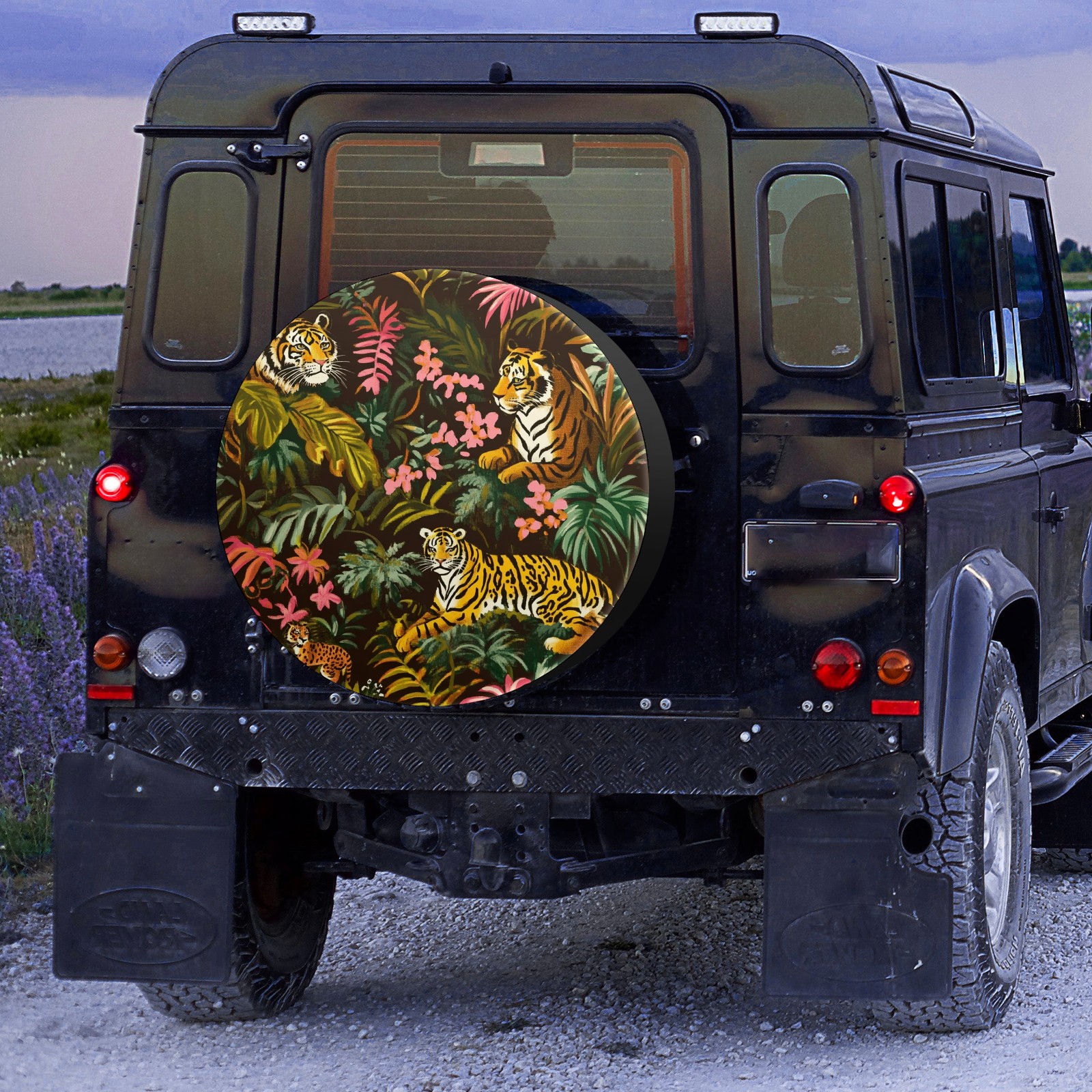 • <p>Keep your spare tire protected and your vehicle looking sharp with our universal Tire Cover. Designed with a sleek single-sided print and classic black sides, this durable cover is made from high-quality polyester fabric that is fully waterproof. The adjustable nylon rope ensures a secure, custom fit for any tire, helping to maintain a clean and professional appearance for your vehicle.</p>