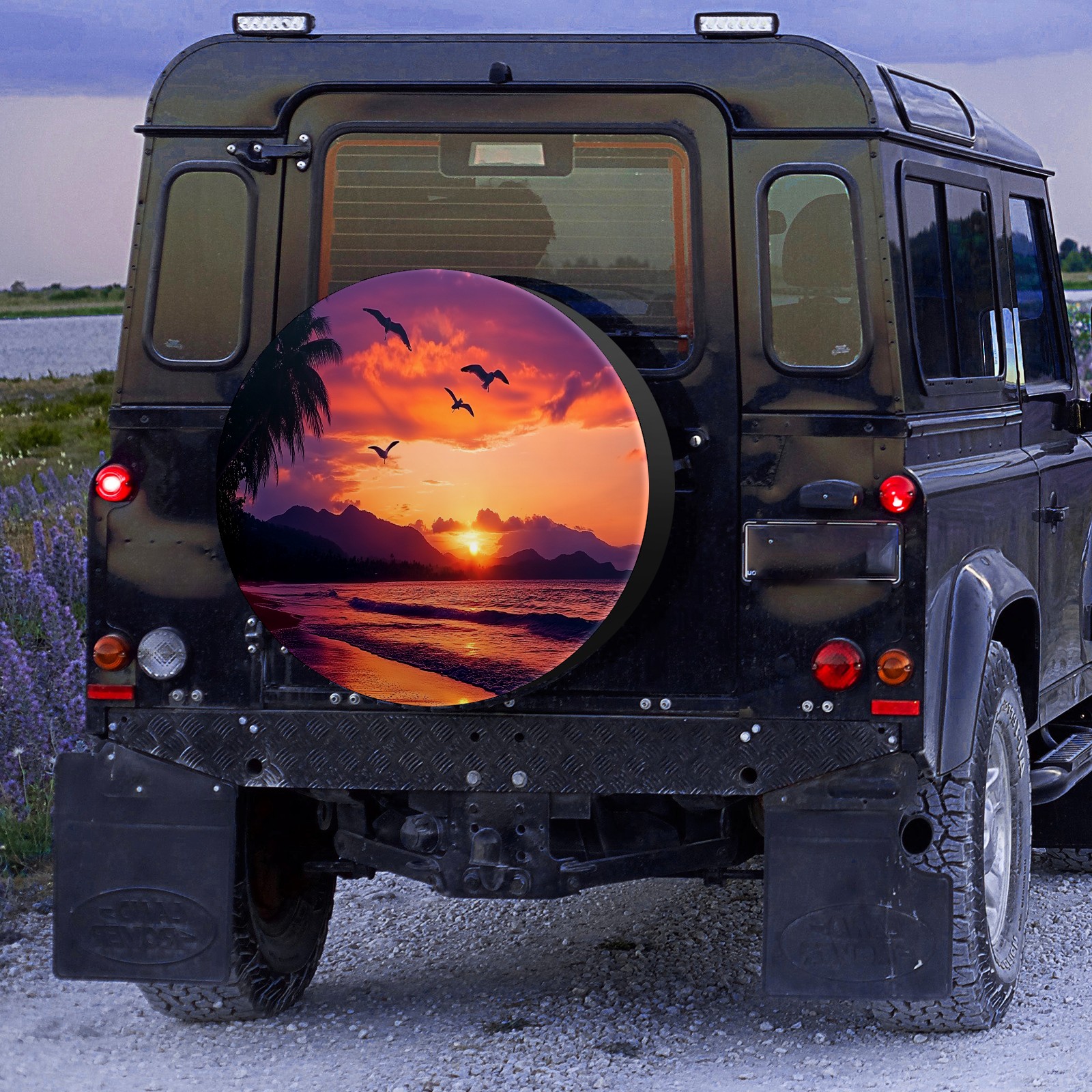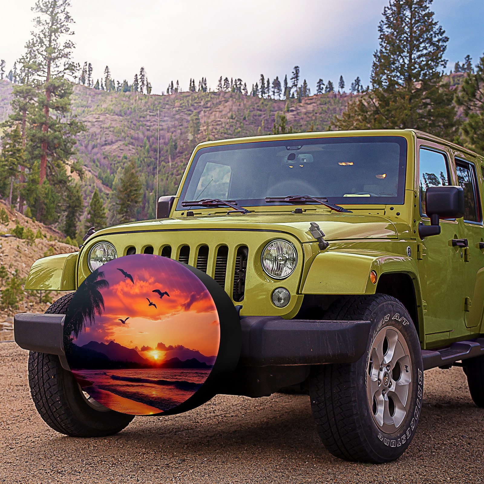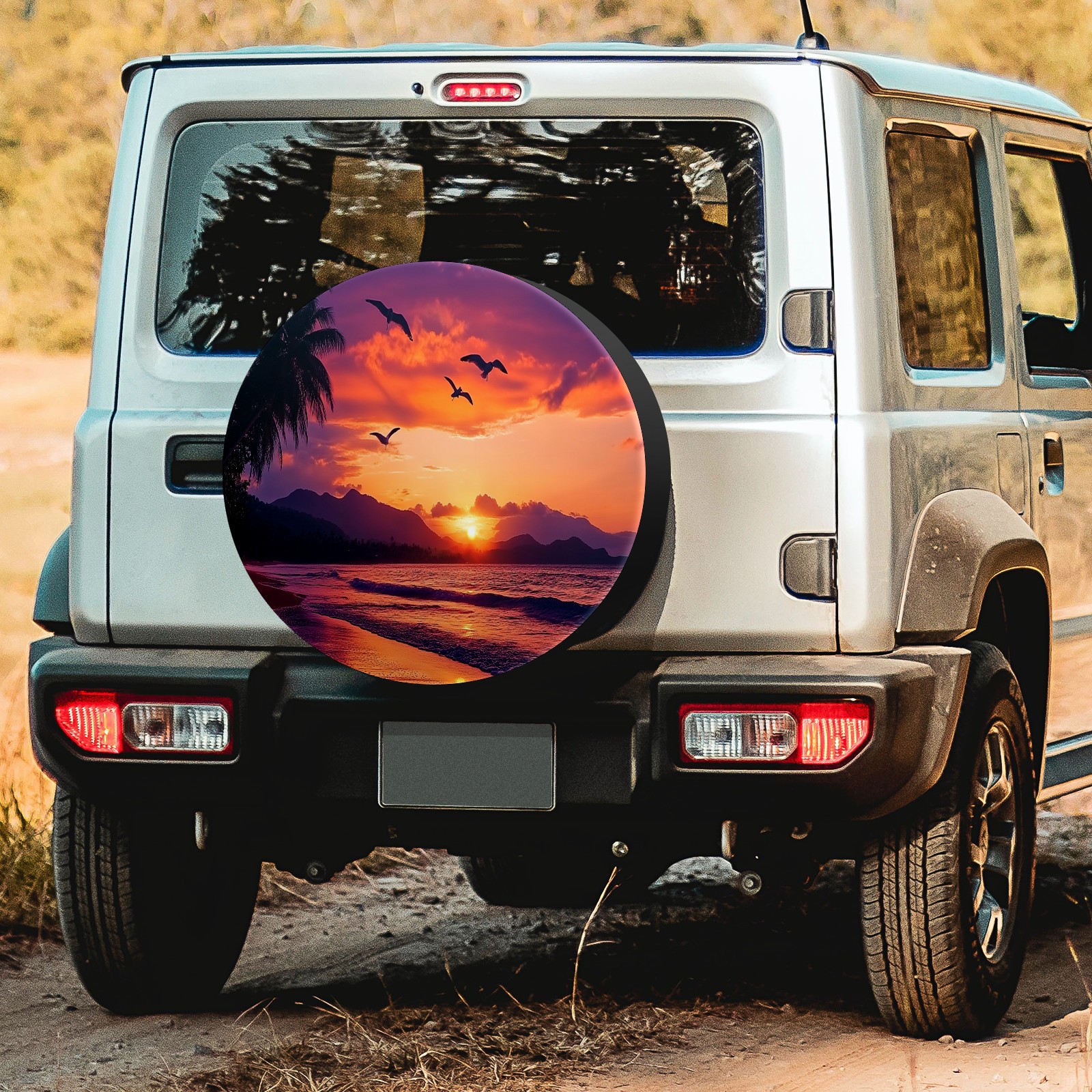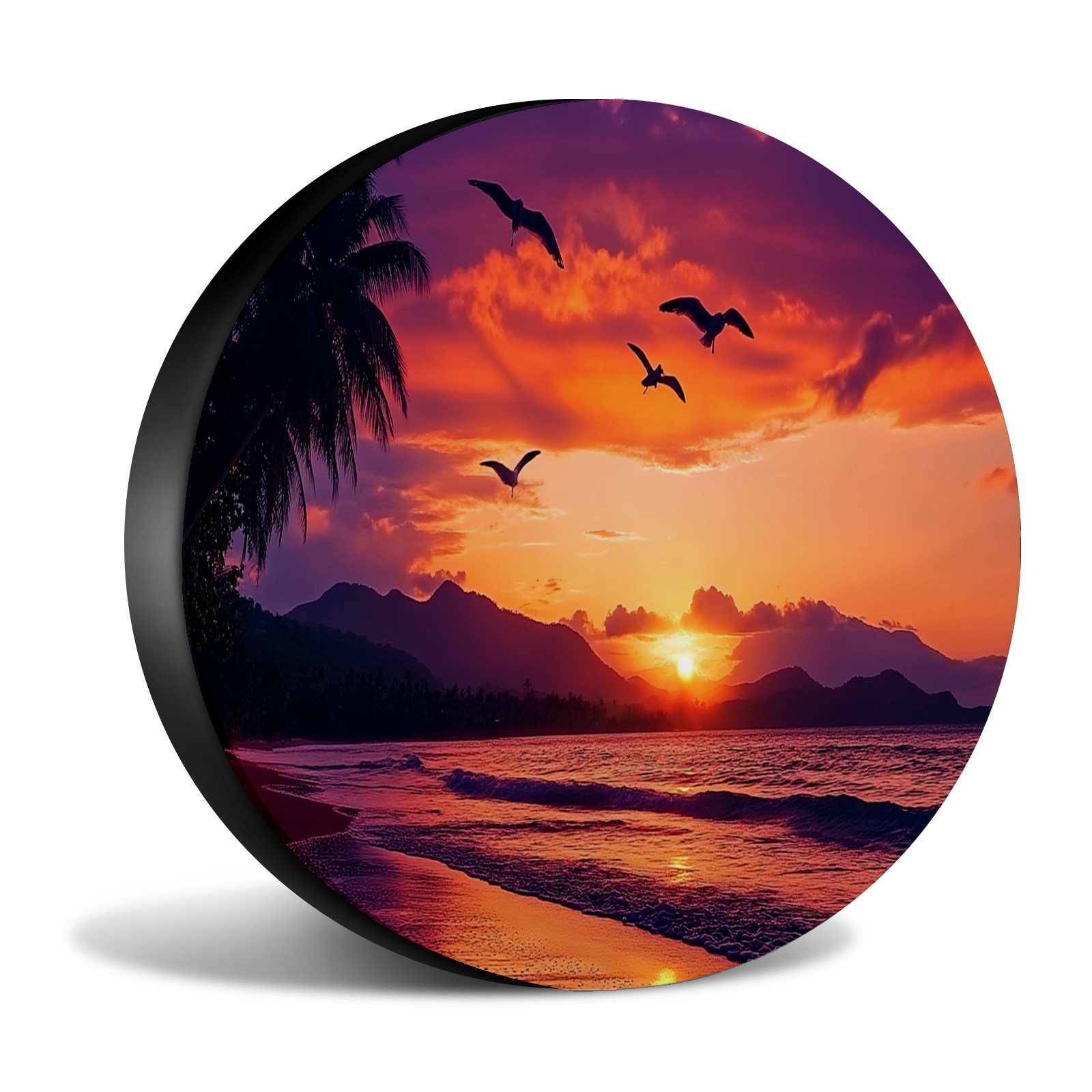 Sunset Seagulls Flying Spare Tire Cover, Waterproof Wheel Protector Universal Fits for Truck SUV RV Trailer Camper (14 Inch)