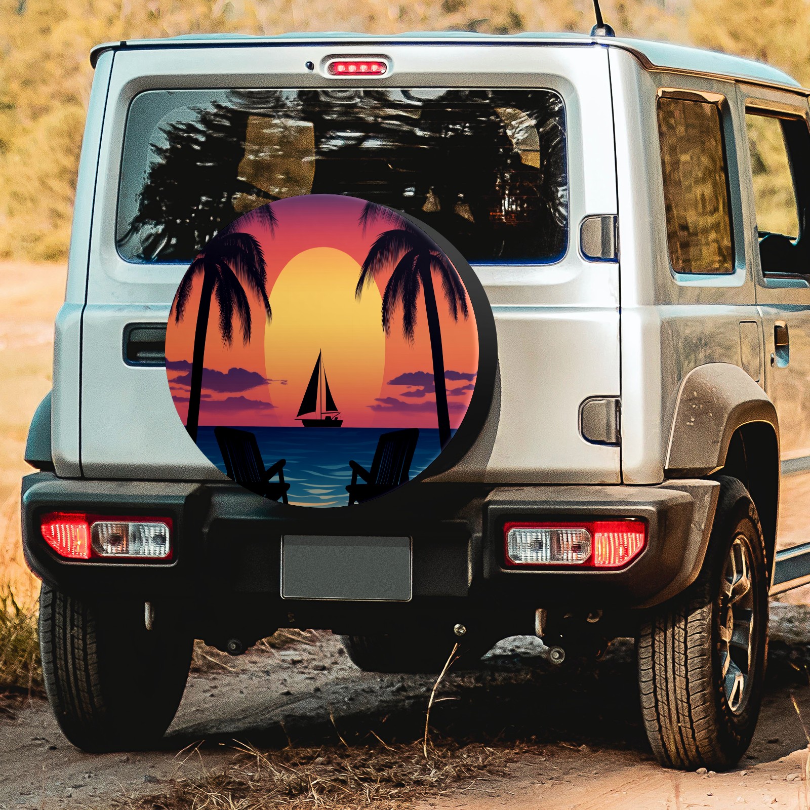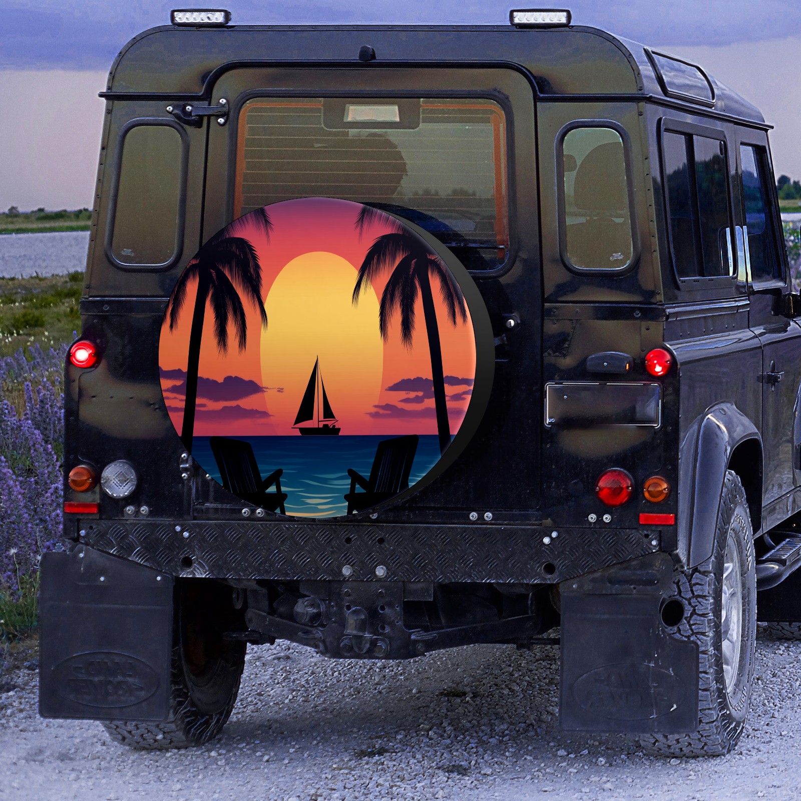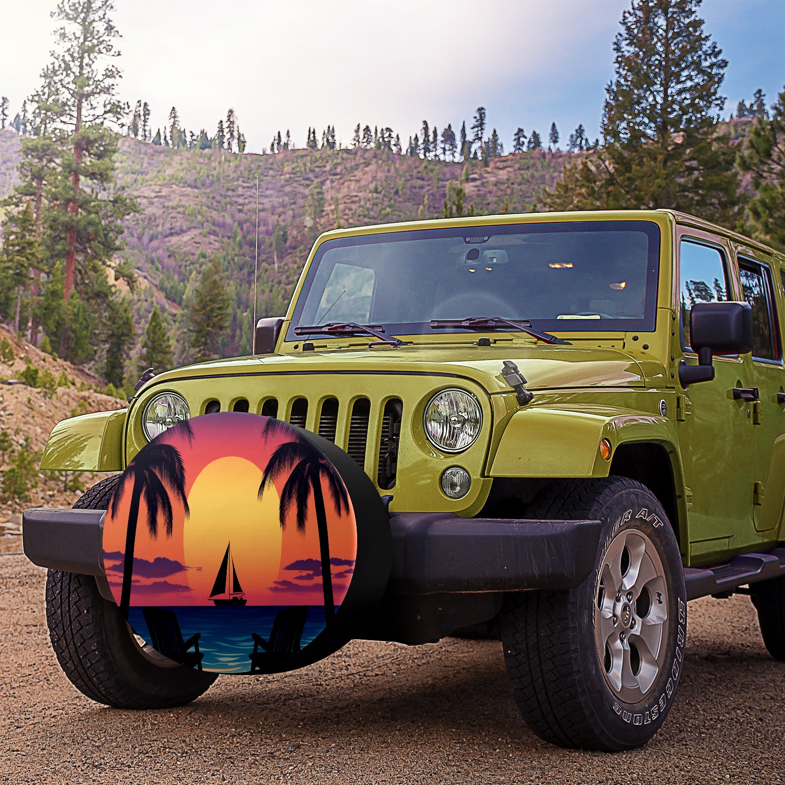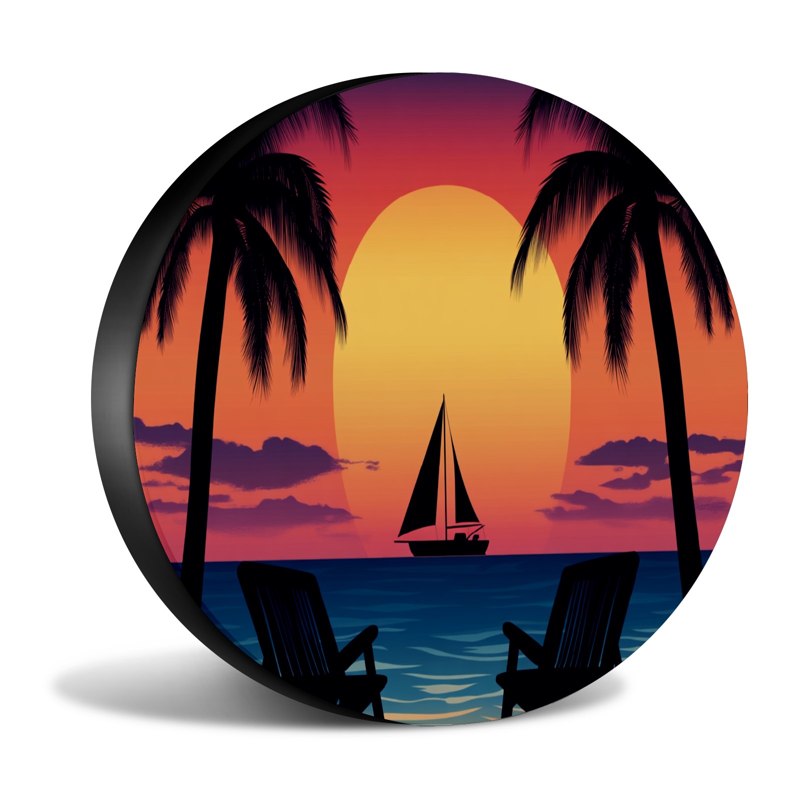 Orange Sunset Sailboat Spare Tire Cover, Waterproof Wheel Protector Universal Fits for Truck SUV RV Trailer Camper (14 Inch)