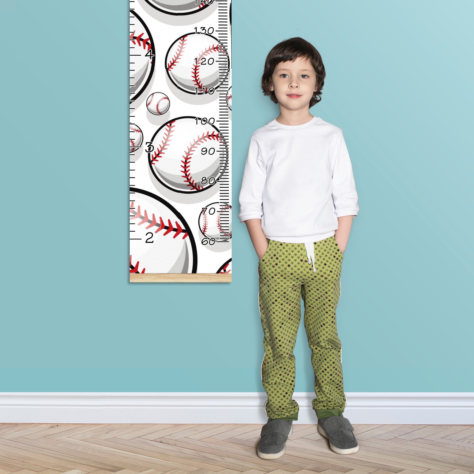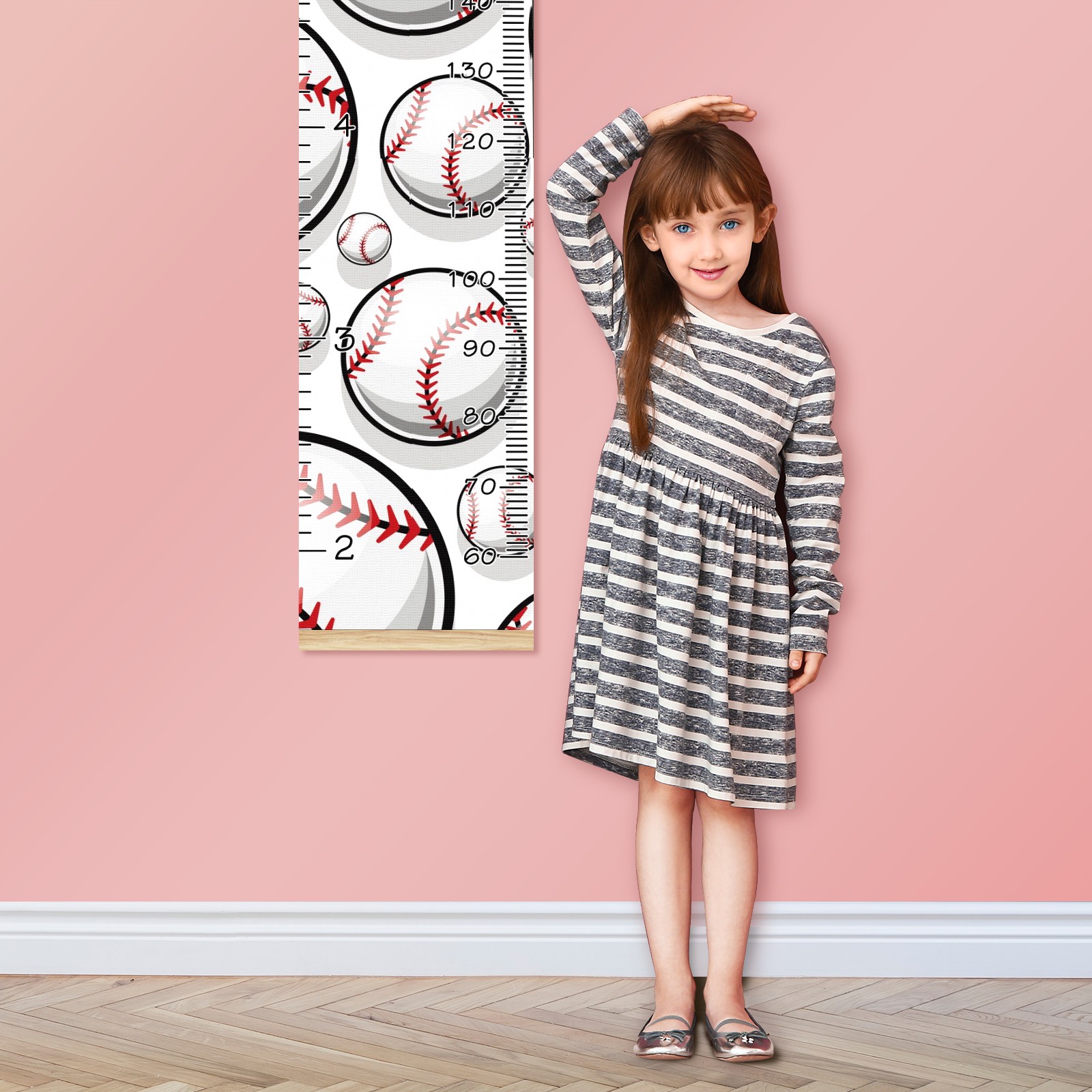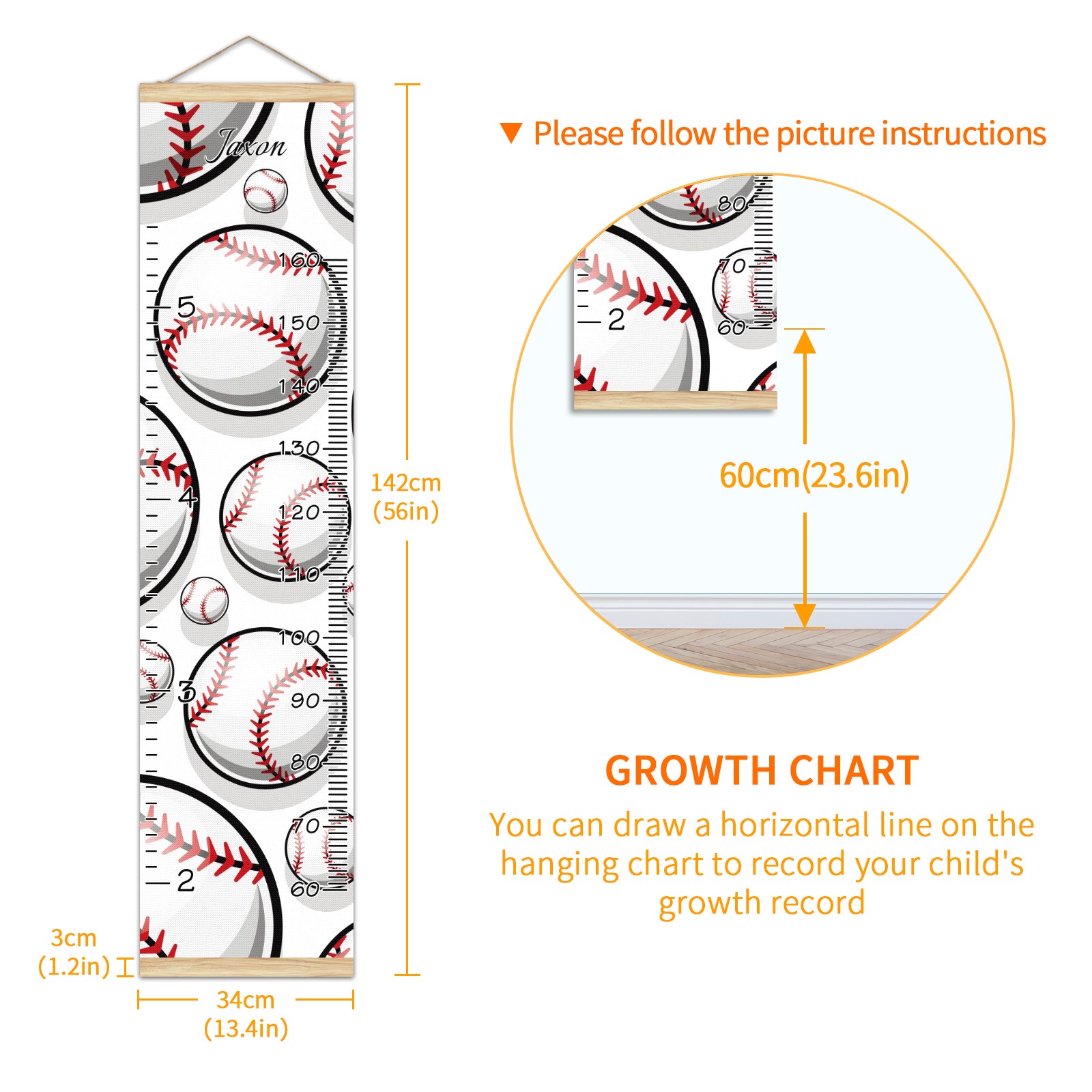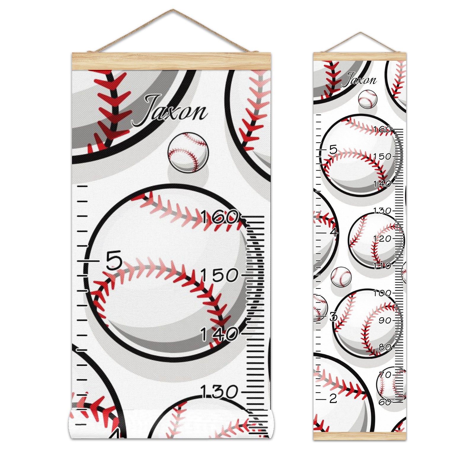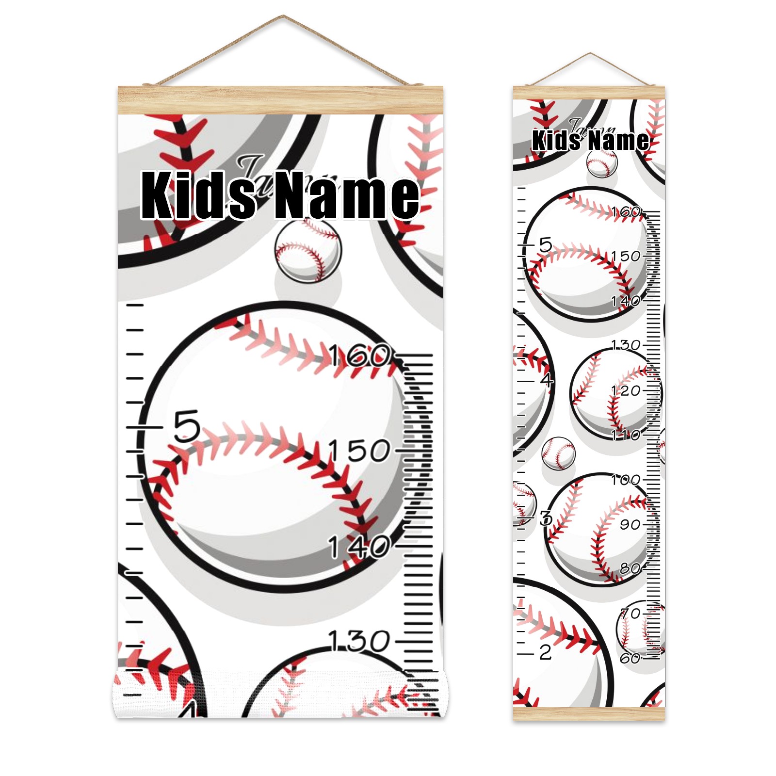 Personalized Kids Name Growth Chart Ruler for Wall Wood Frame Canvas Height Measure Chart 13.4x56 in Hanging Growth Chart Baseball Sport Pattern11.19 Boys Girls Room Decor