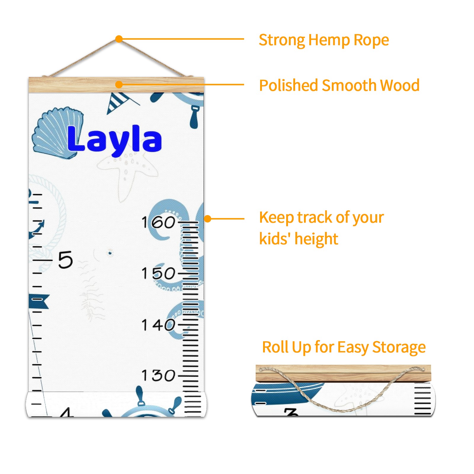 <p><b>Features:</b></p> <p>Rope for Hanging</p> <p>Material: Linen + Wood</p> <p>Dimensions: 13.4x56 inches</p> <p>Package Included: 1 * Baby Growth Chart</p> <p><b>Baby height growth chart can be used anywhere</b></p> <p>Ideal for kids nursery decoration, kids bedroom, interior walls or windows, playroom, living room, homedecoration.Add name and make the growth chart special!</p> <p><b>Easy to fold and carry</b></p> <p>With rope at the top of the growth chart, it is easy to install and remove.You can fold it and unfold any time any where.</p> <p><b>Perfect Gift Idea for Kids</b></p> <p>Environmental and non-toxic for kids use, it must be a perfect gift for baby, kids, girls, and boys.This is a best choice for your friend who have kids or baby as a popular gift.</p> <p><b>Easy to read</b></p> <p>Measurement accrate with 2 scales, Centimeters and feet. The letters are big enough, very easy to read.</p> <p><b>60cm(23.6inch) Over Ground Design</b></p> <p>Not only can protect from dust and other damage, but also will not interfere in floor cleaning.</p>