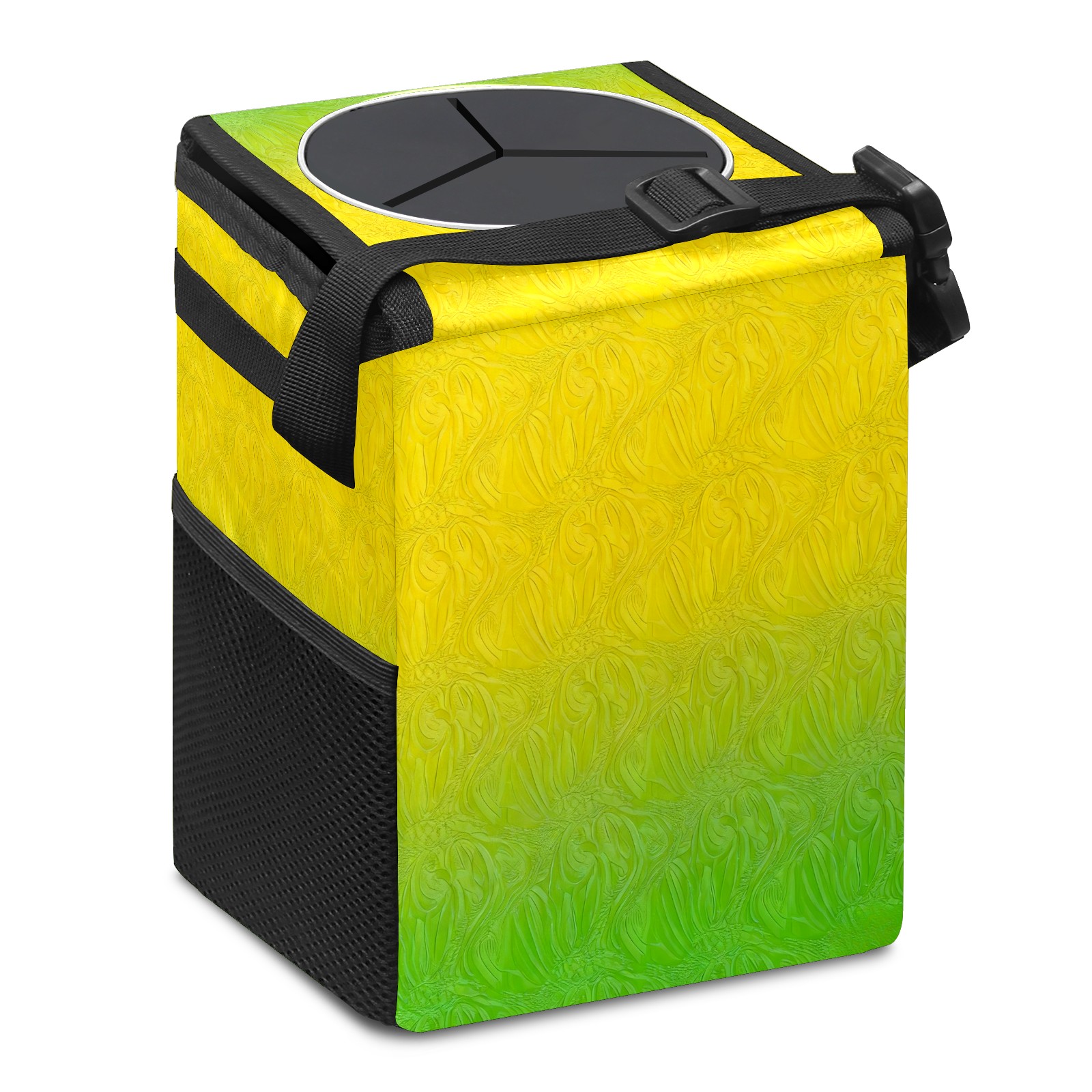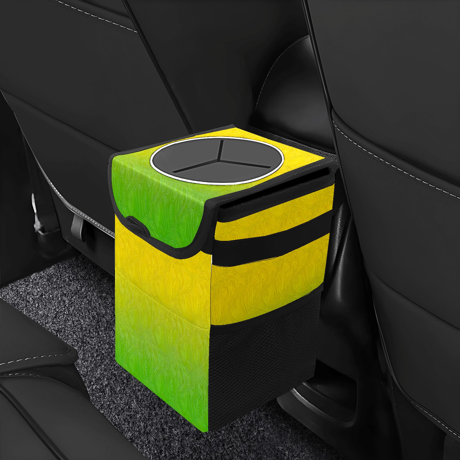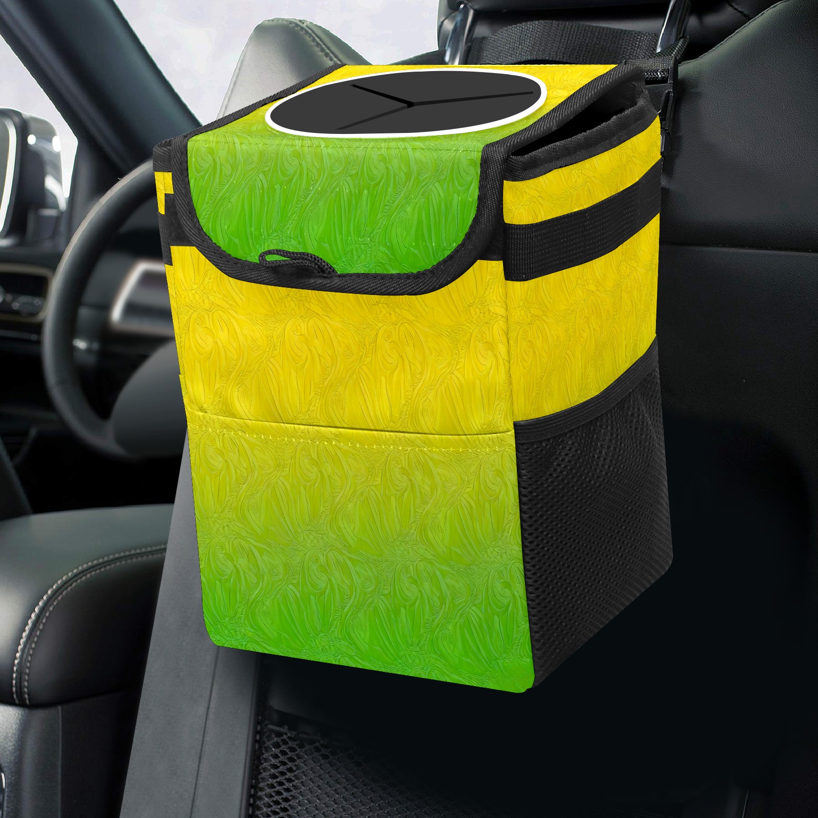 Car Trash Can with Lid & Multiple Pockets ,Foldable Vehicle Garbage Bin Waterproof & Leak Proof Automotive Garbage Cans Car Accessories for Women Men Road Trip Essentials Yellow Green Gradient