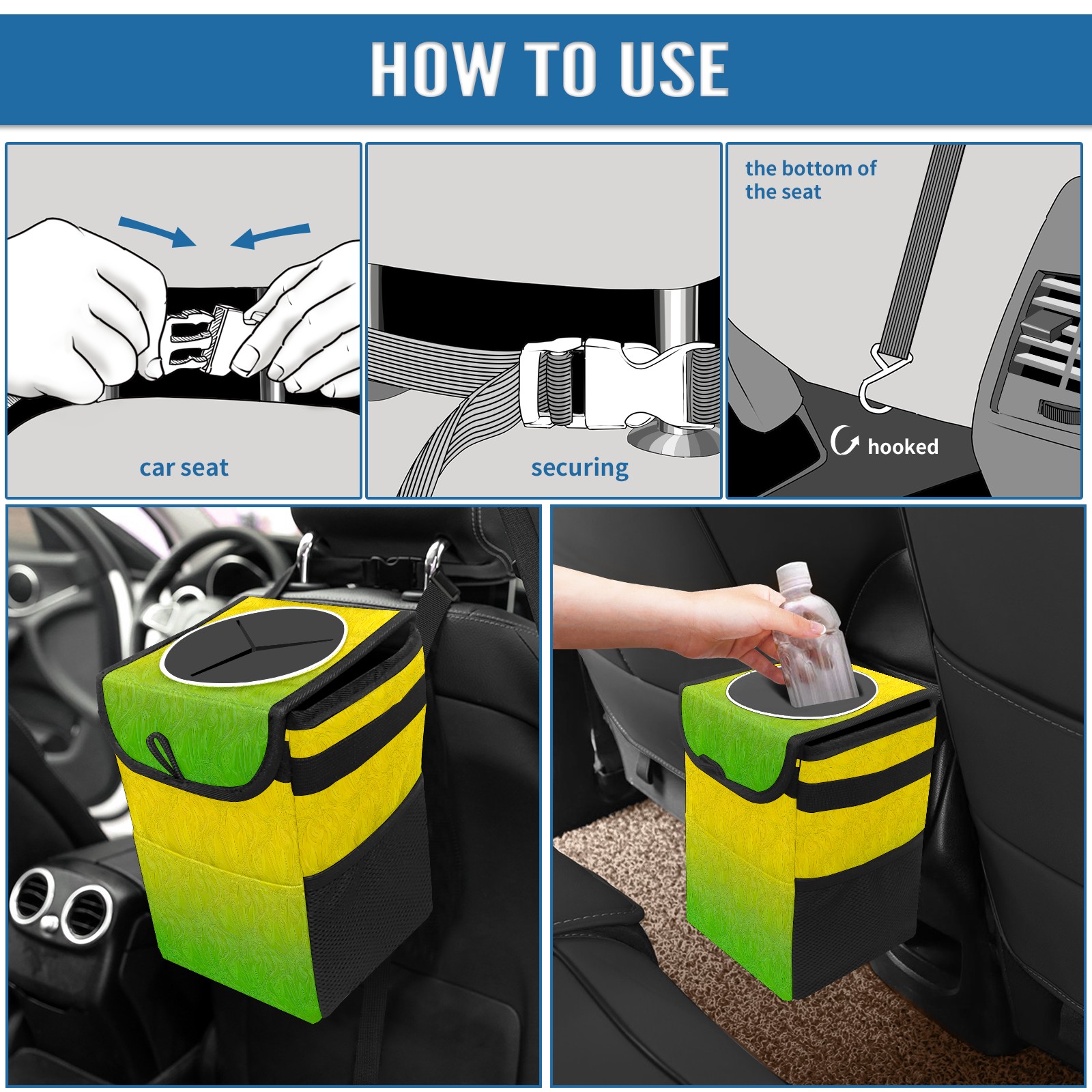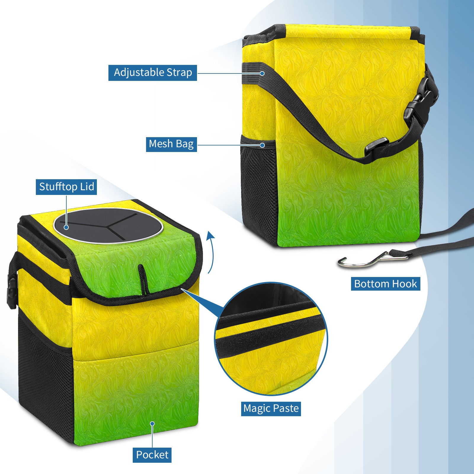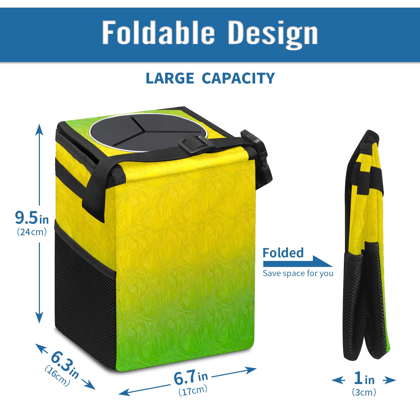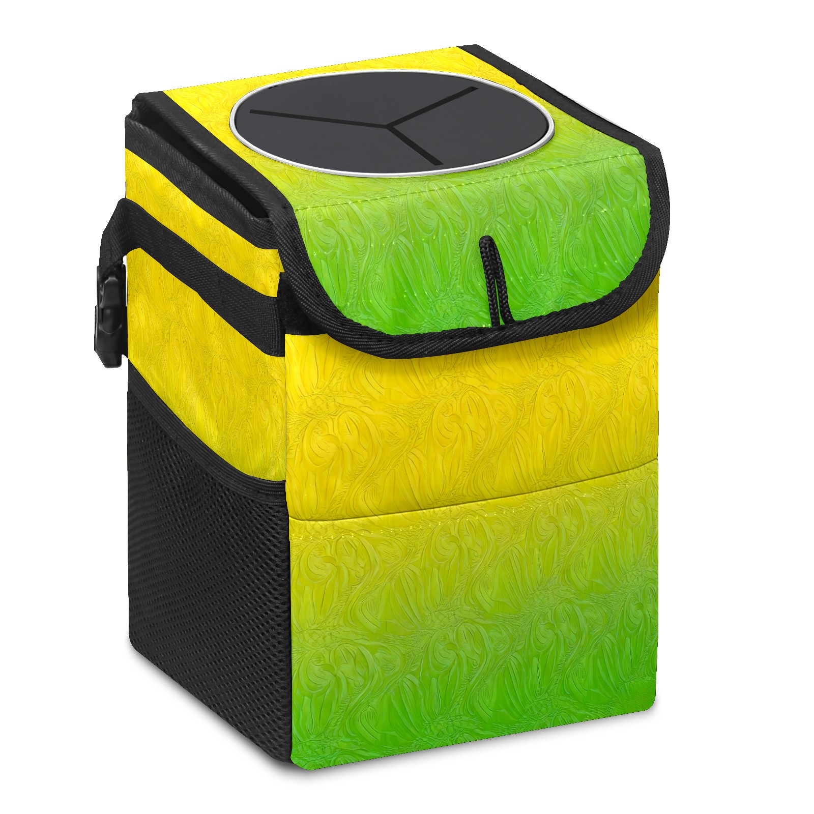 Car Trash Can with Lid & Multiple Pockets ,Foldable Vehicle Garbage Bin Waterproof & Leak Proof Automotive Garbage Cans Car Accessories for Women Men Road Trip Essentials Yellow Green Gradient