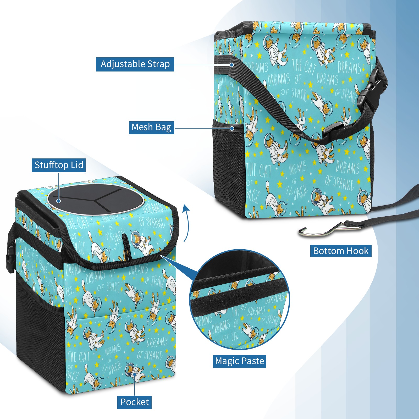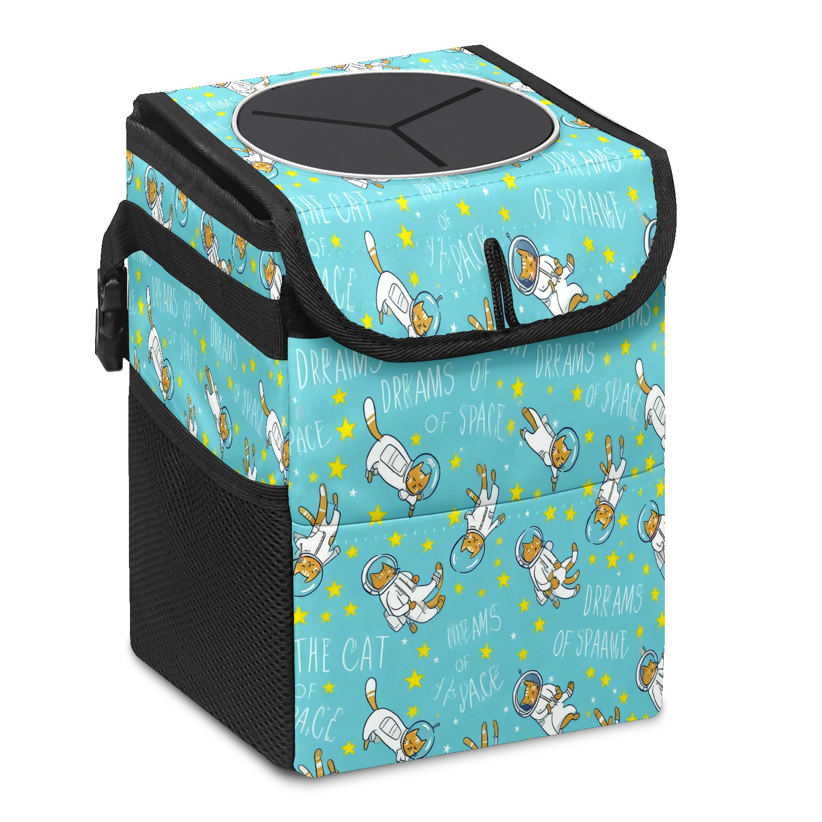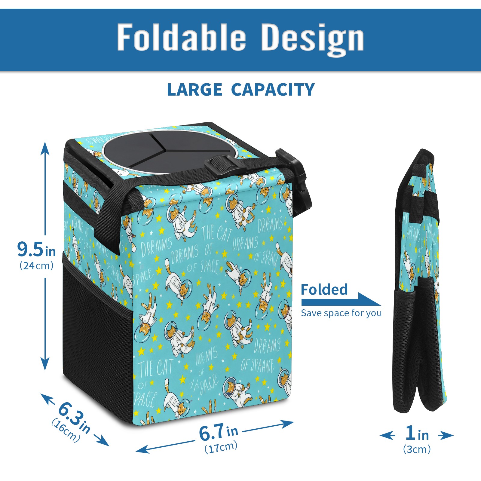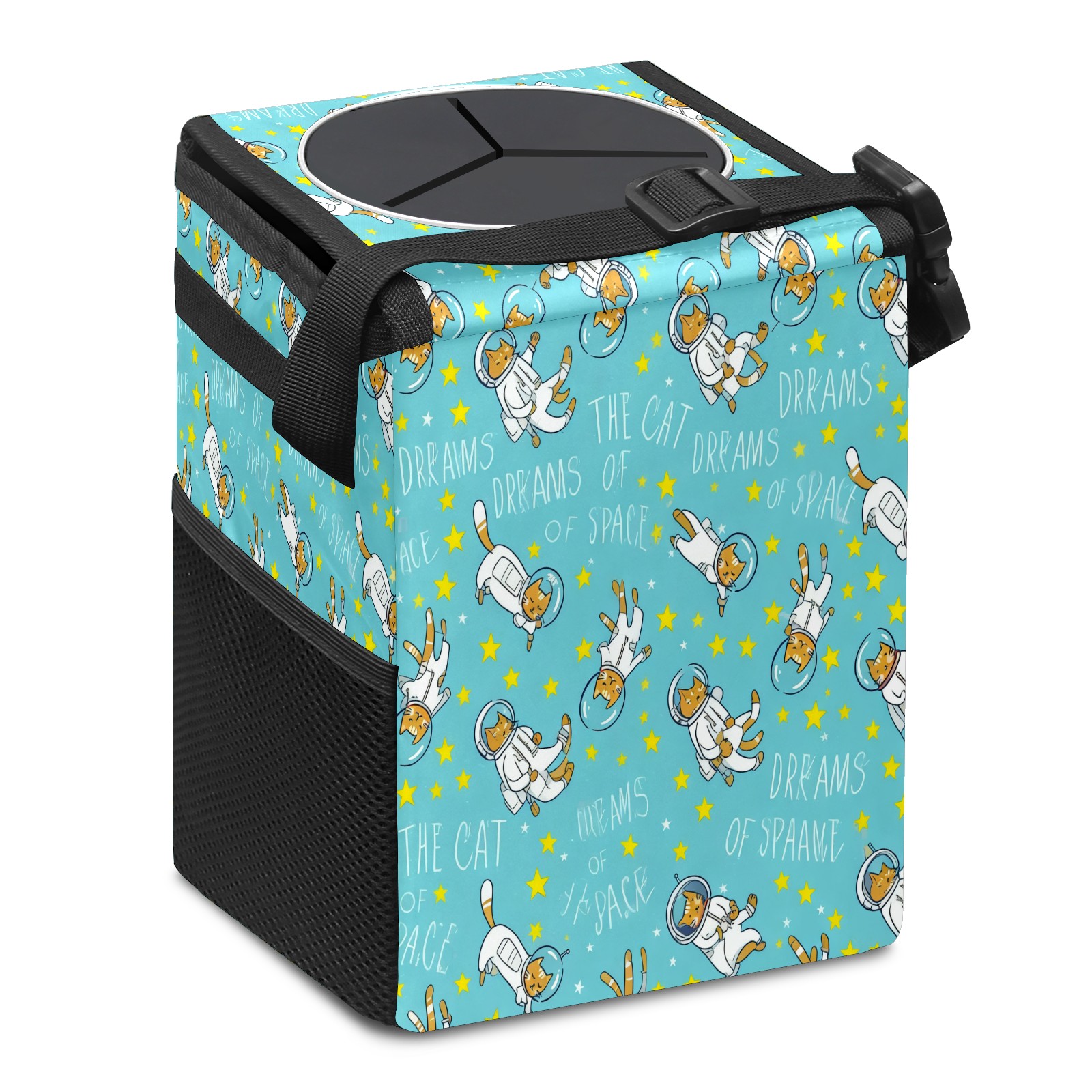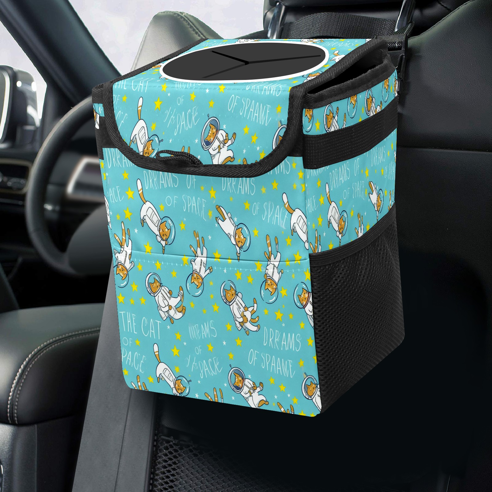 Car Trash Can with Lid & Multiple Pockets ,Foldable Vehicle Garbage Bin Waterproof & Leak Proof Automotive Garbage Cans Car Accessories for Women Men Road Trip Essentials Cat Dream Pattern