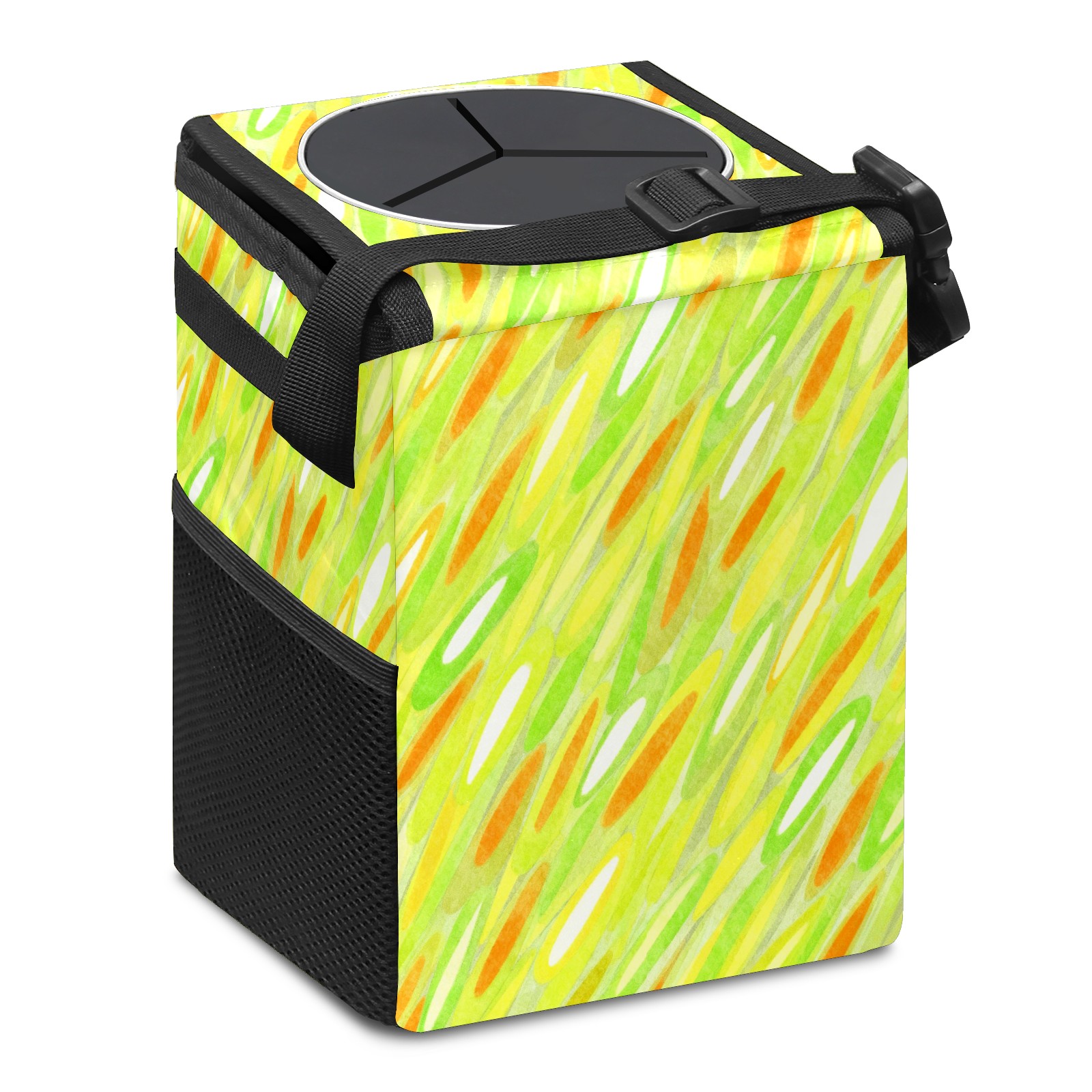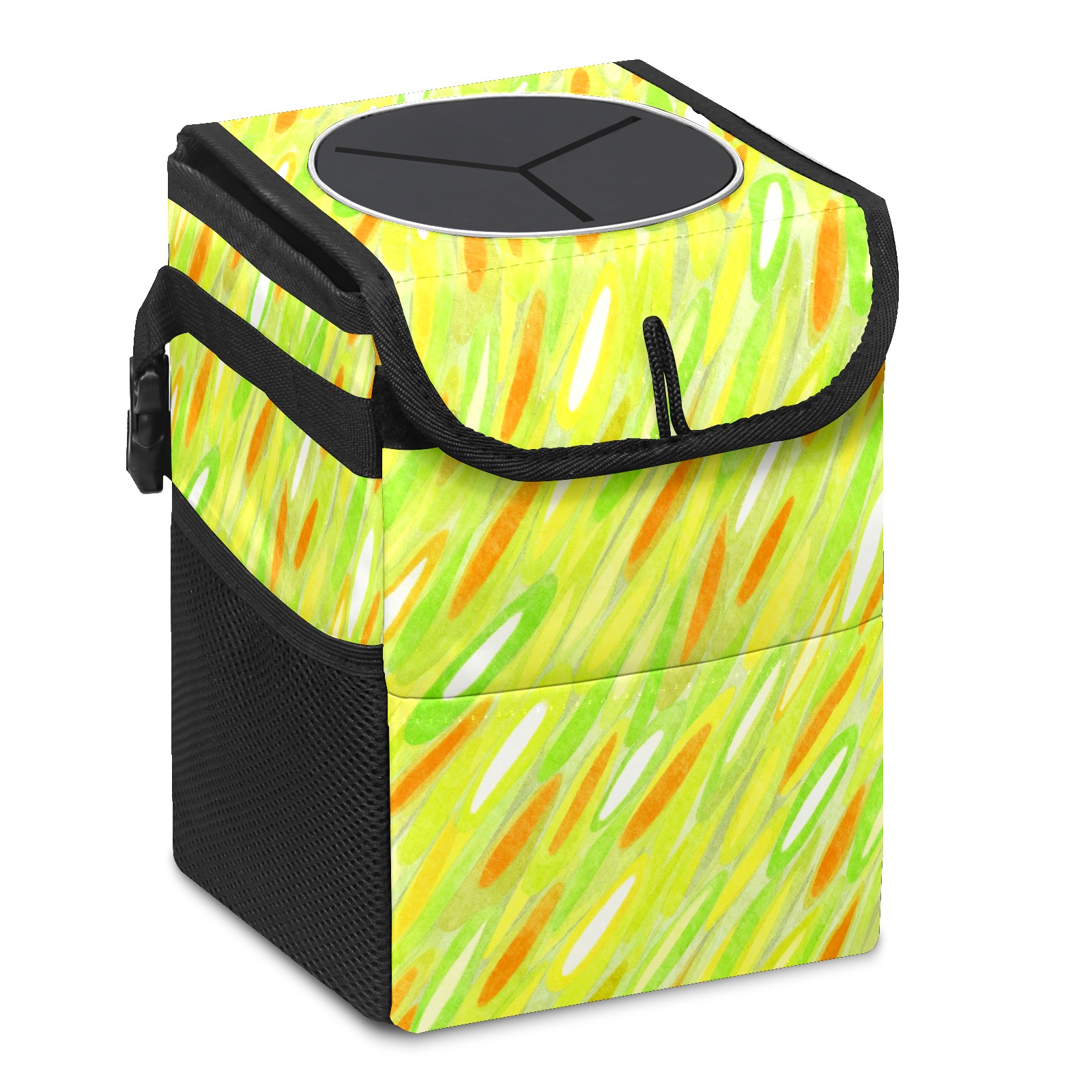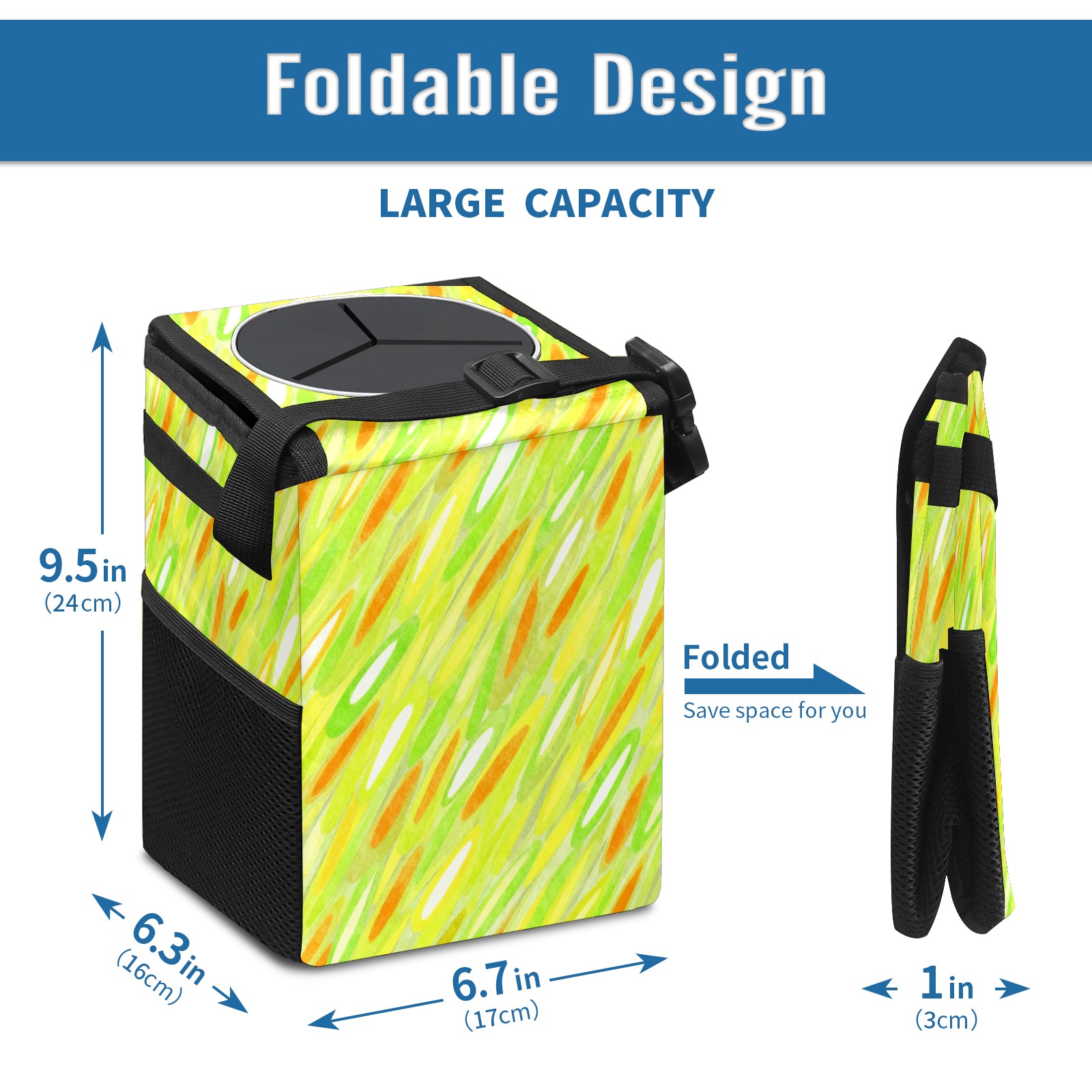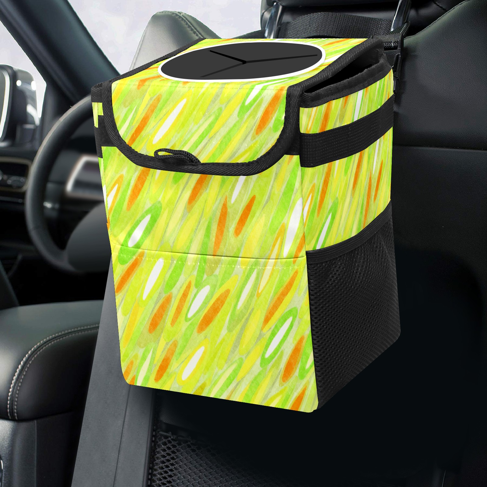 Car Trash Can with Lid & Multiple Pockets ,Foldable Vehicle Garbage Bin Waterproof & Leak Proof Automotive Garbage Cans Car Accessories for Women Men Road Trip Essentials Green Yellow Gradient Pattern