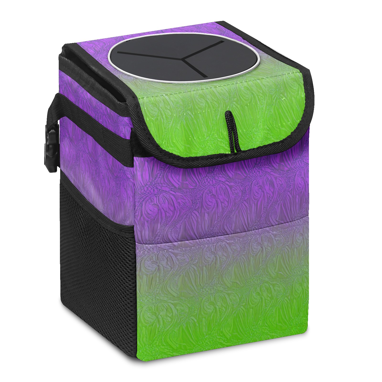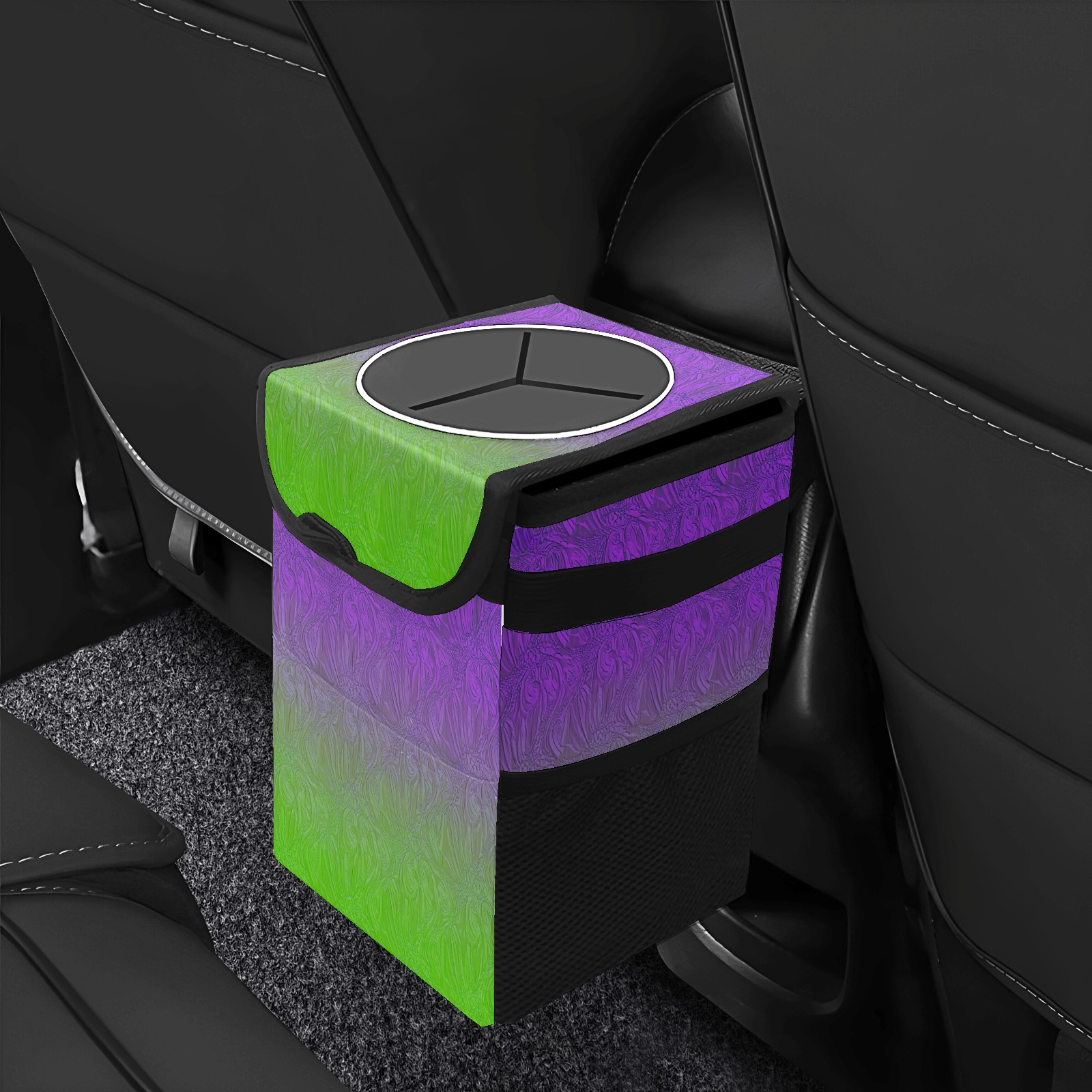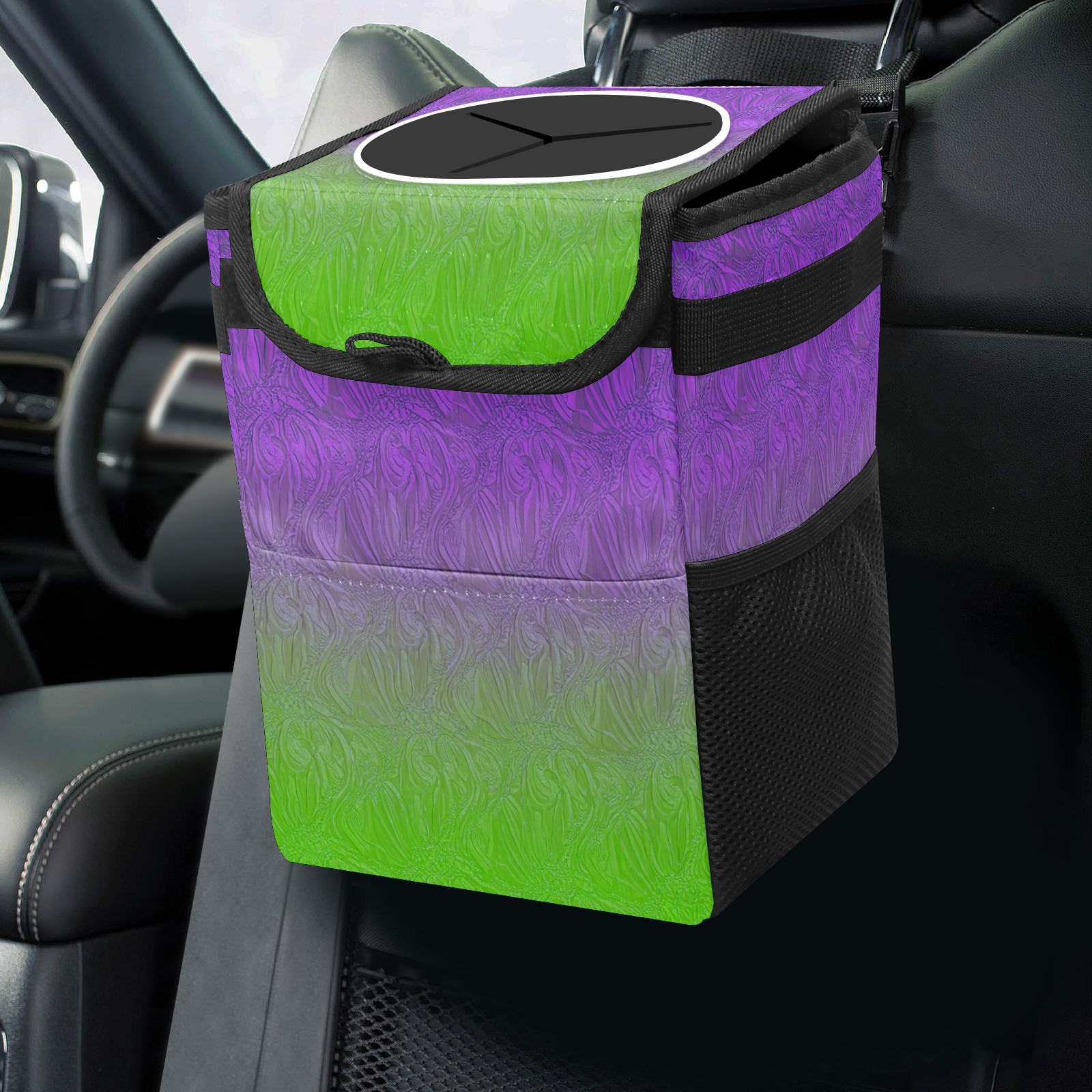 Car Trash Can with Lid & Multiple Pockets ,Foldable Vehicle Garbage Bin Waterproof & Leak Proof Automotive Garbage Cans Car Accessories for Women Men Road Trip Essentials Purple Green Gradient Pattern
