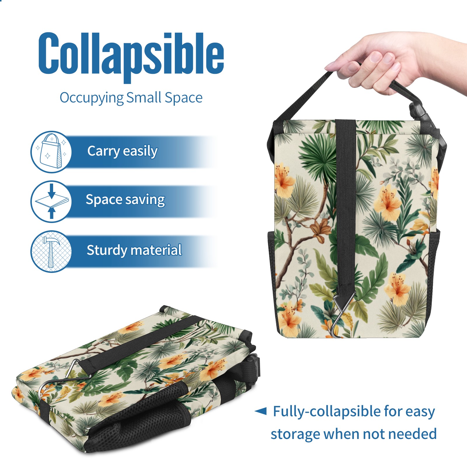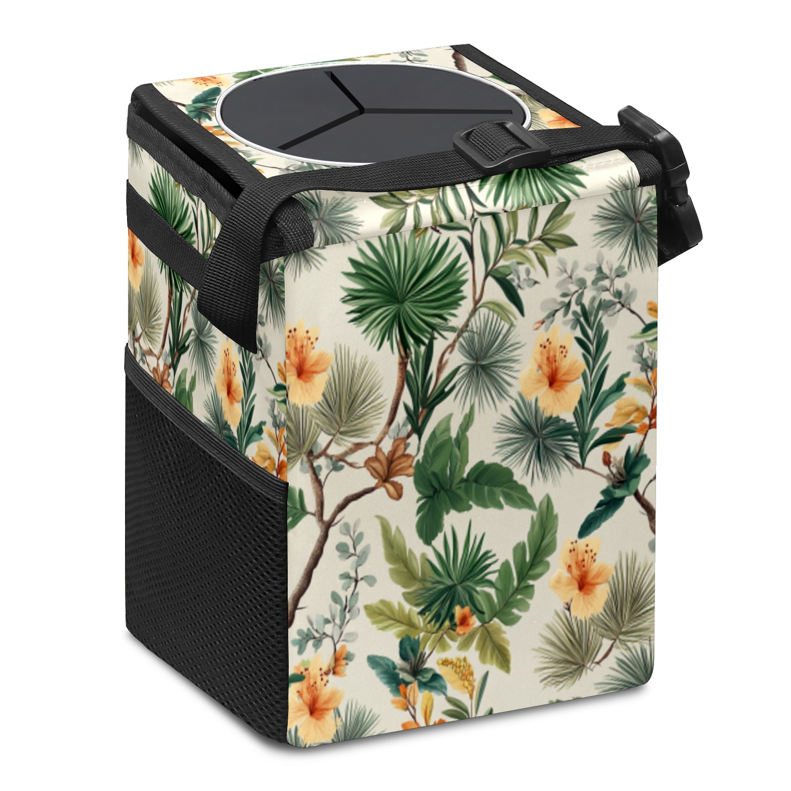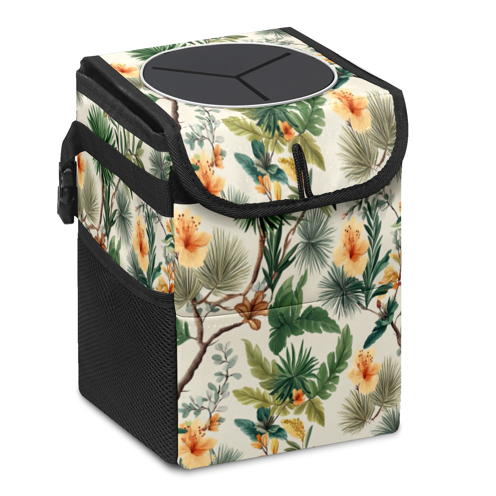 Car Trash Can with Lid & Multiple Pockets ,Foldable Vehicle Garbage Bin Waterproof & Leak Proof Automotive Garbage Cans Car Accessories for Women Men Road Trip Essentials Tropical Plant Pattern