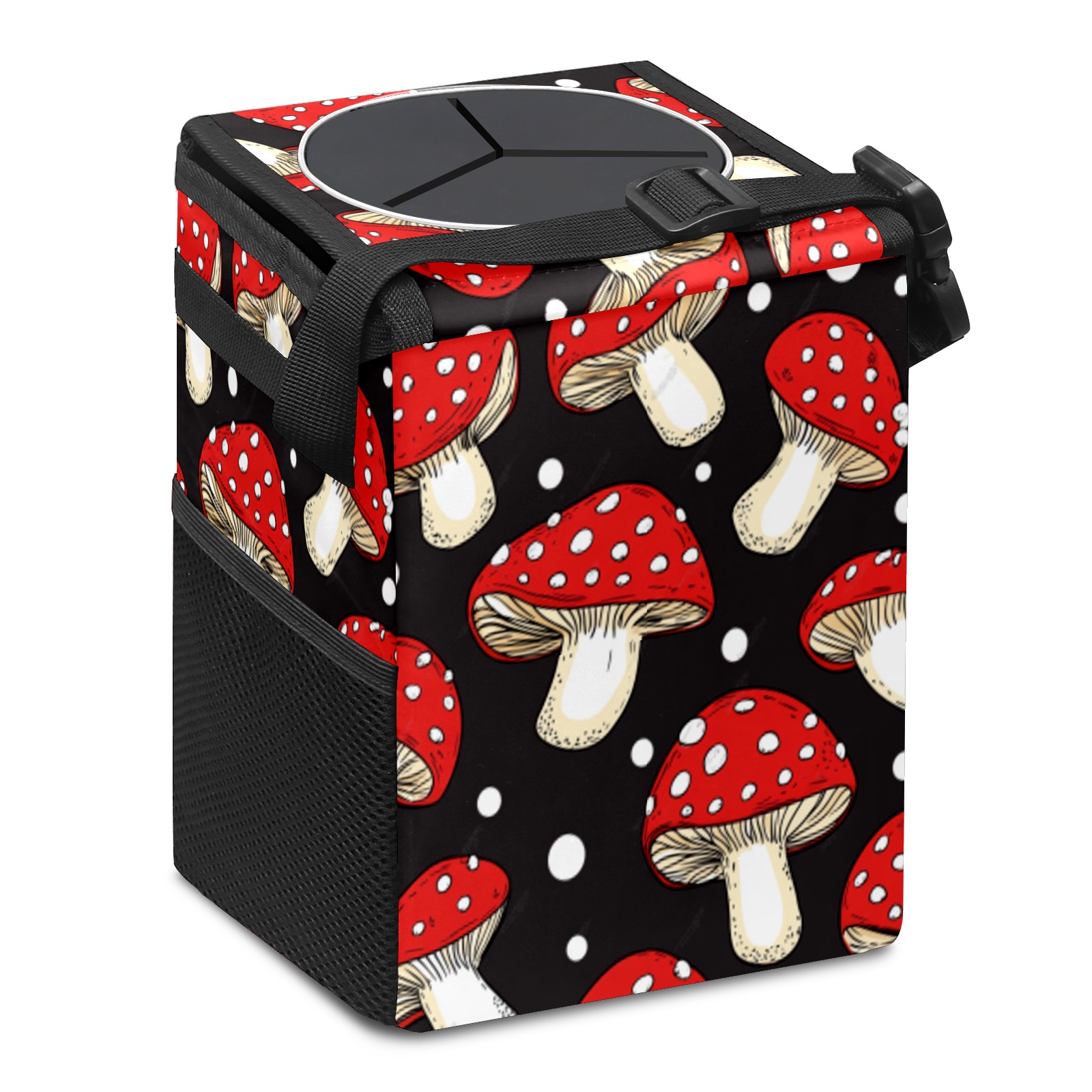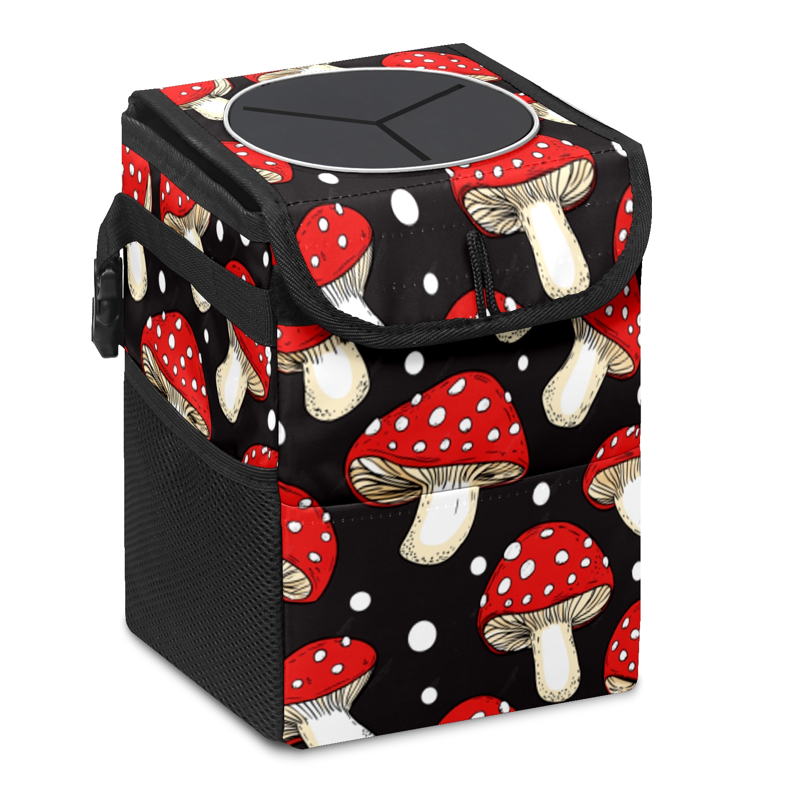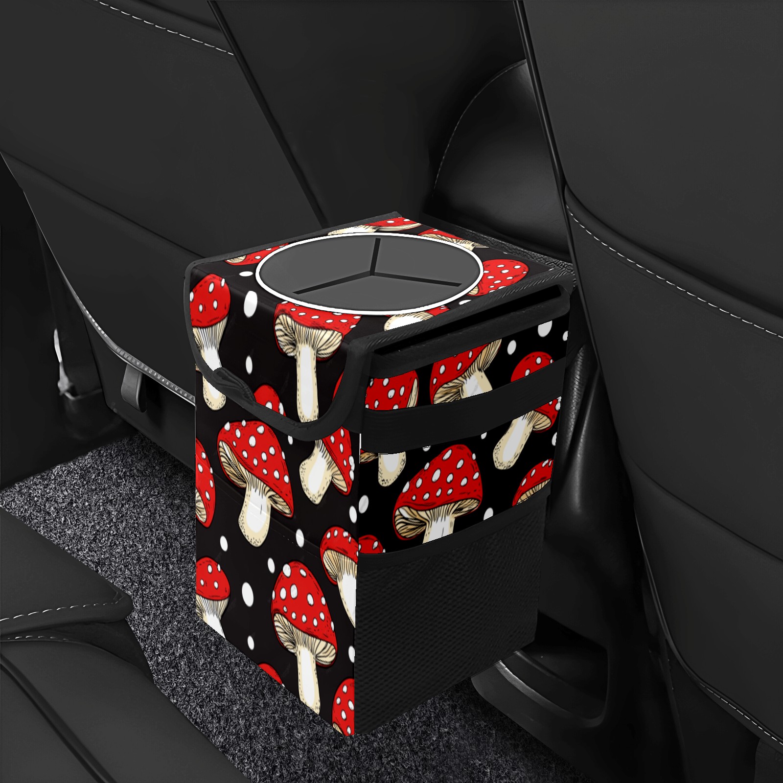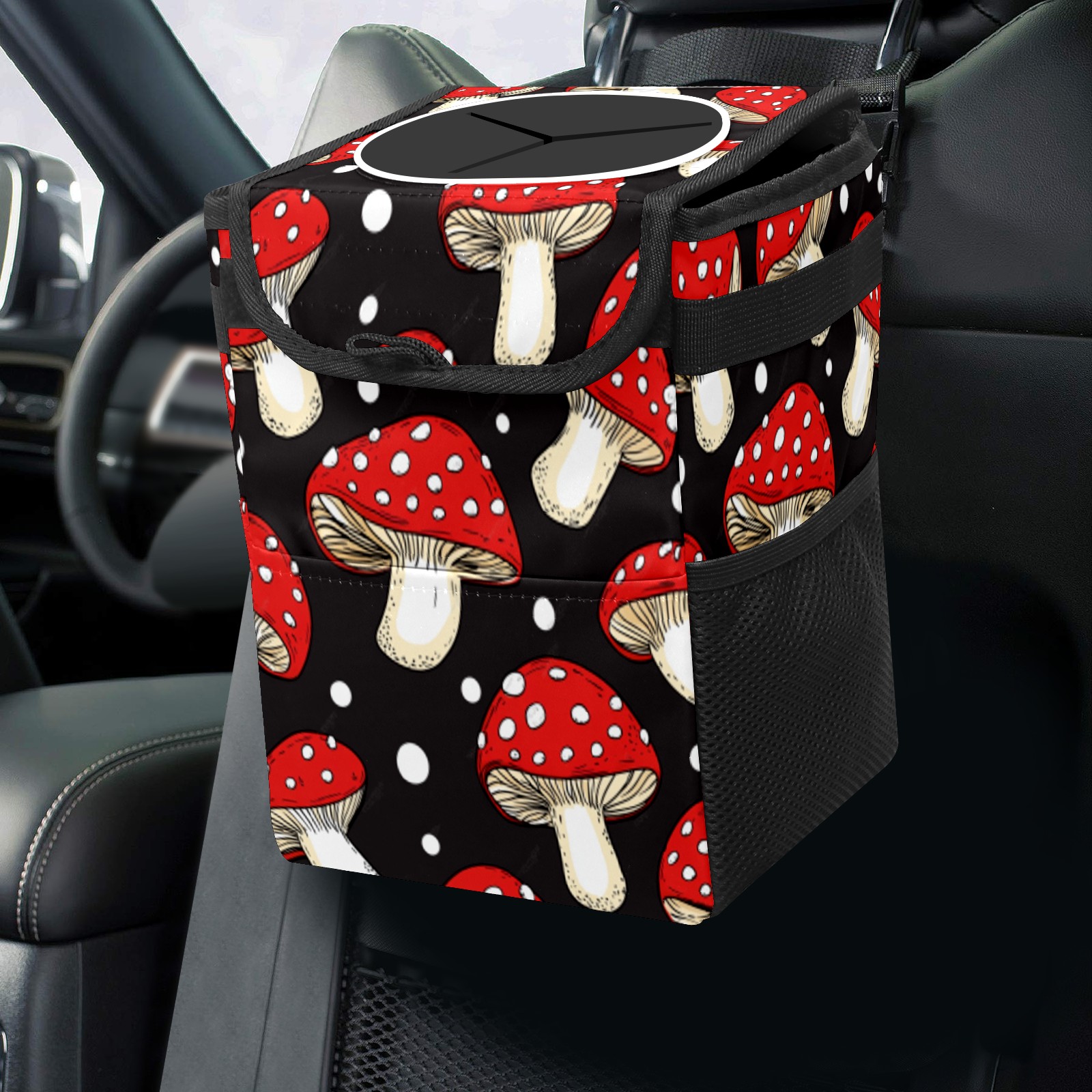 Car Trash Can with Lid & Multiple Pockets ,Foldable Vehicle Garbage Bin Waterproof & Leak Proof Automotive Garbage Cans Car Accessories for Women Men Road Trip Essentials Mushrooms