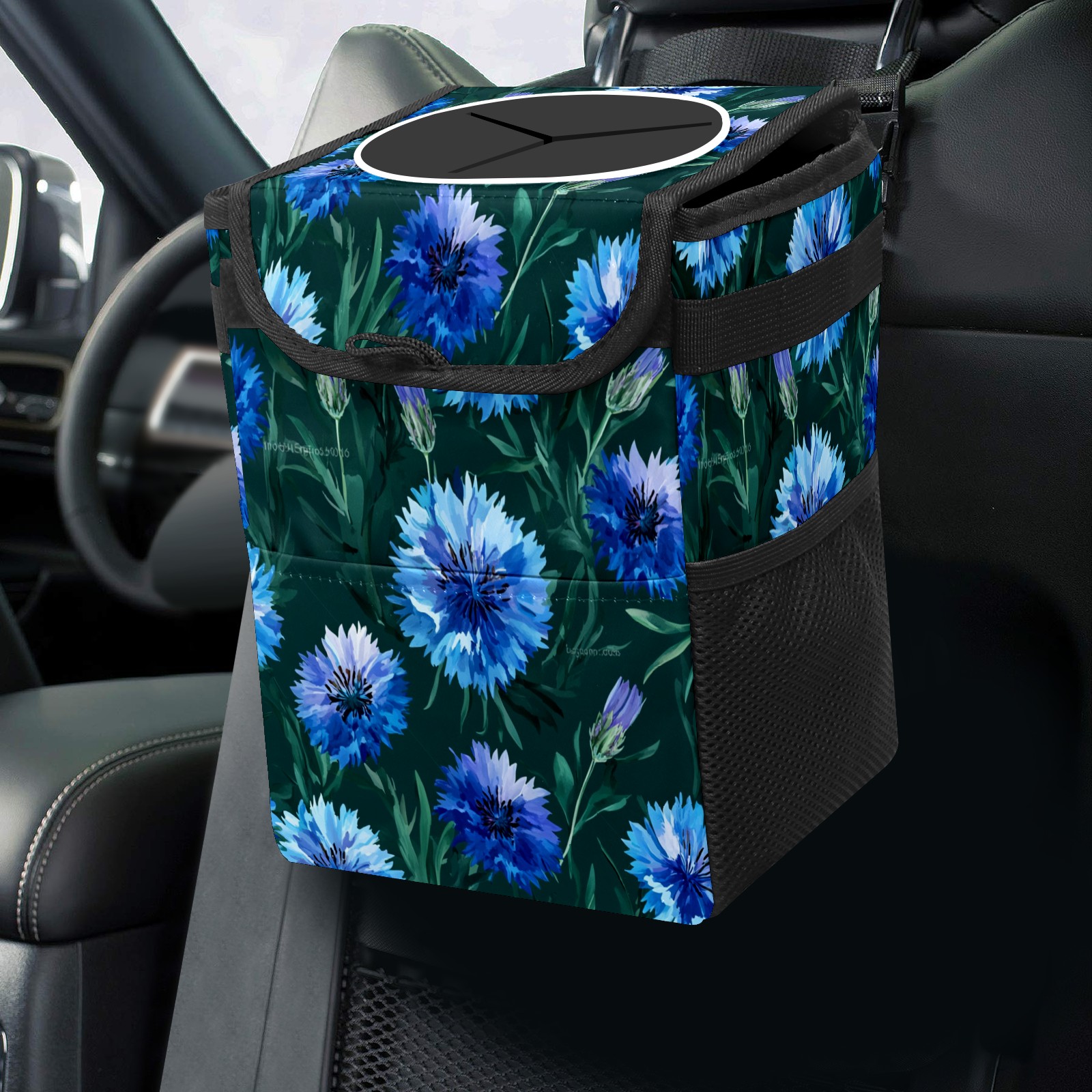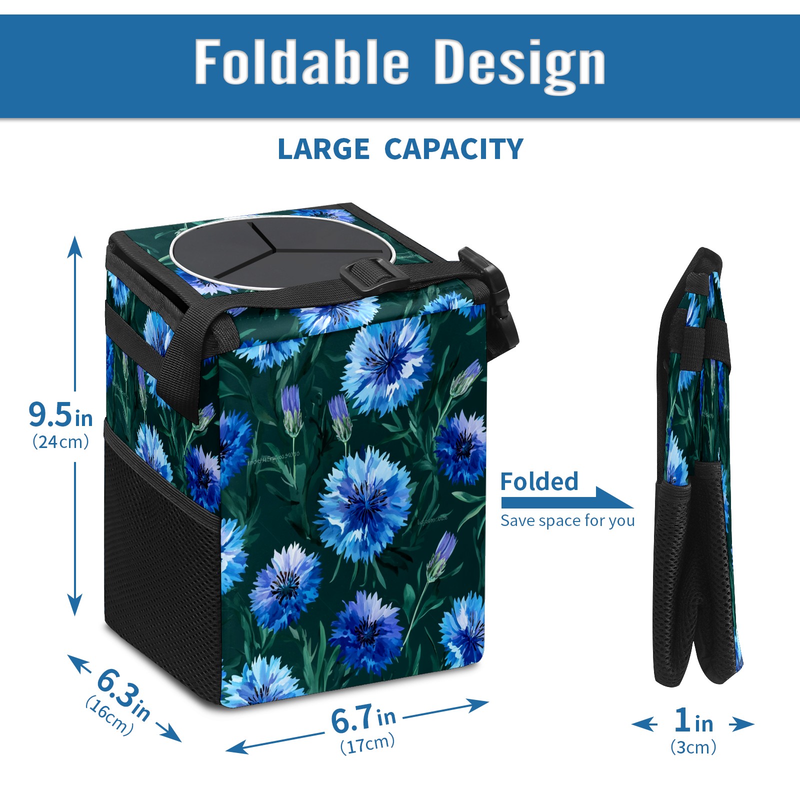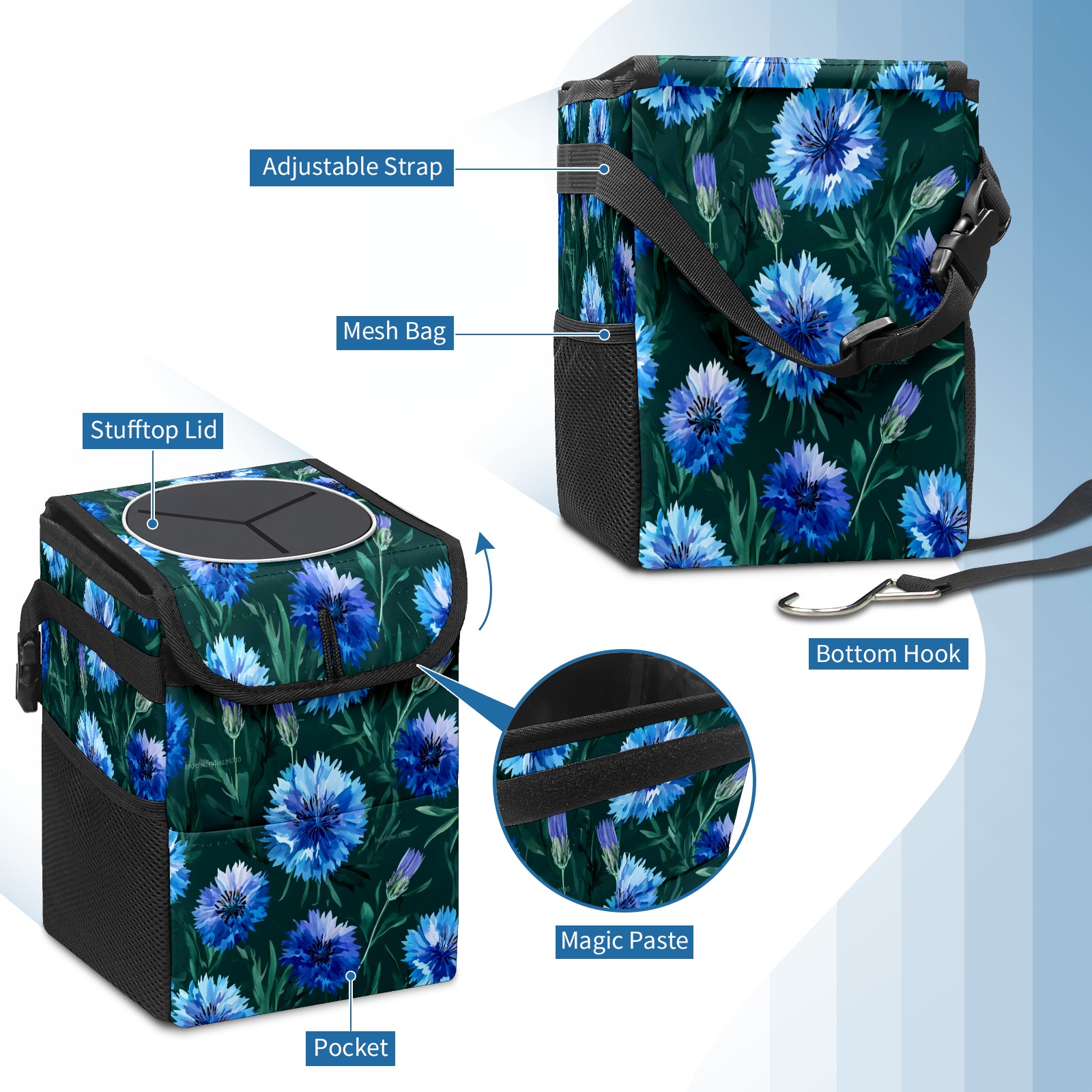 Car Trash Can with Lid & Multiple Pockets ,Foldable Vehicle Garbage Bin Waterproof & Leak Proof Automotive Garbage Cans Car Accessories for Women Men Road Trip Essentials Blue Flower Pattern