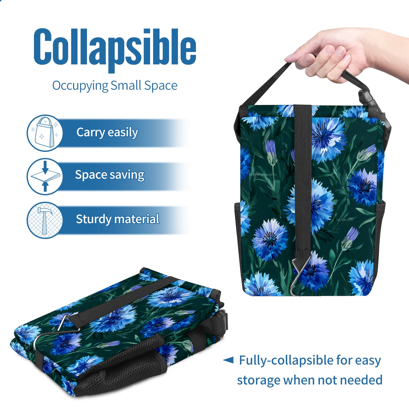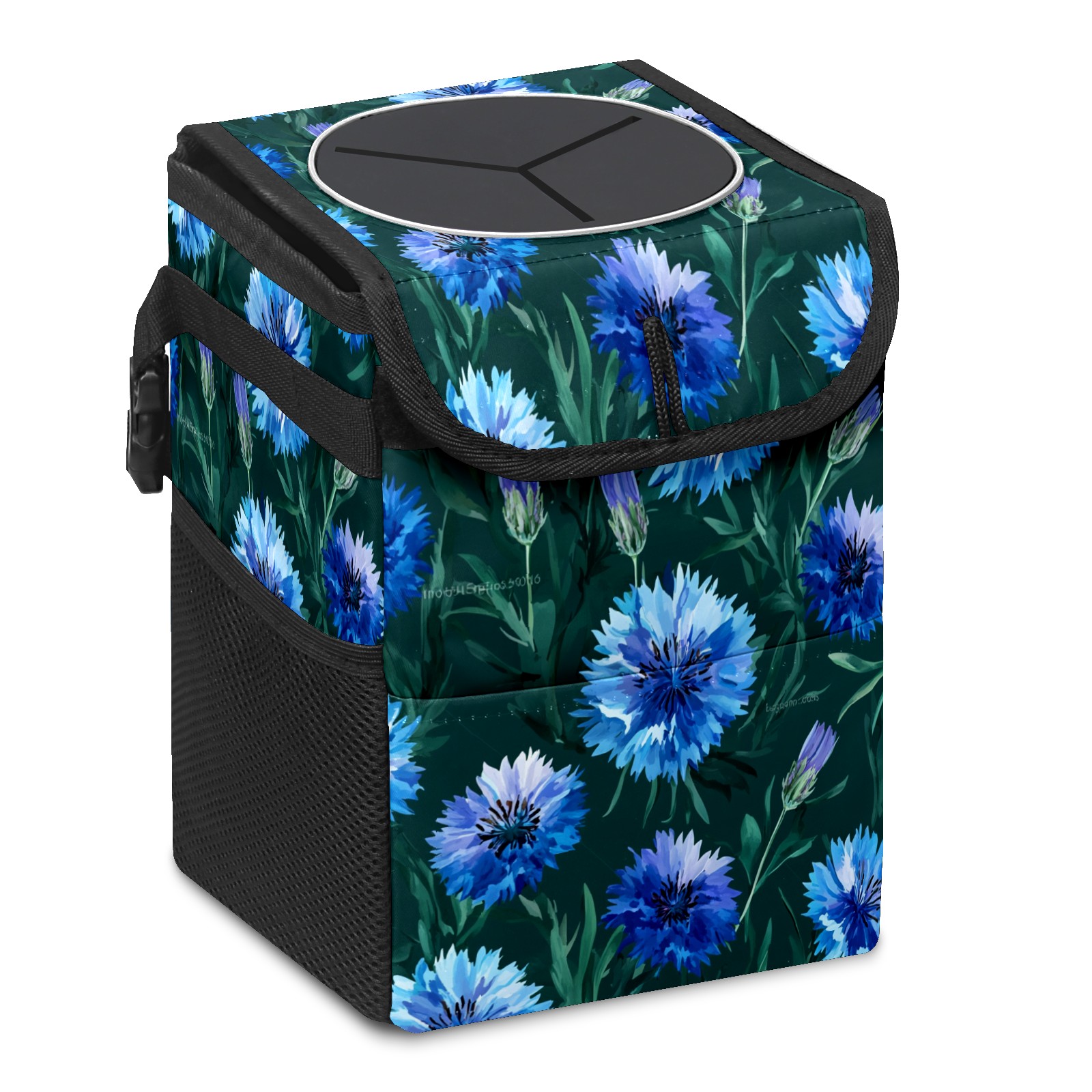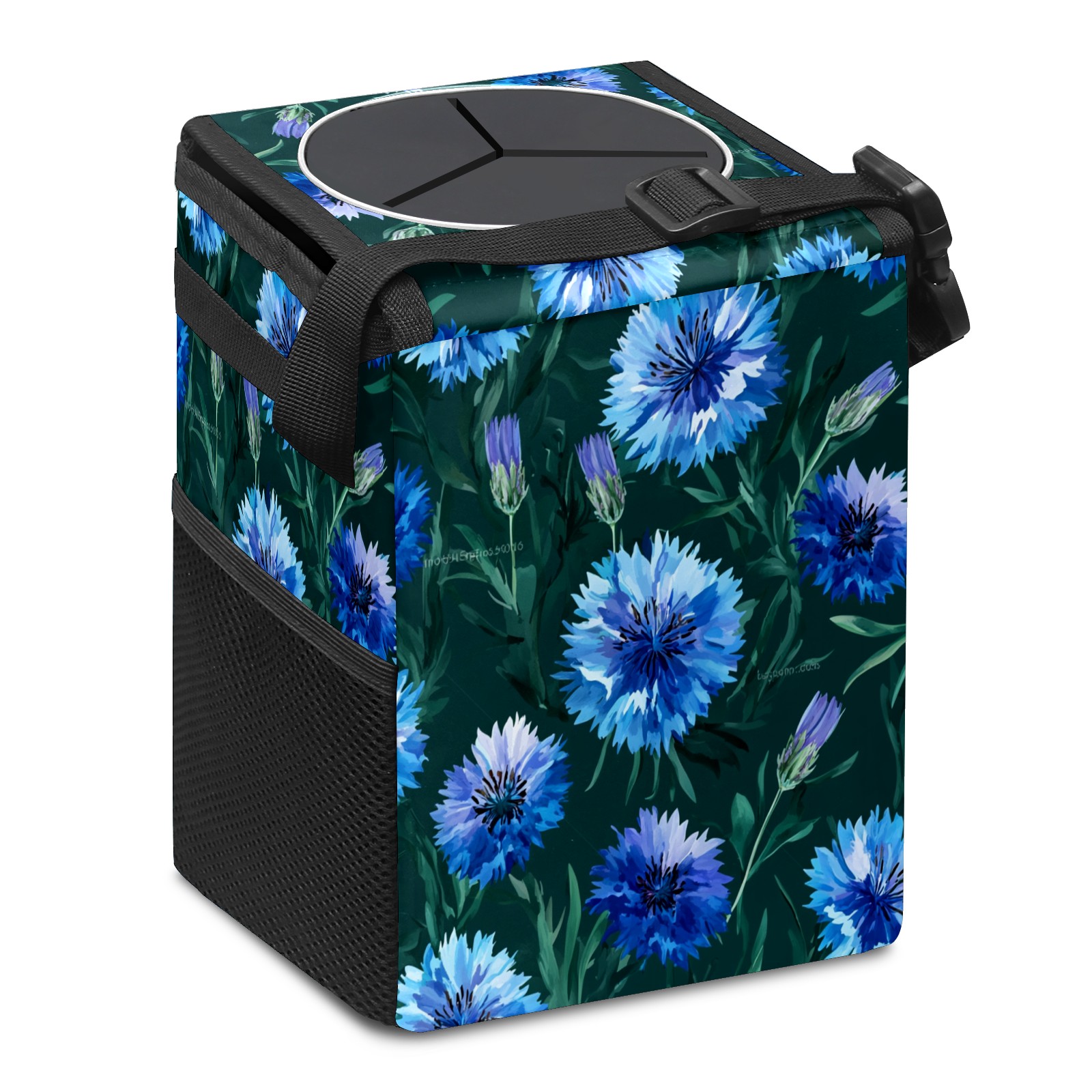 Car Trash Can with Lid & Multiple Pockets ,Foldable Vehicle Garbage Bin Waterproof & Leak Proof Automotive Garbage Cans Car Accessories for Women Men Road Trip Essentials Blue Flower Pattern