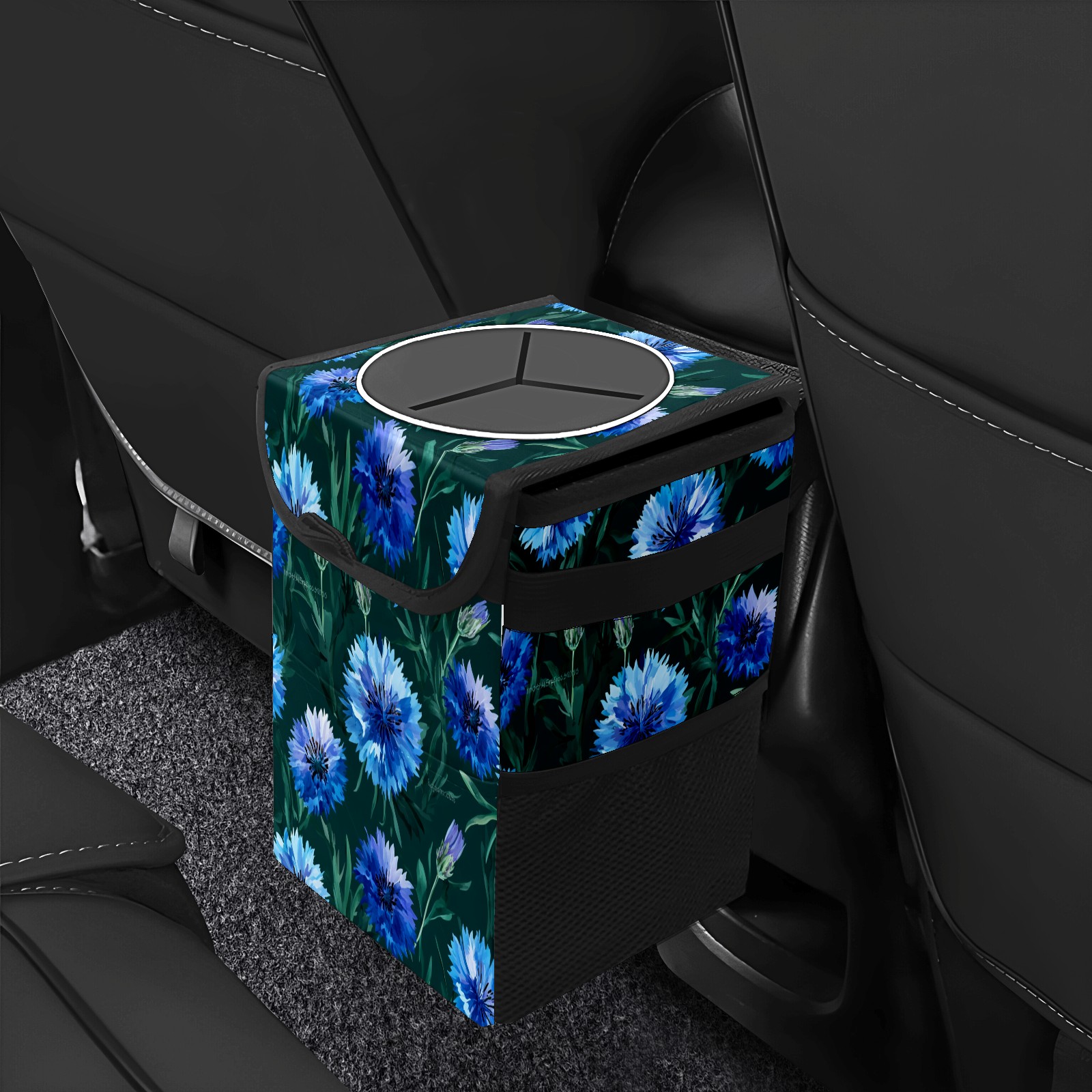 • <p>The foldable car trash can Made of durable twill fabric and webbing with full printing, it measures 9.5x6.7x6.3 in to hold tissues, wrappers, bottles, and wet waste with an inner garbage bag. Features side mesh pockets and a front pouch for snacks, phones, and small items. Equipped with an adjustable strap (for headrest/armrest) and elastic hooks (for seat bottom) for double stability, minimizes shaking while driving. Foldable design saves space when not in use, easy to clean by hand—avoid prolonged sun exposure. A versatile organizer for a tidy in-car life!<br></p>