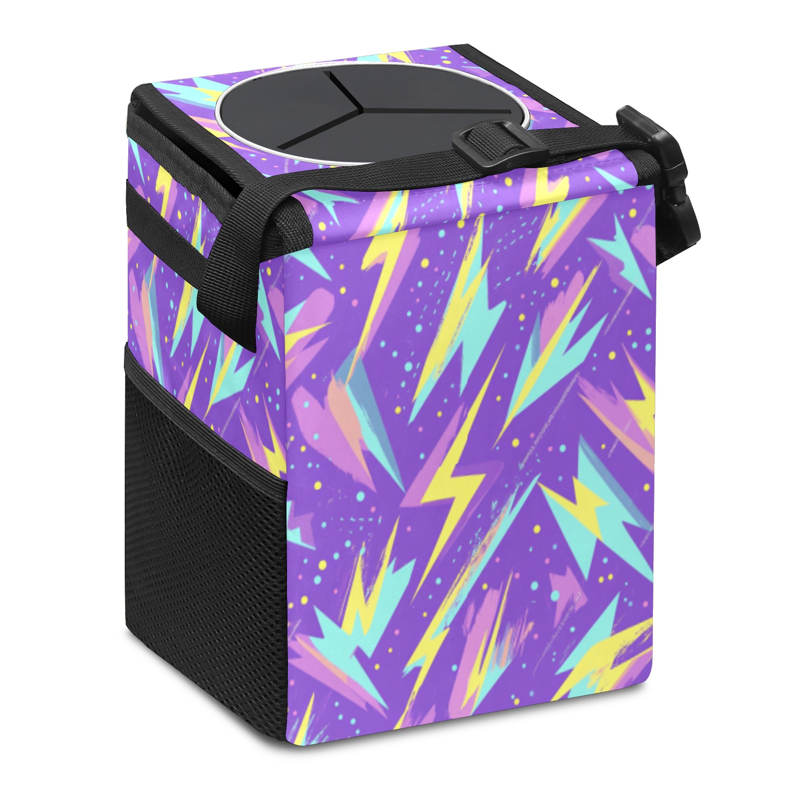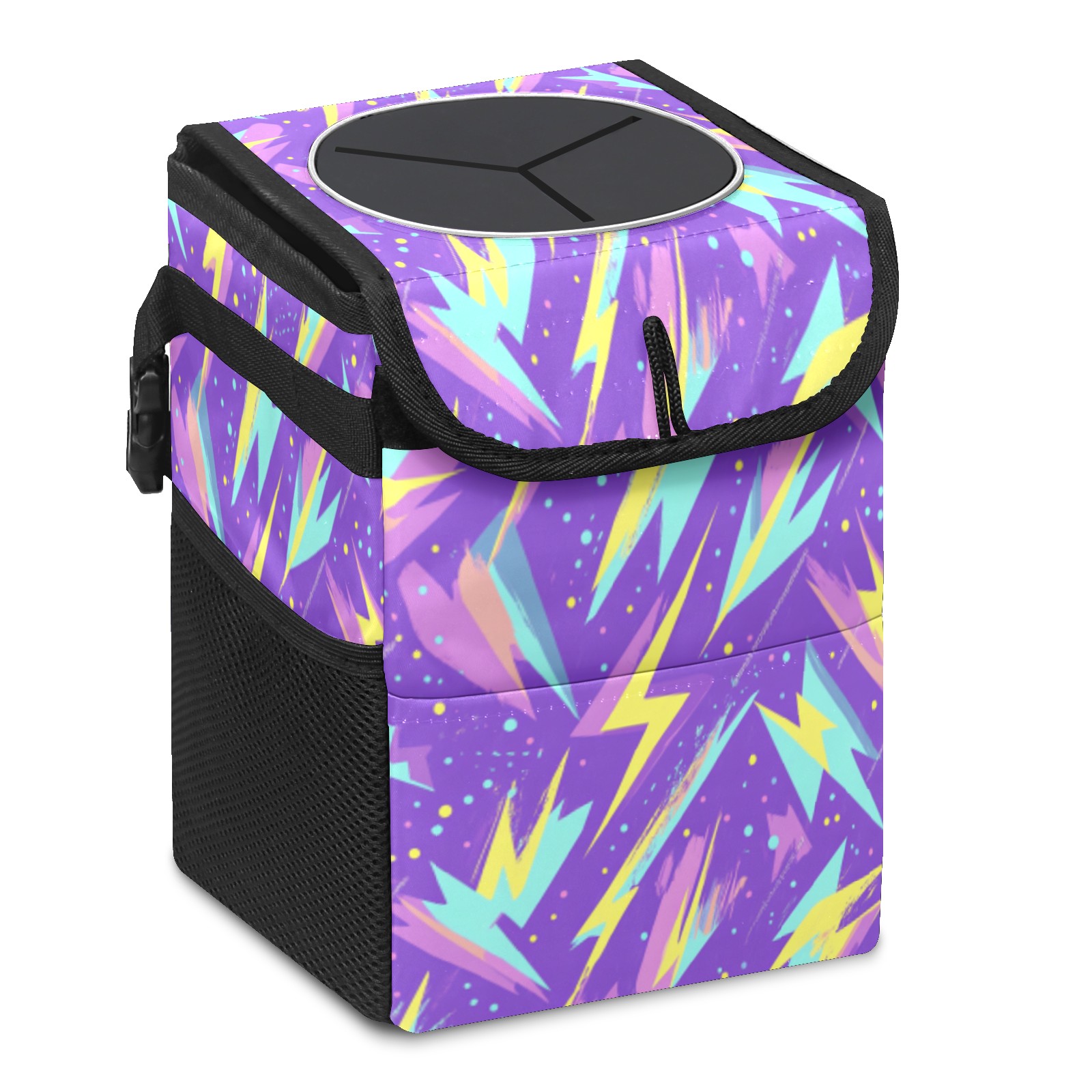 Car Trash Can with Lid & Multiple Pockets ,Foldable Vehicle Garbage Bin Waterproof & Leak Proof Automotive Garbage Cans Car Accessories for Women Men Road Trip Essentials Violet Lightning Pattern