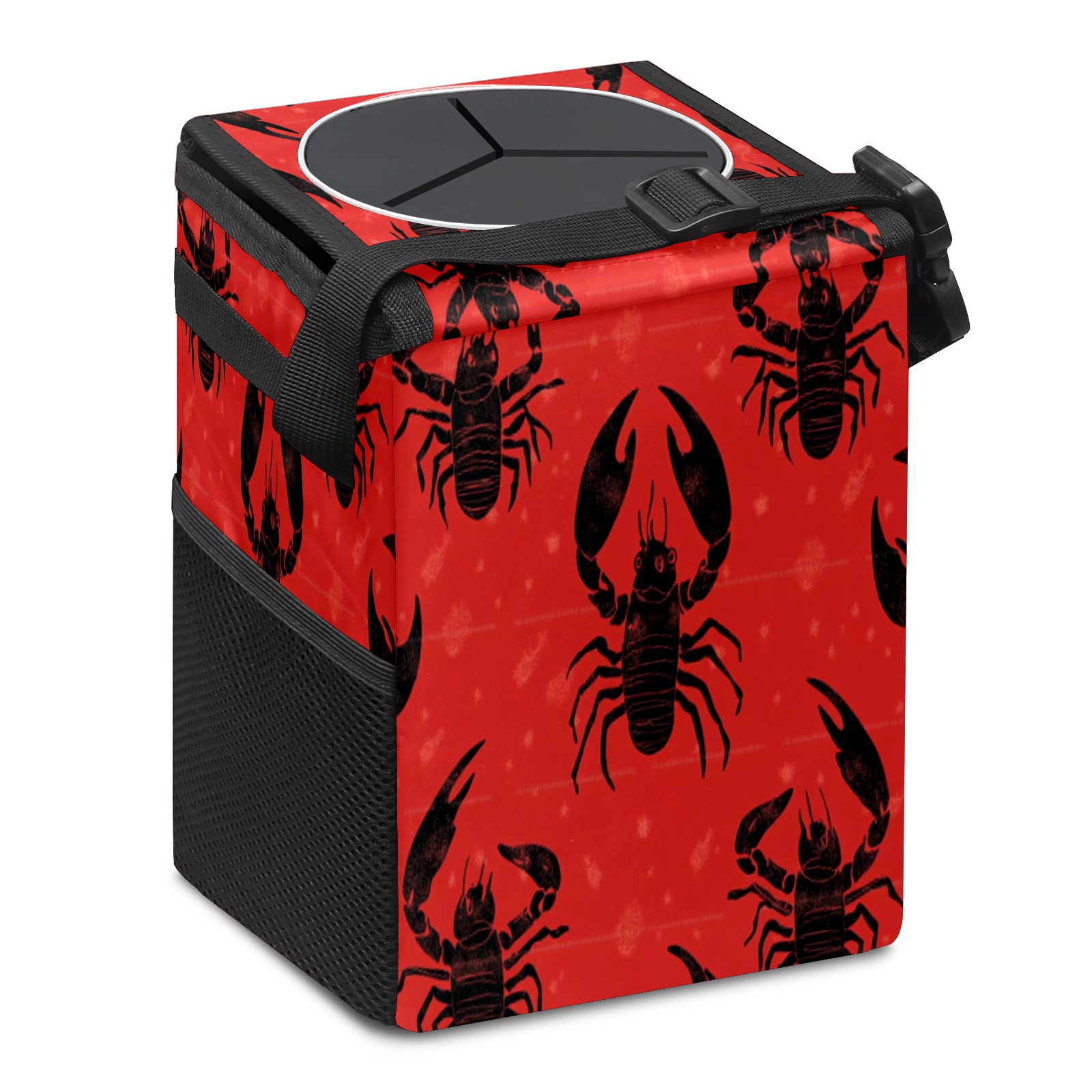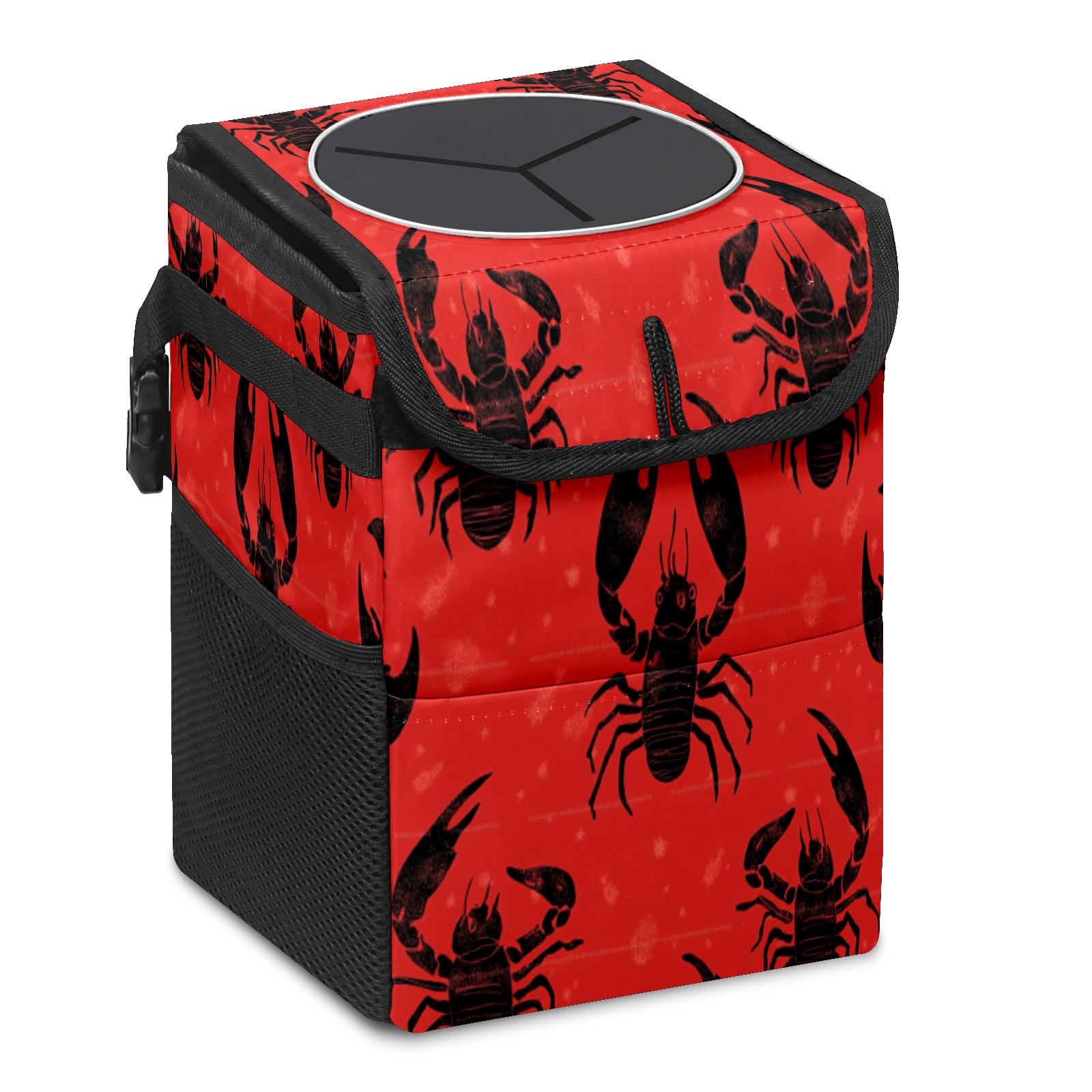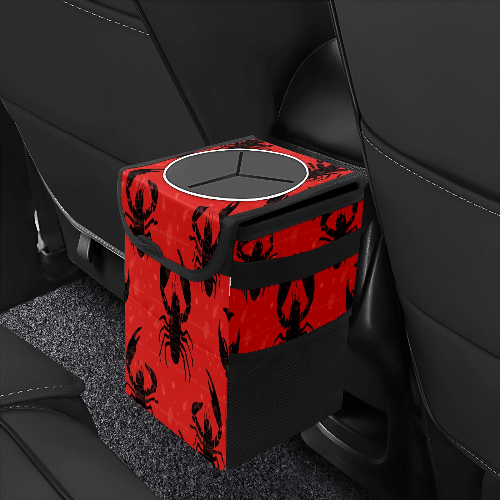Car Trash Can with Lid & Multiple Pockets ,Foldable Vehicle Garbage Bin Waterproof & Leak Proof Automotive Garbage Cans Car Accessories for Women Men Road Trip Essentials Black Crab Pattern
