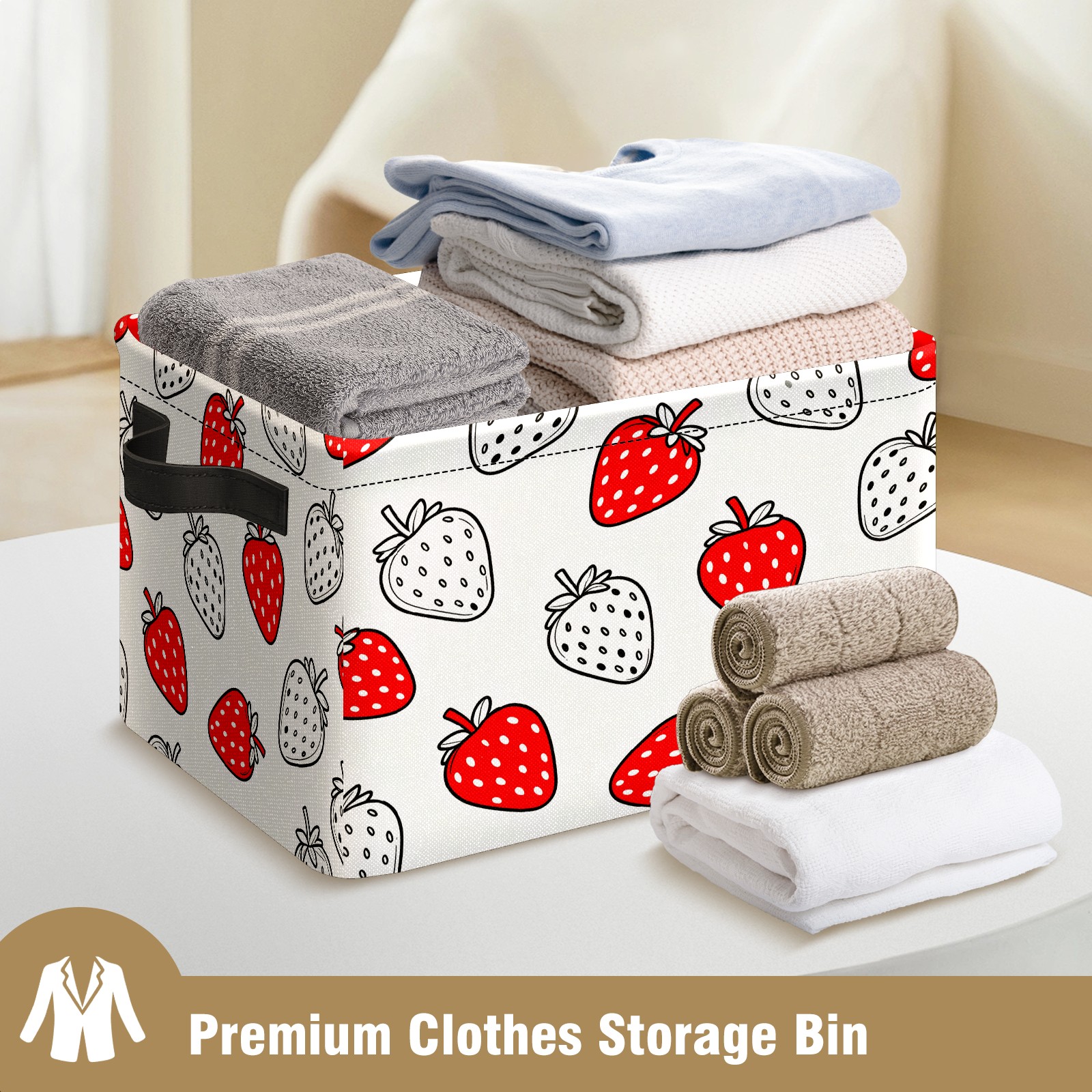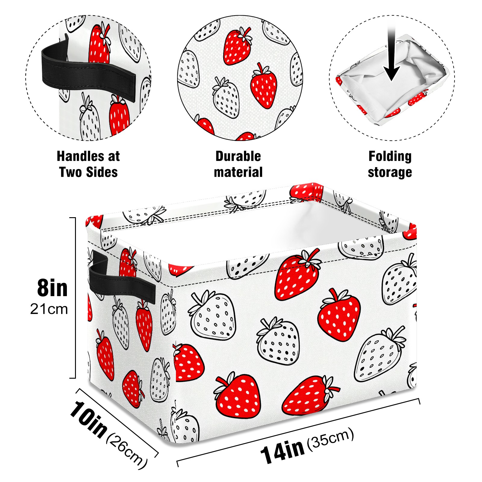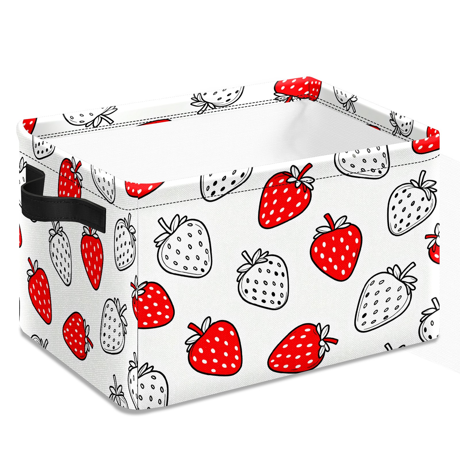 Red White Strawberries Large Storage Box, Foldable Toy Basket with Handle, for Organizing Clothes, Christmas Gift Storage Box, Children's Toys.