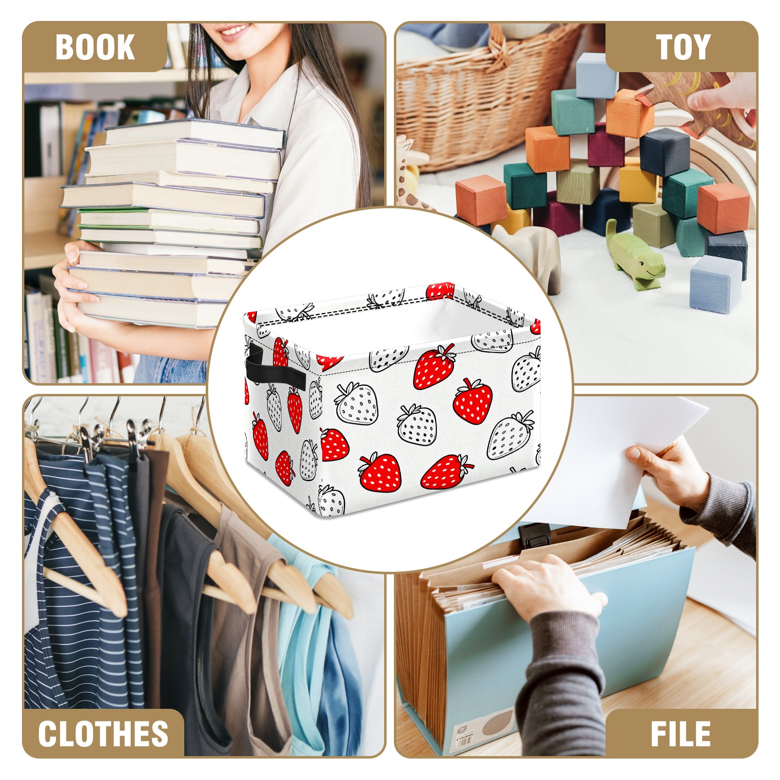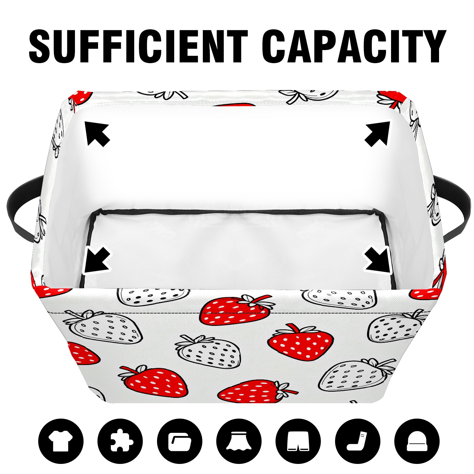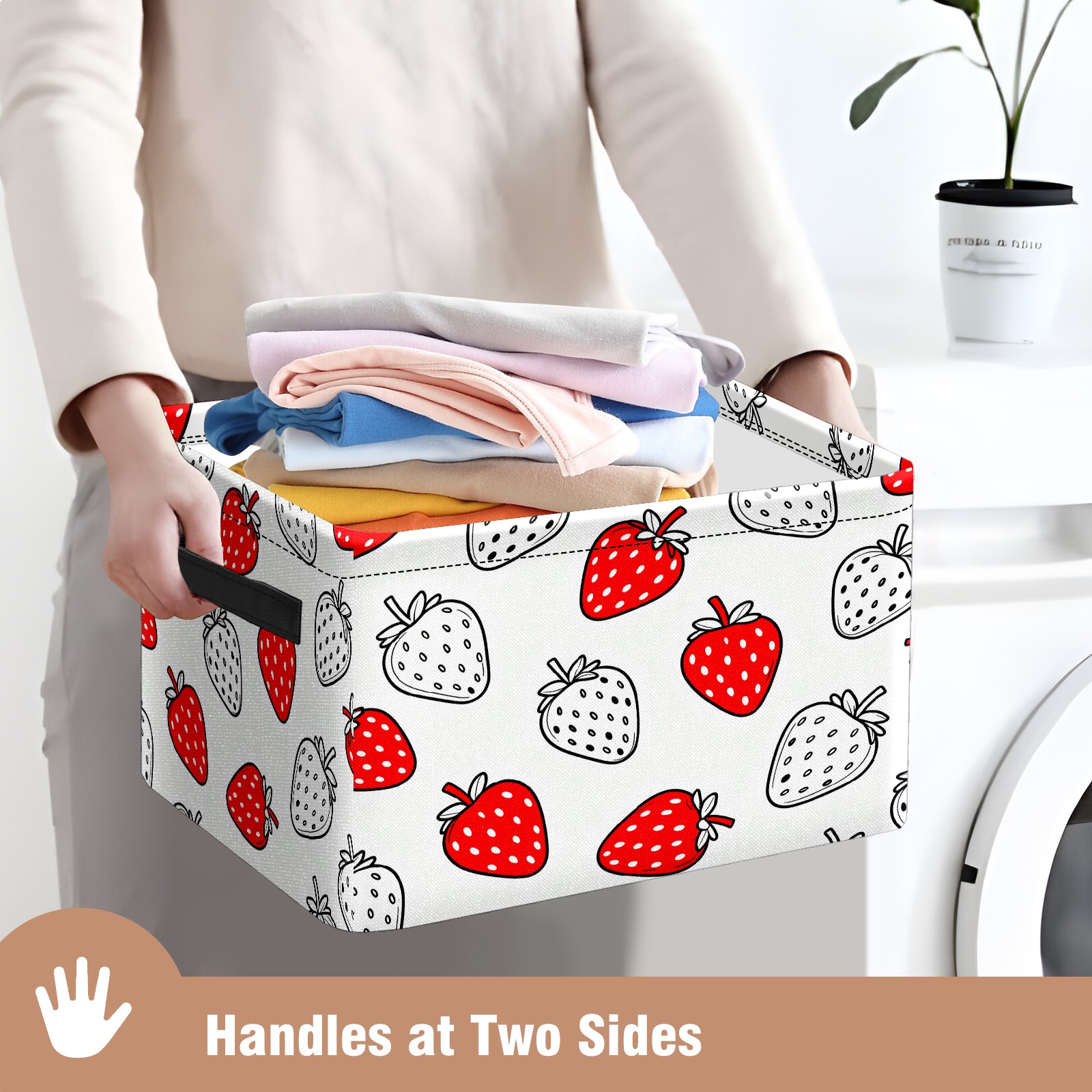 Red White Strawberries Large Storage Box, Foldable Toy Basket with Handle, for Organizing Clothes, Christmas Gift Storage Box, Children's Toys.