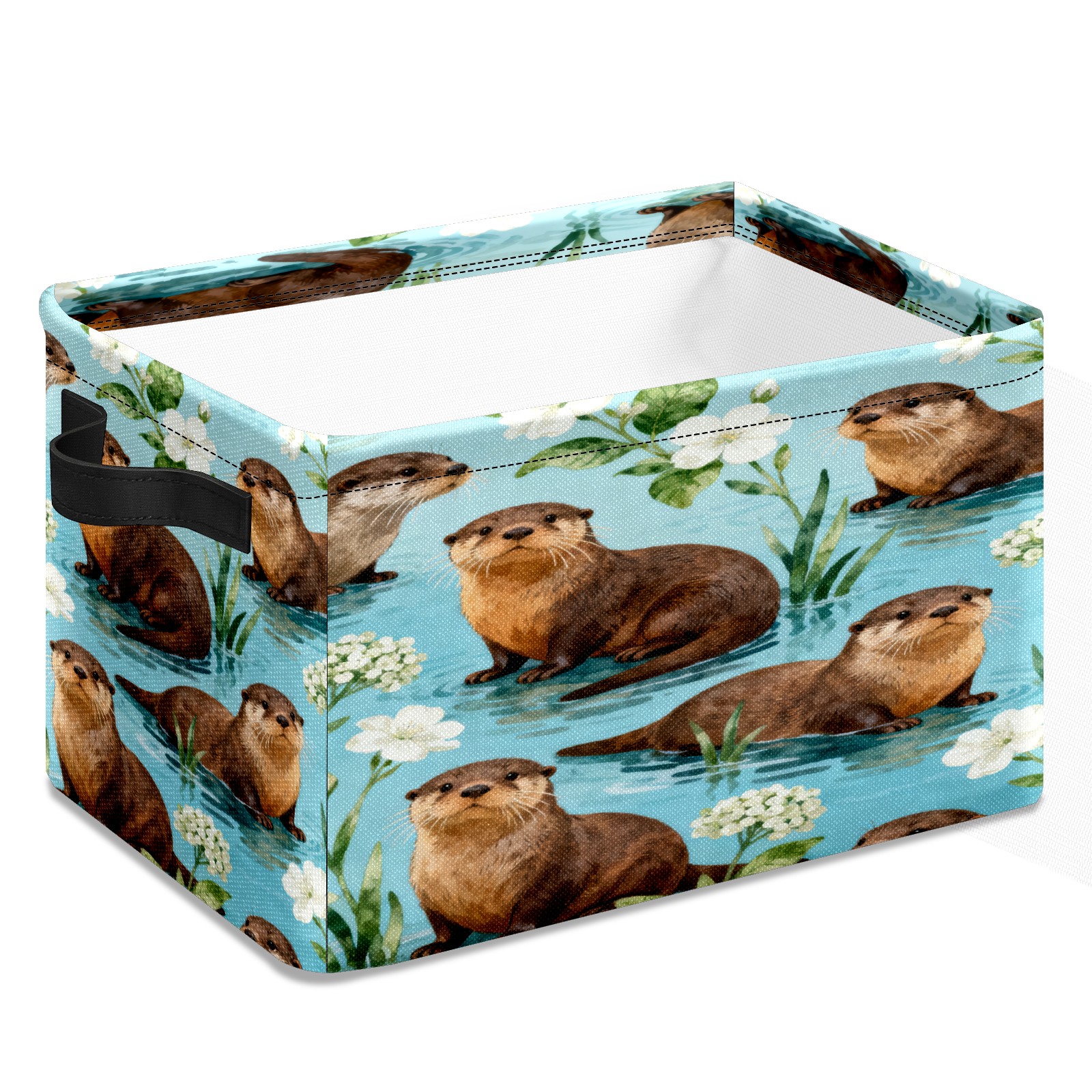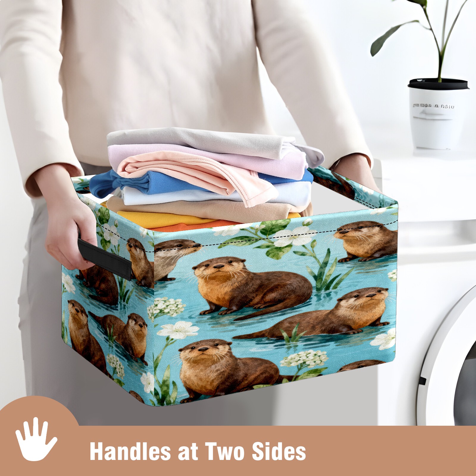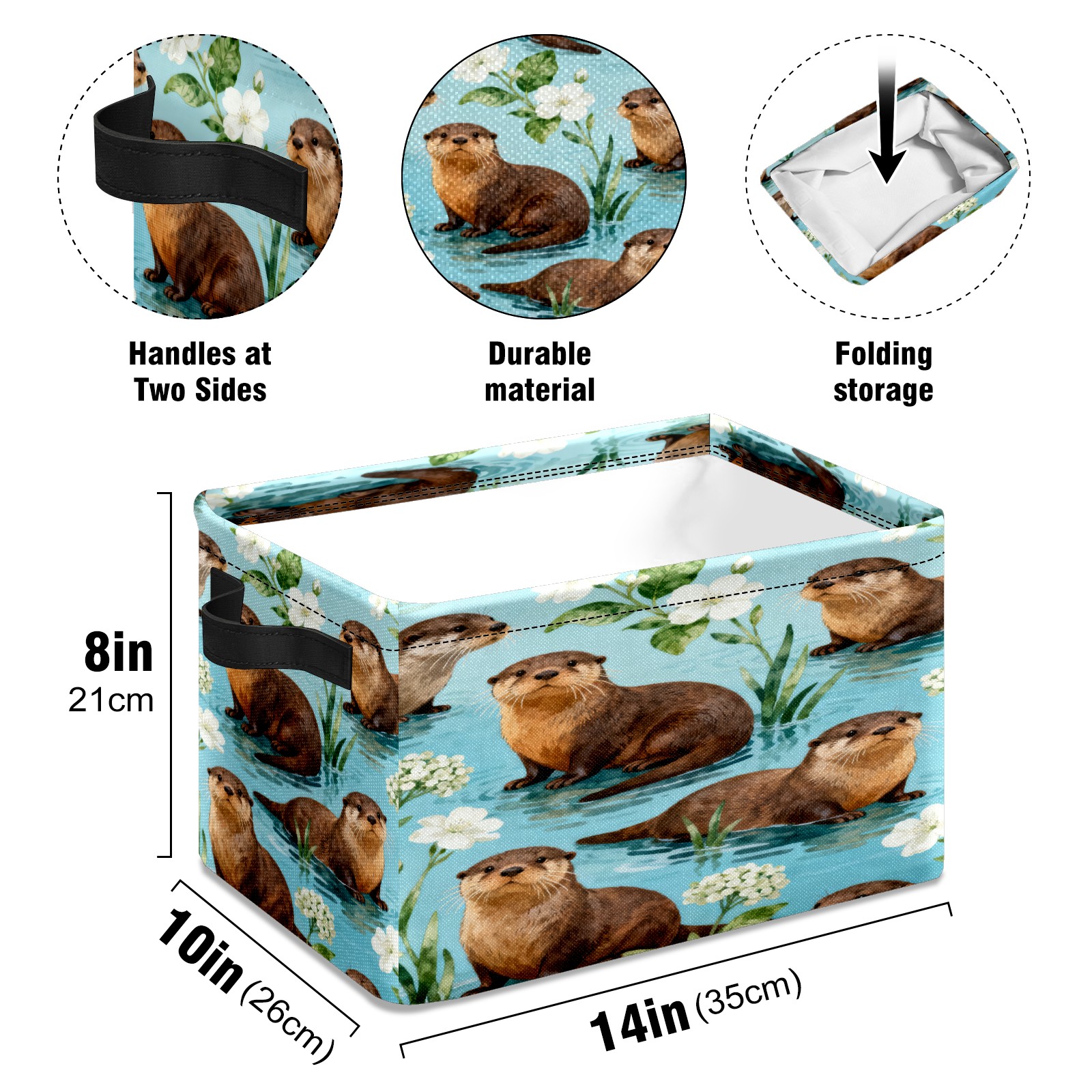 Otters Floral Waters Large Storage Box, Foldable Toy Basket with Handle, for Organizing Clothes, Christmas Gift Storage Box, Children's Toys.